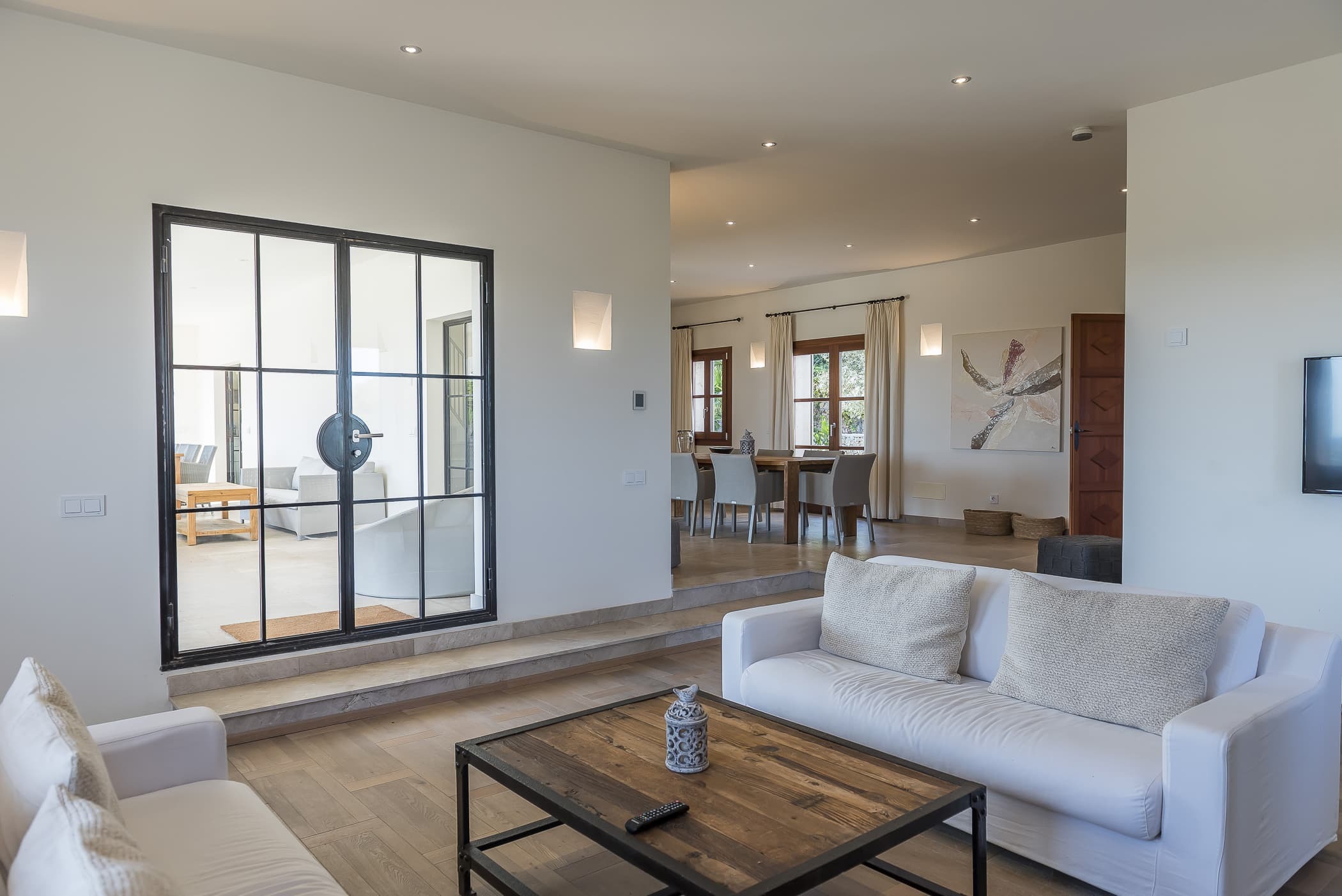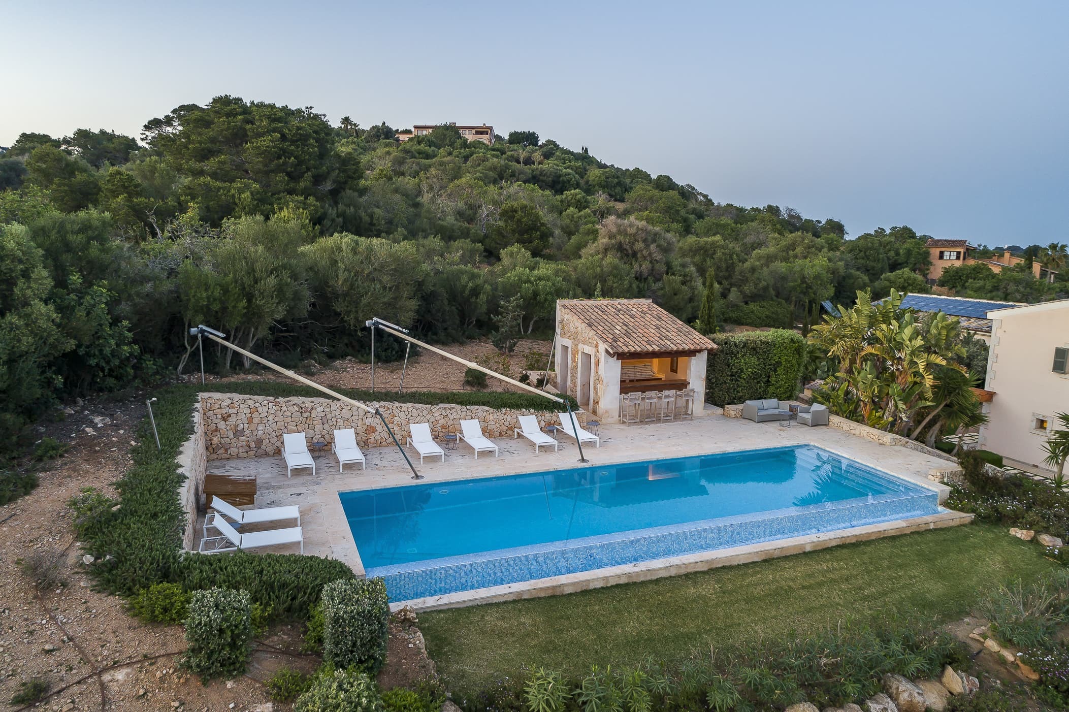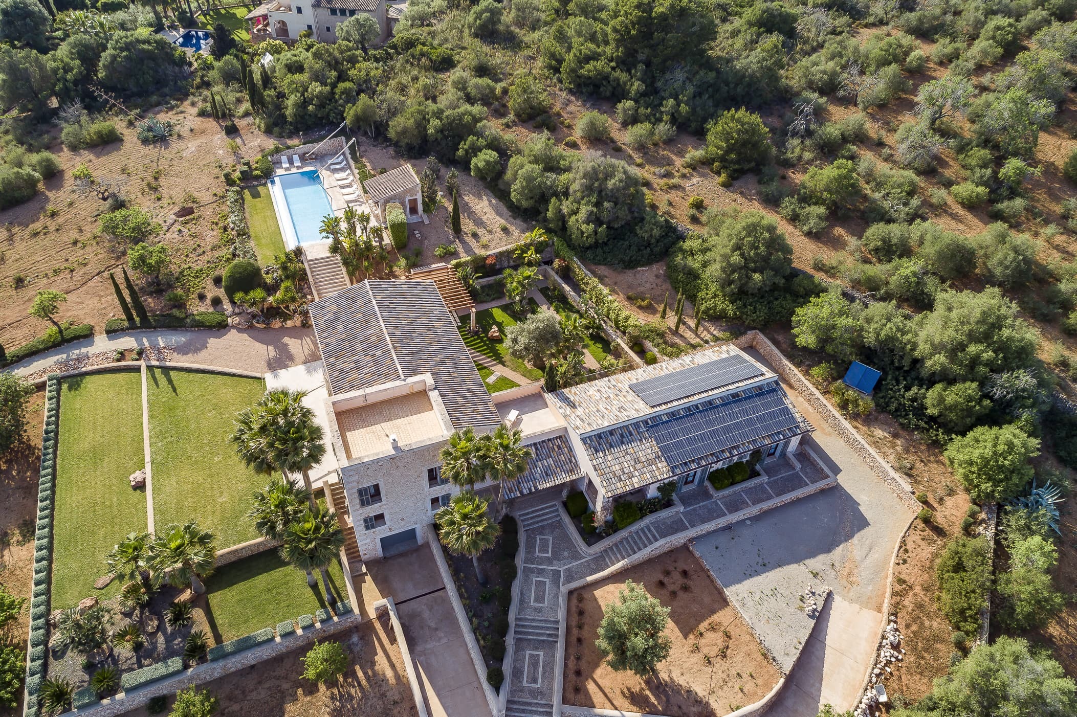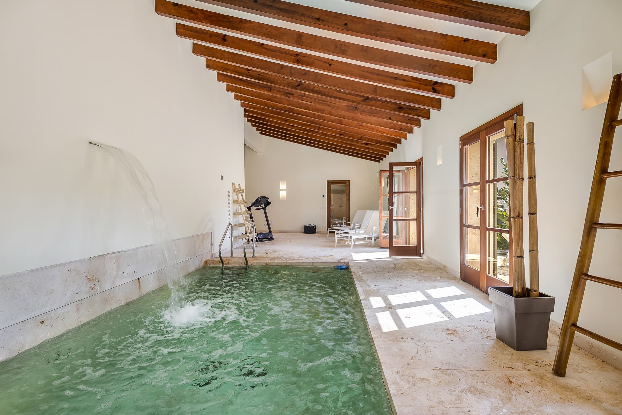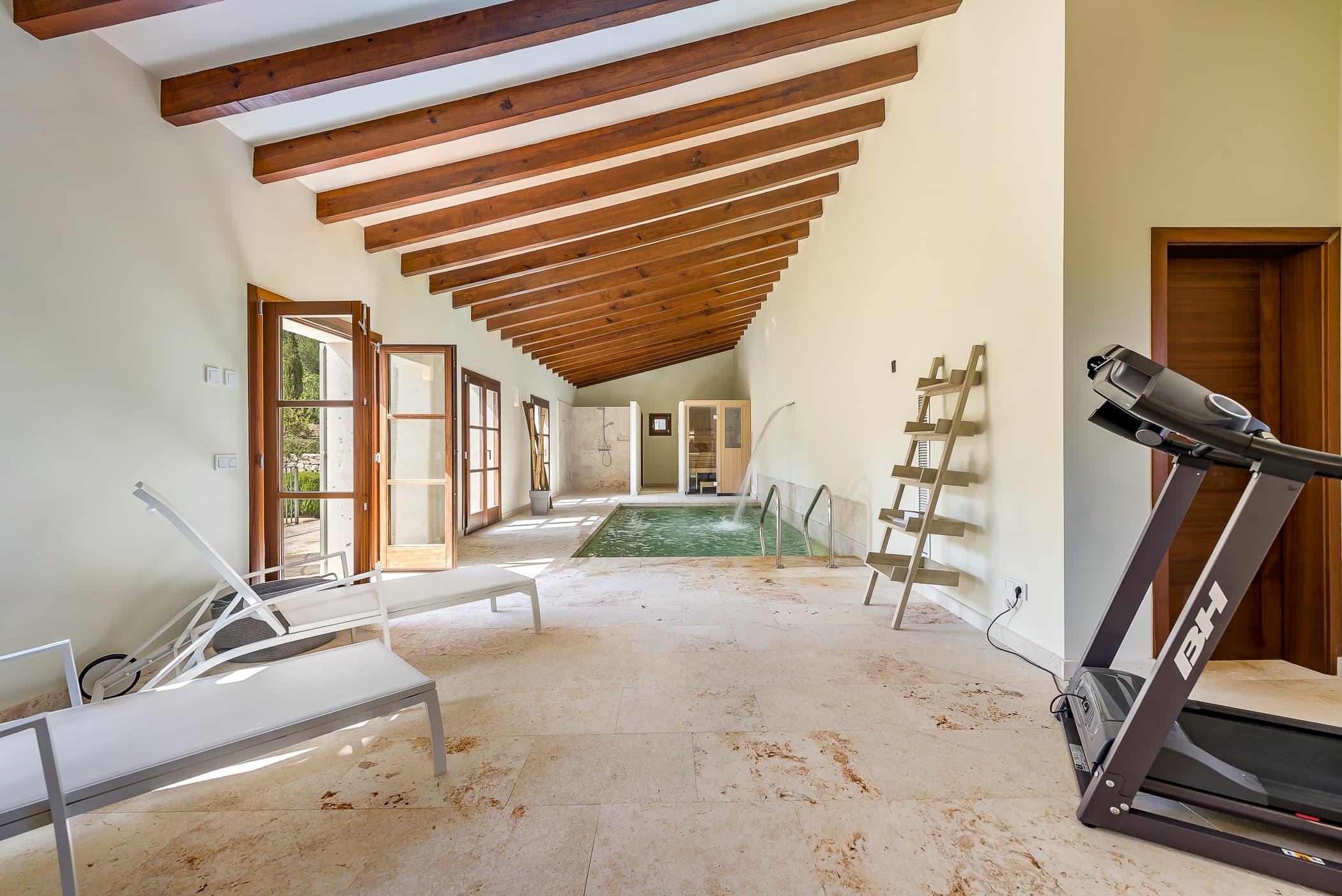 Designed for relaxed living, the finca offers a balance of social and private spaces, from the main living areas to the outdoor terraces. A private wellness area with indoor pool and waterfall adds an additional layer of leisure and retreat.