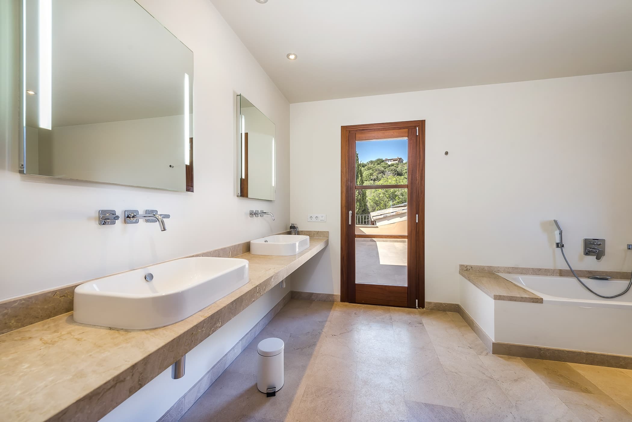 Air conditioning and underfloor heating ensure year-round comfort, maintaining a cool indoor environment in summer and a gentle warmth during the cooler months.