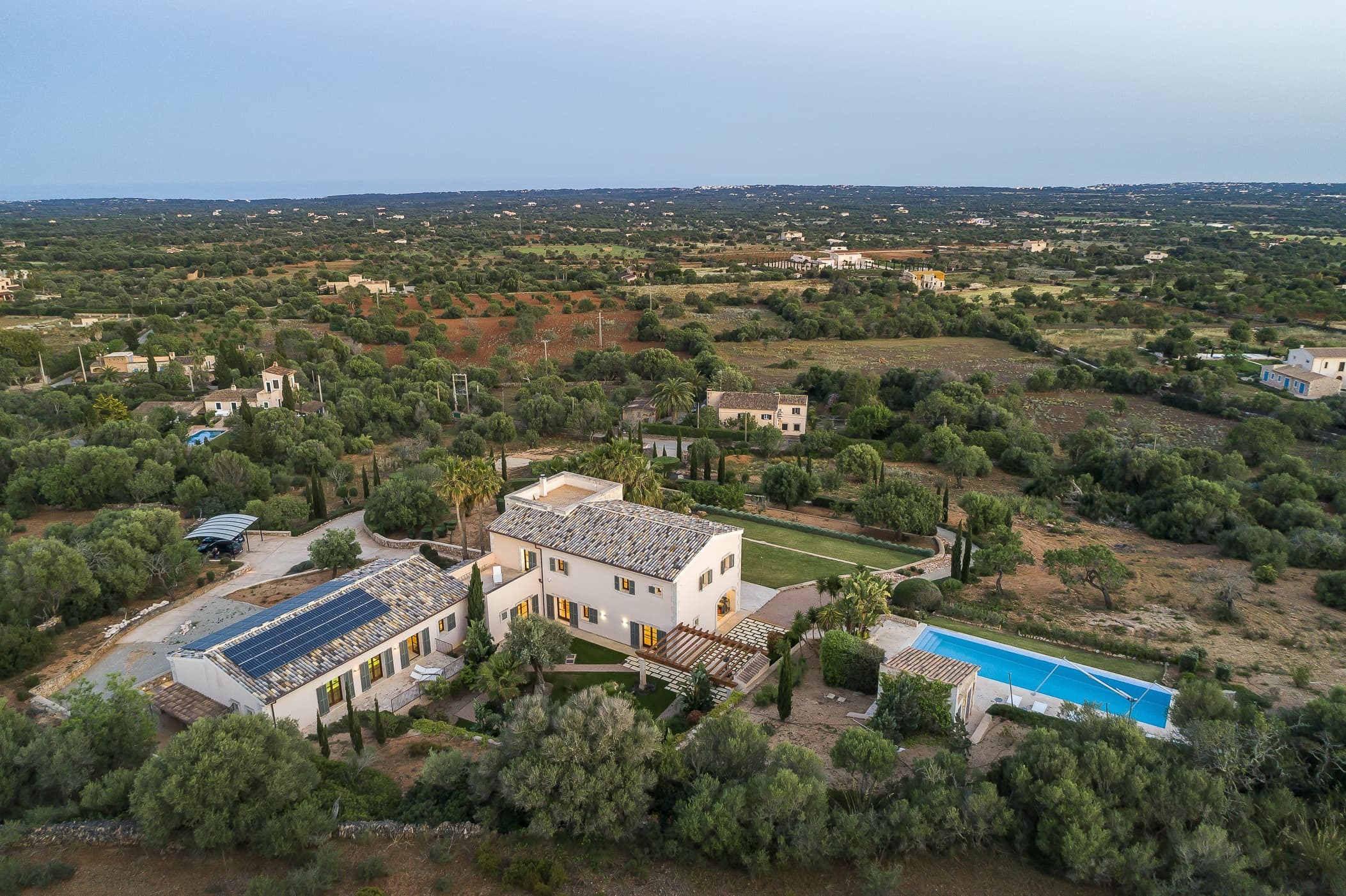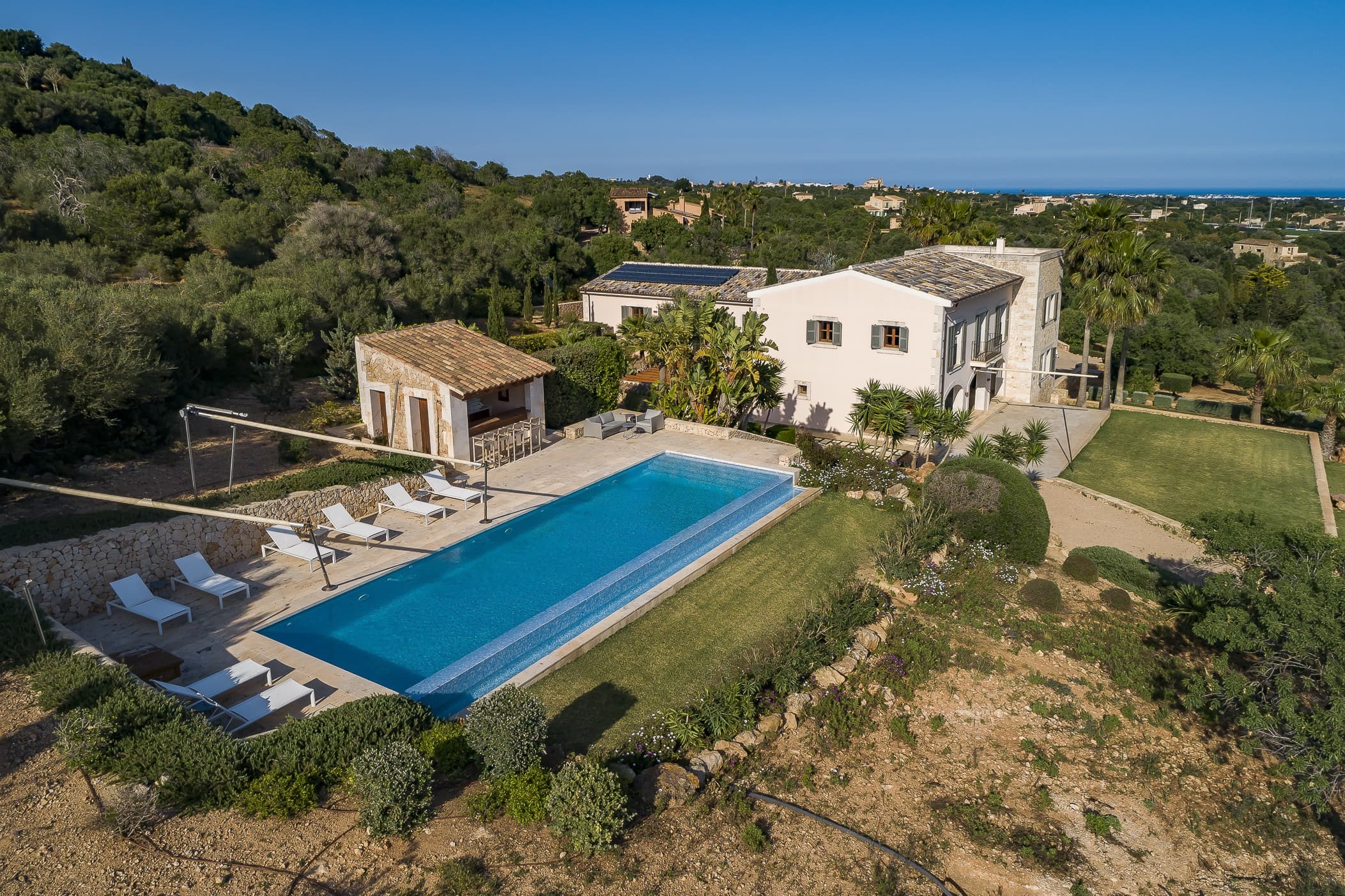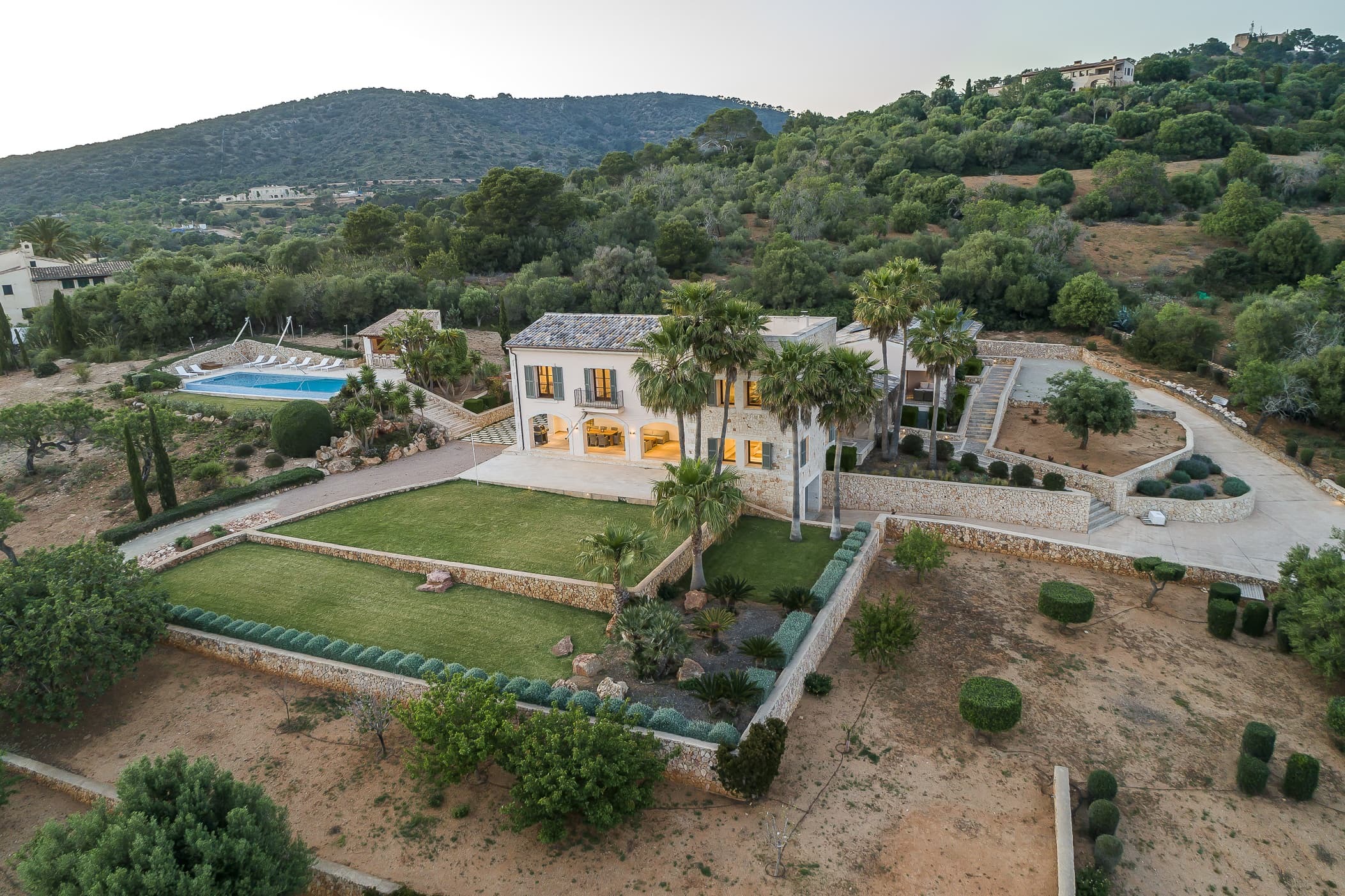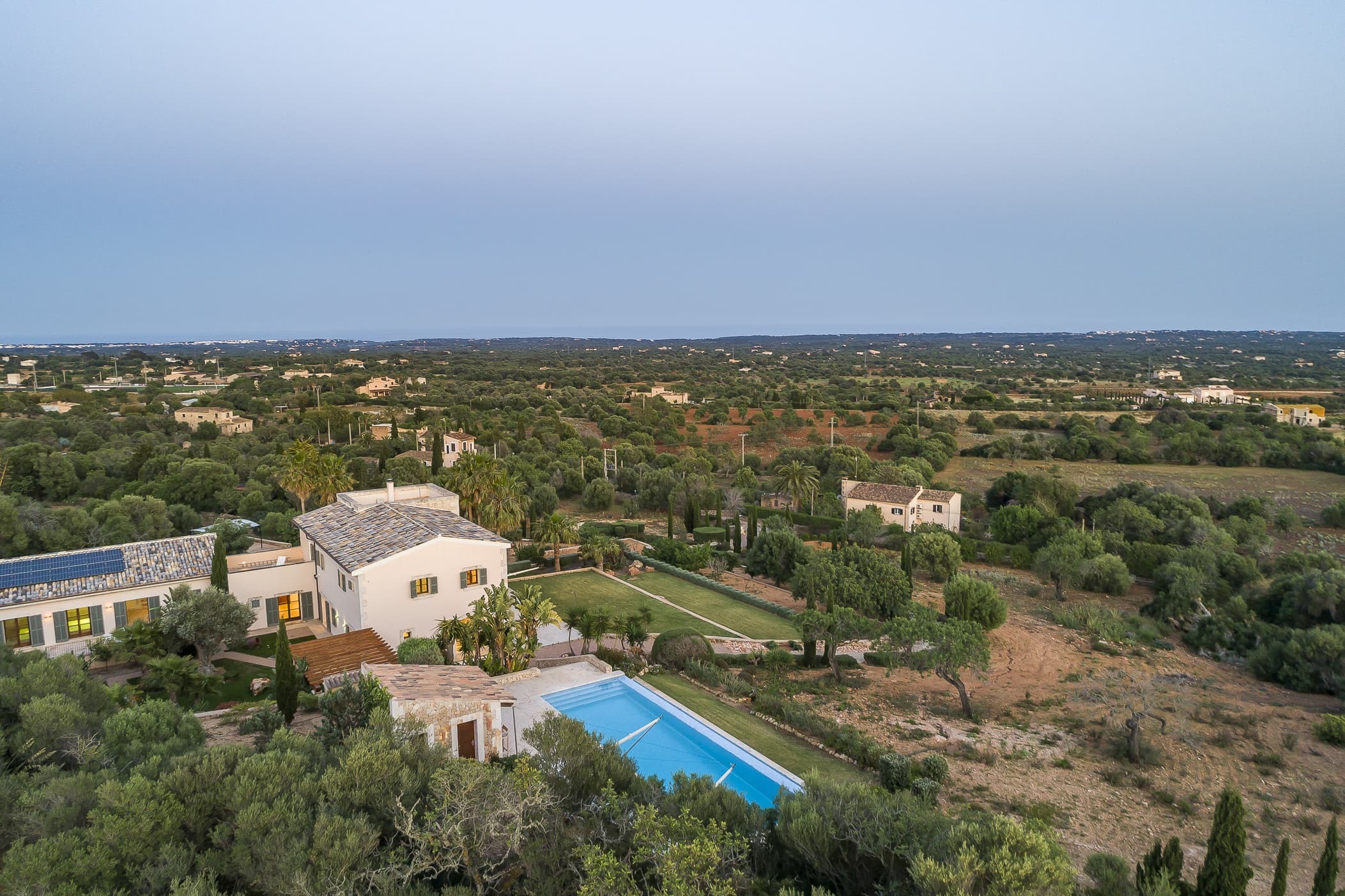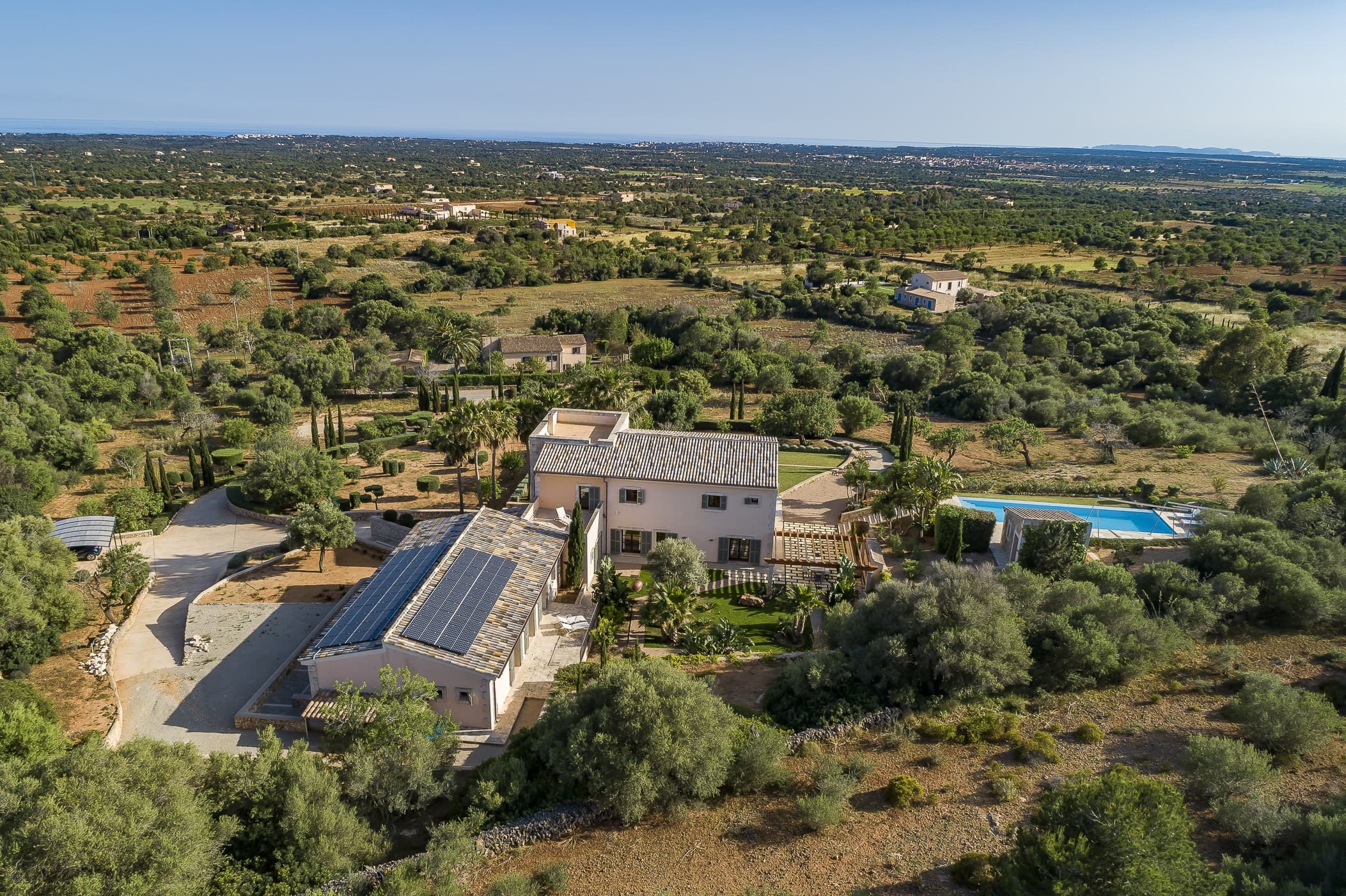 Located in the southeast near S’Alqueria Blanca, the finca enjoys a peaceful countryside setting with panoramic views extending to the sea and Cabrera, while remaining close to beaches, nature reserves, and local villages.