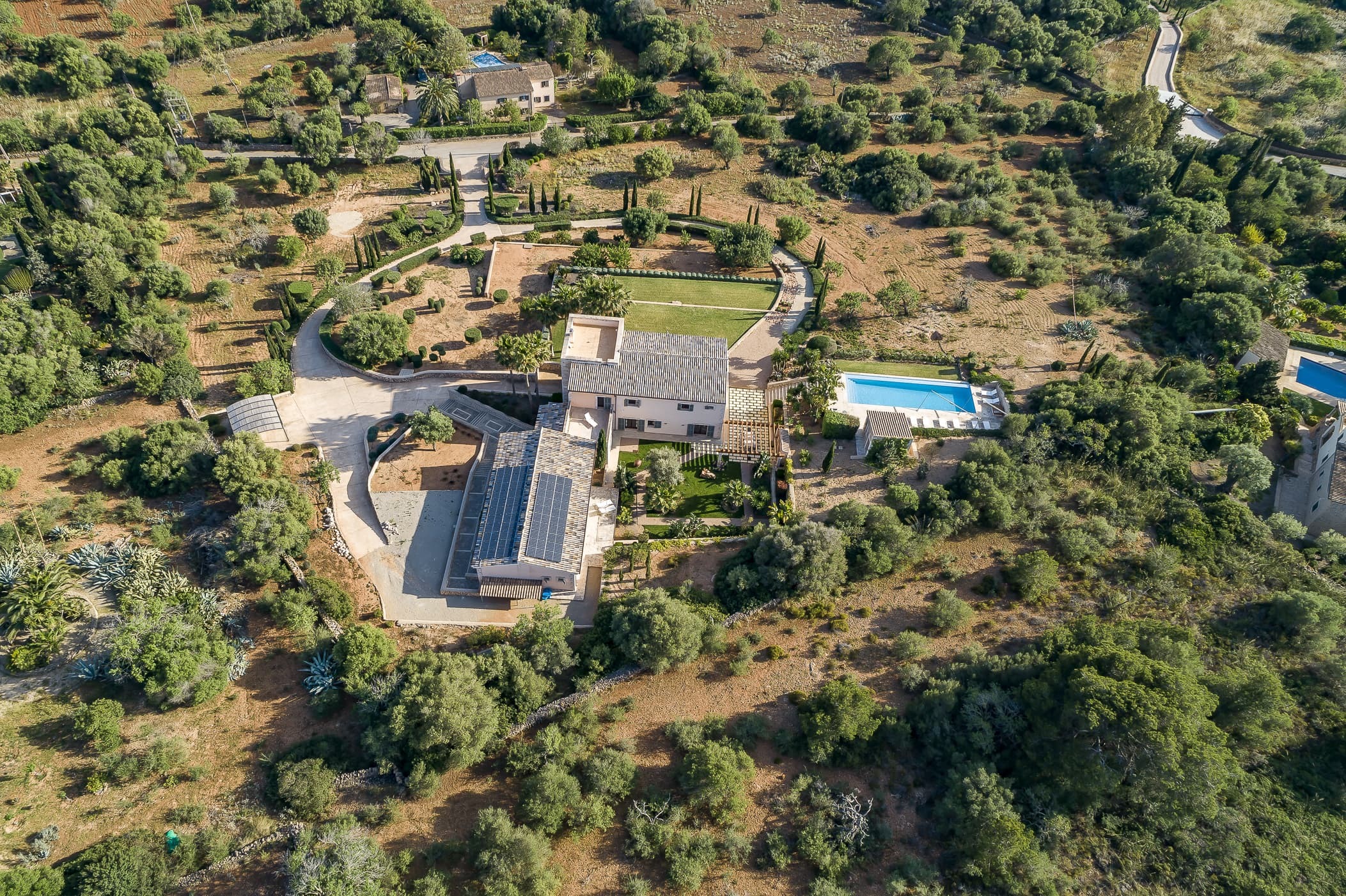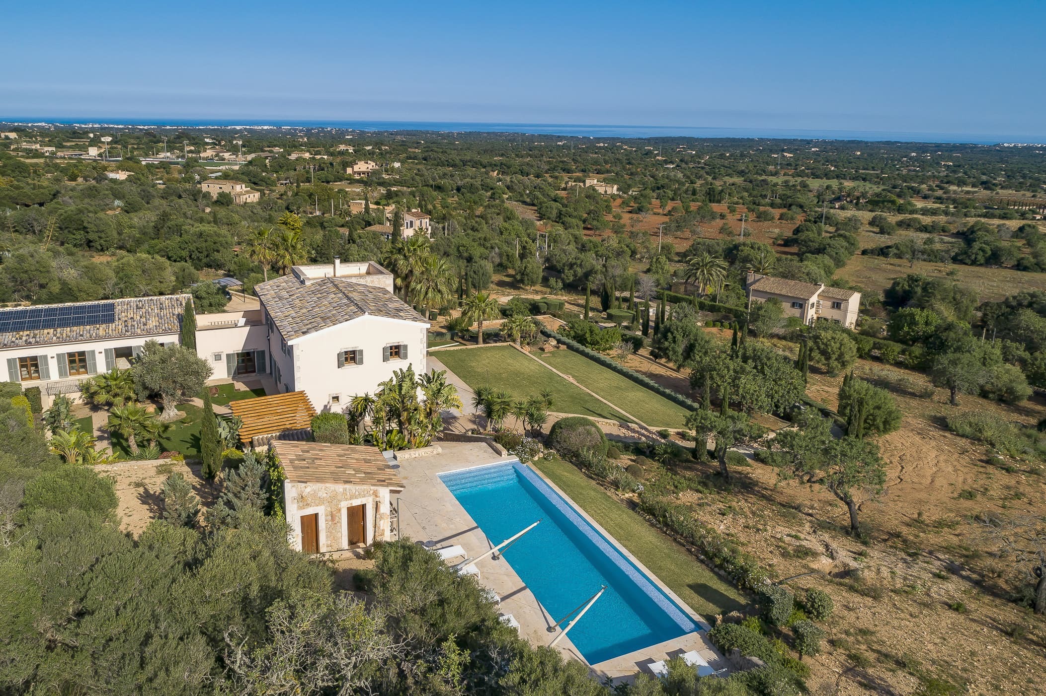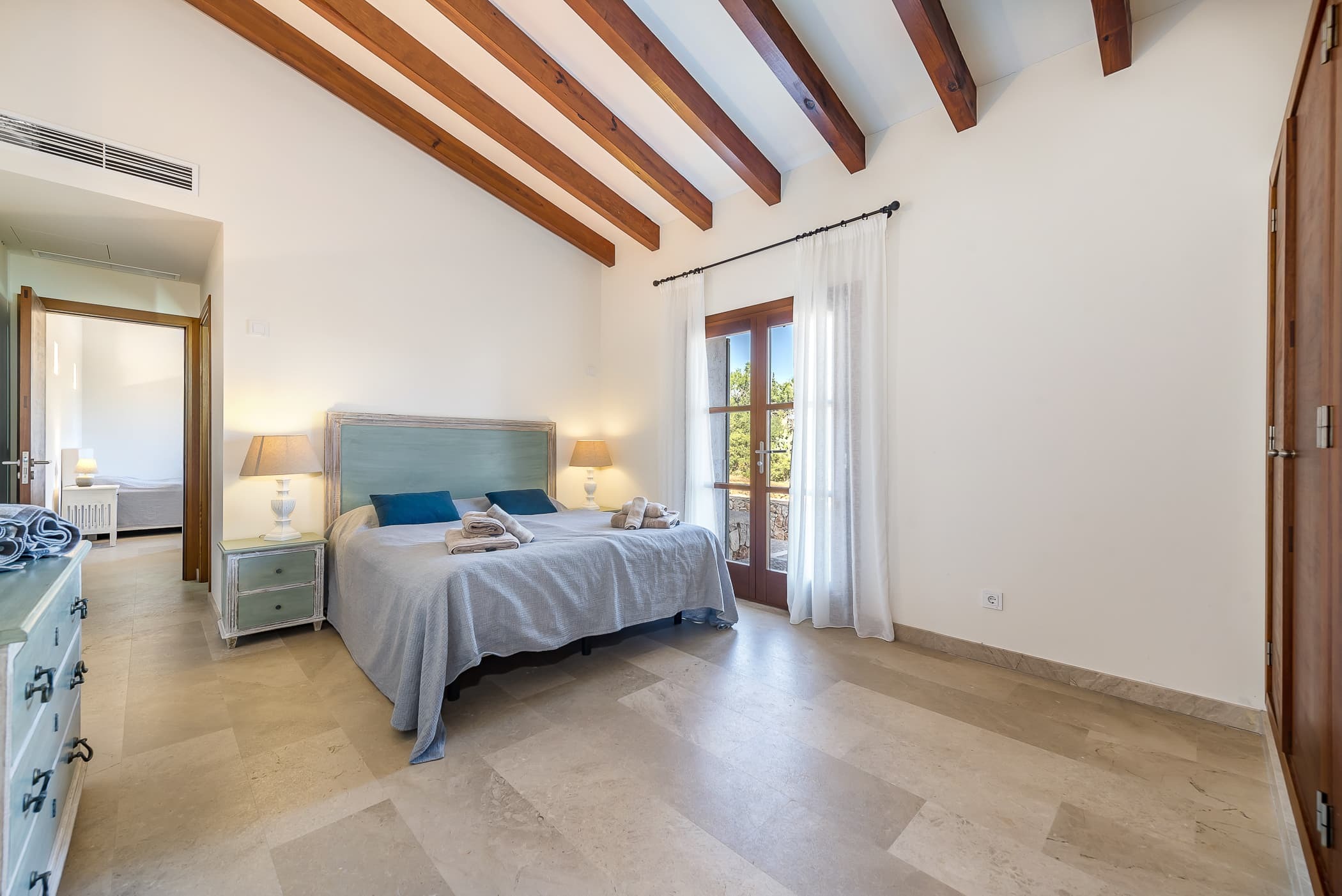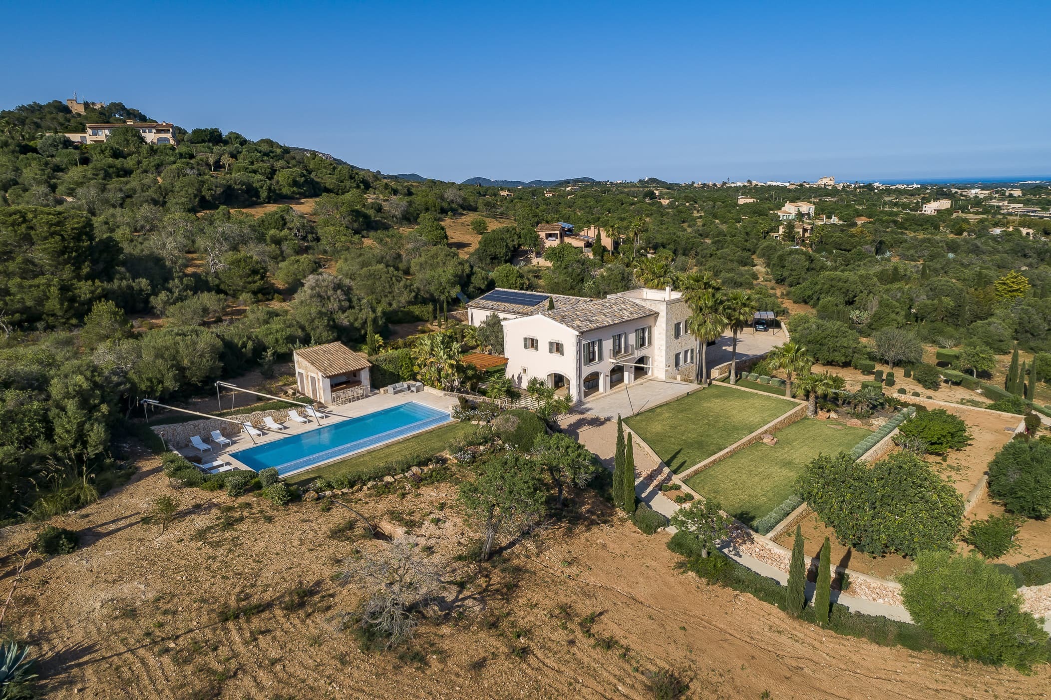 Located in the southeast near S’Alqueria Blanca, the finca enjoys a peaceful countryside setting with panoramic views extending to the sea and Cabrera, while remaining close to beaches, nature reserves, and local villages.
