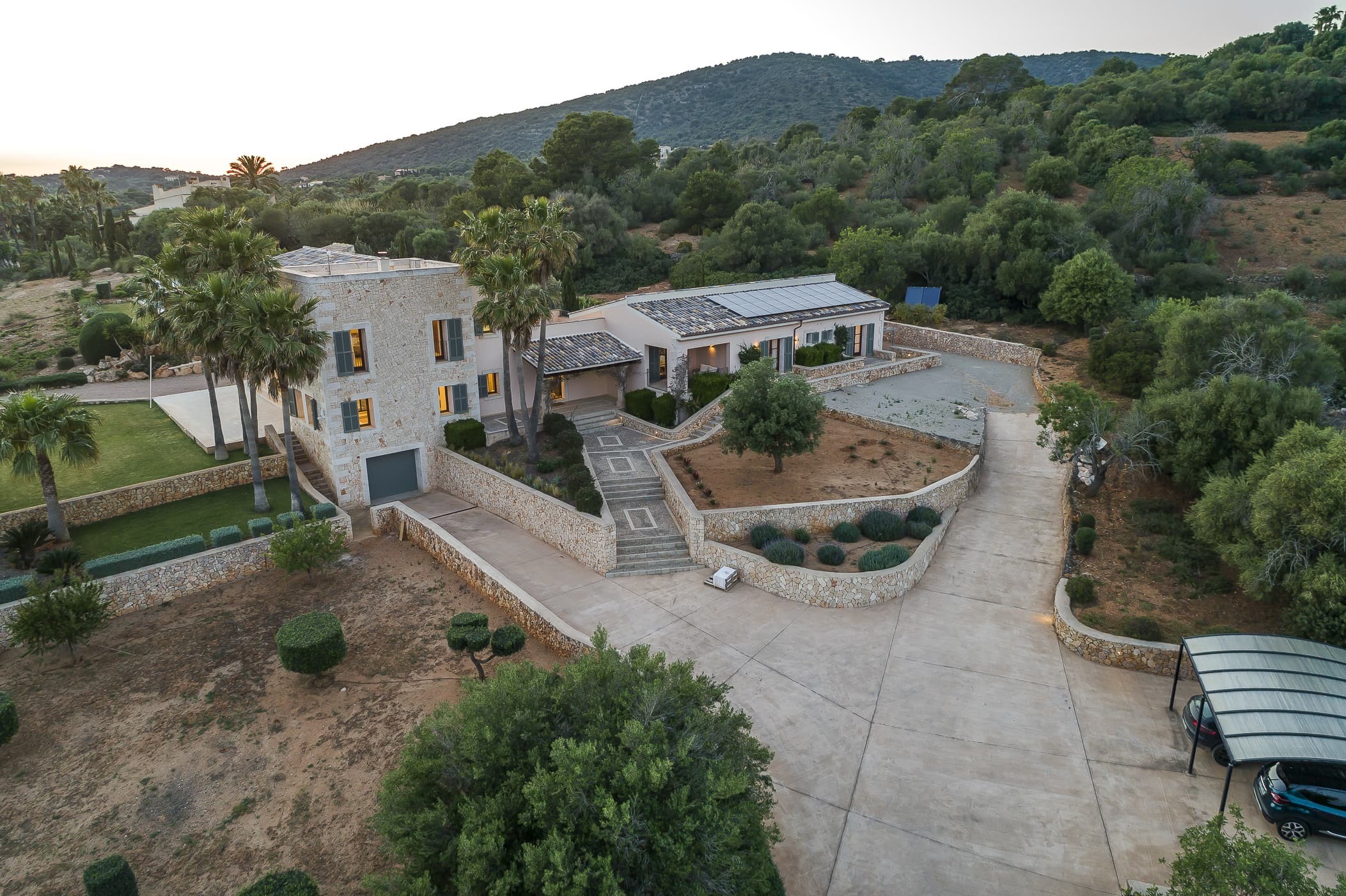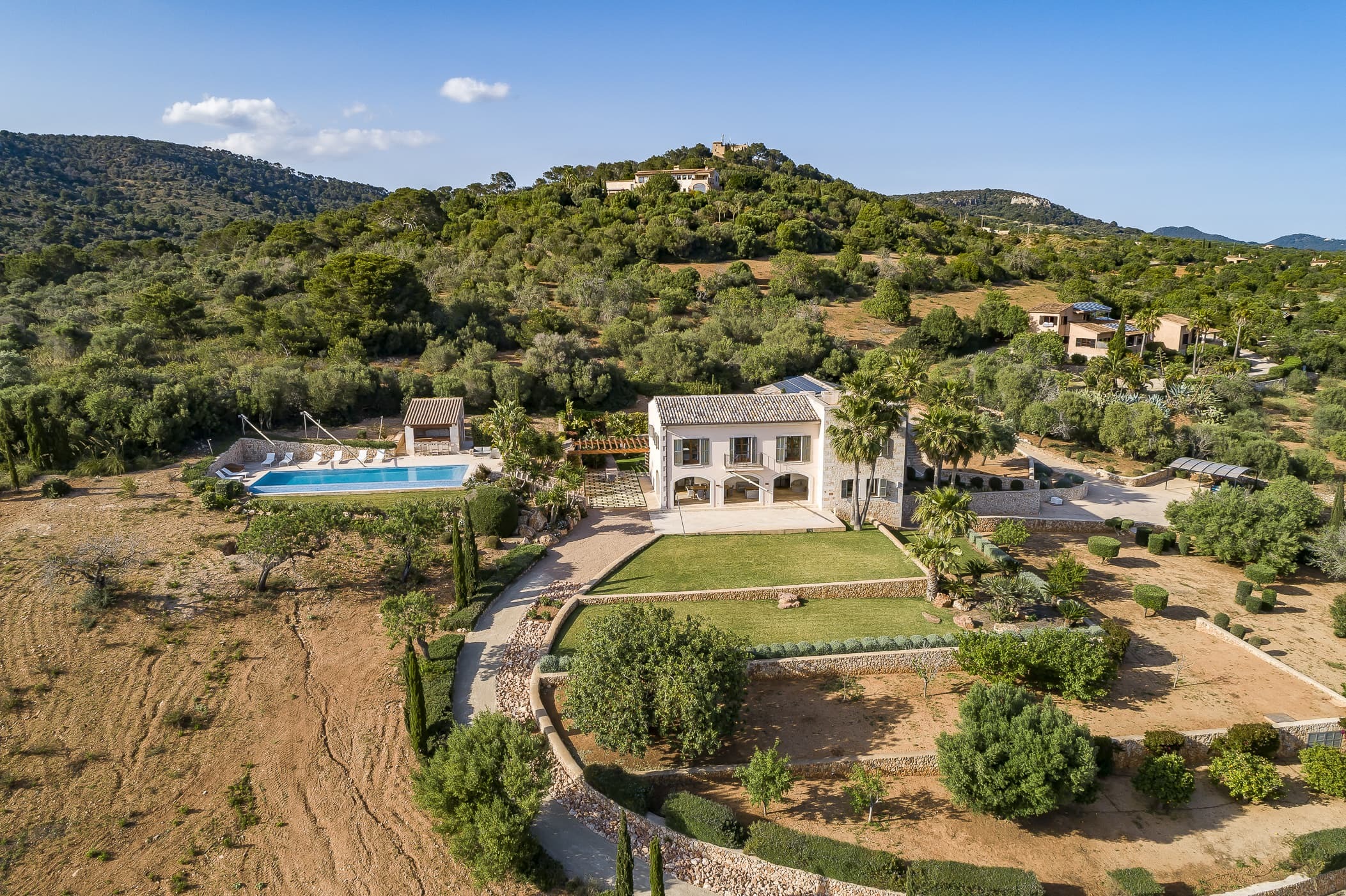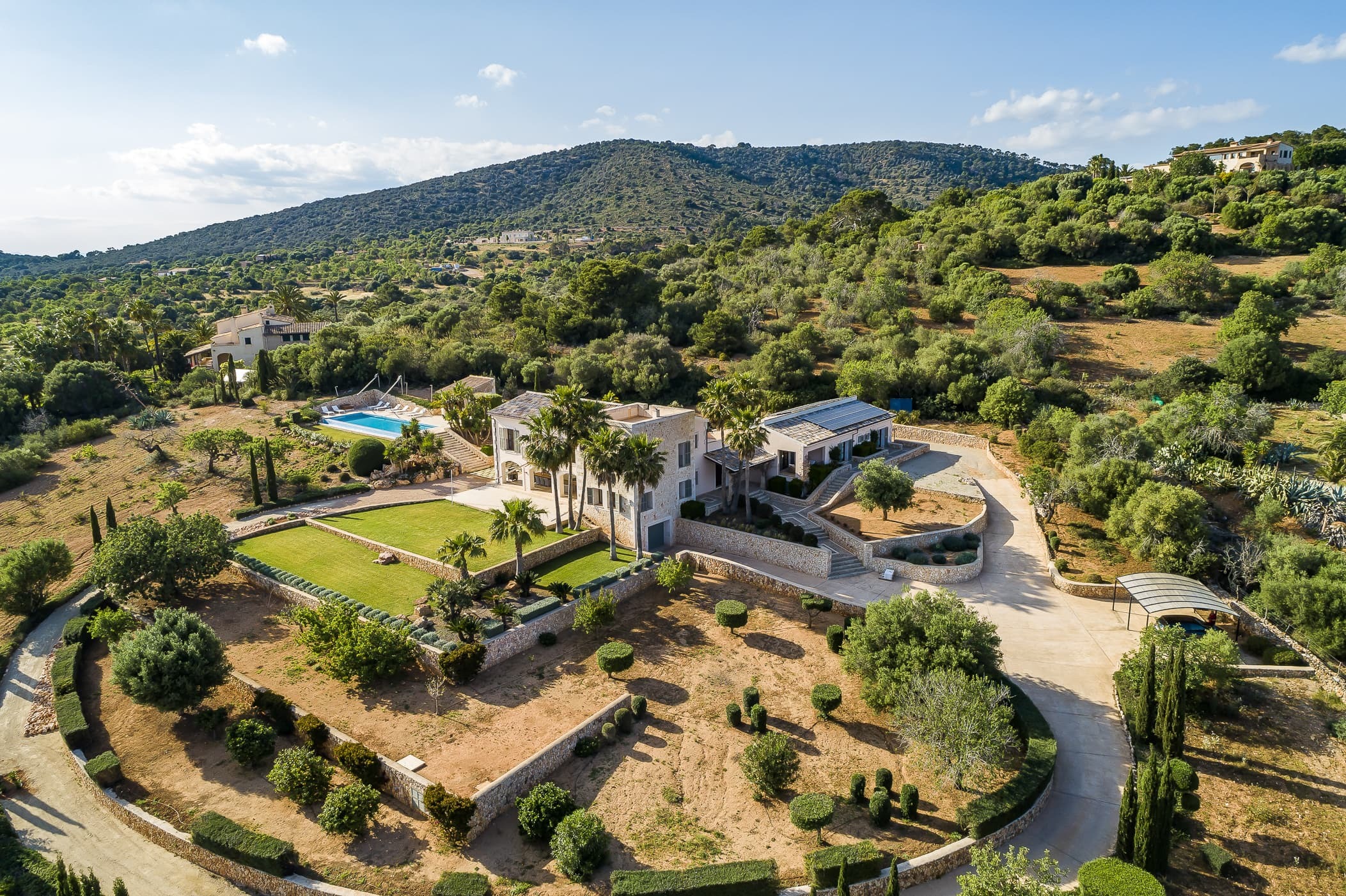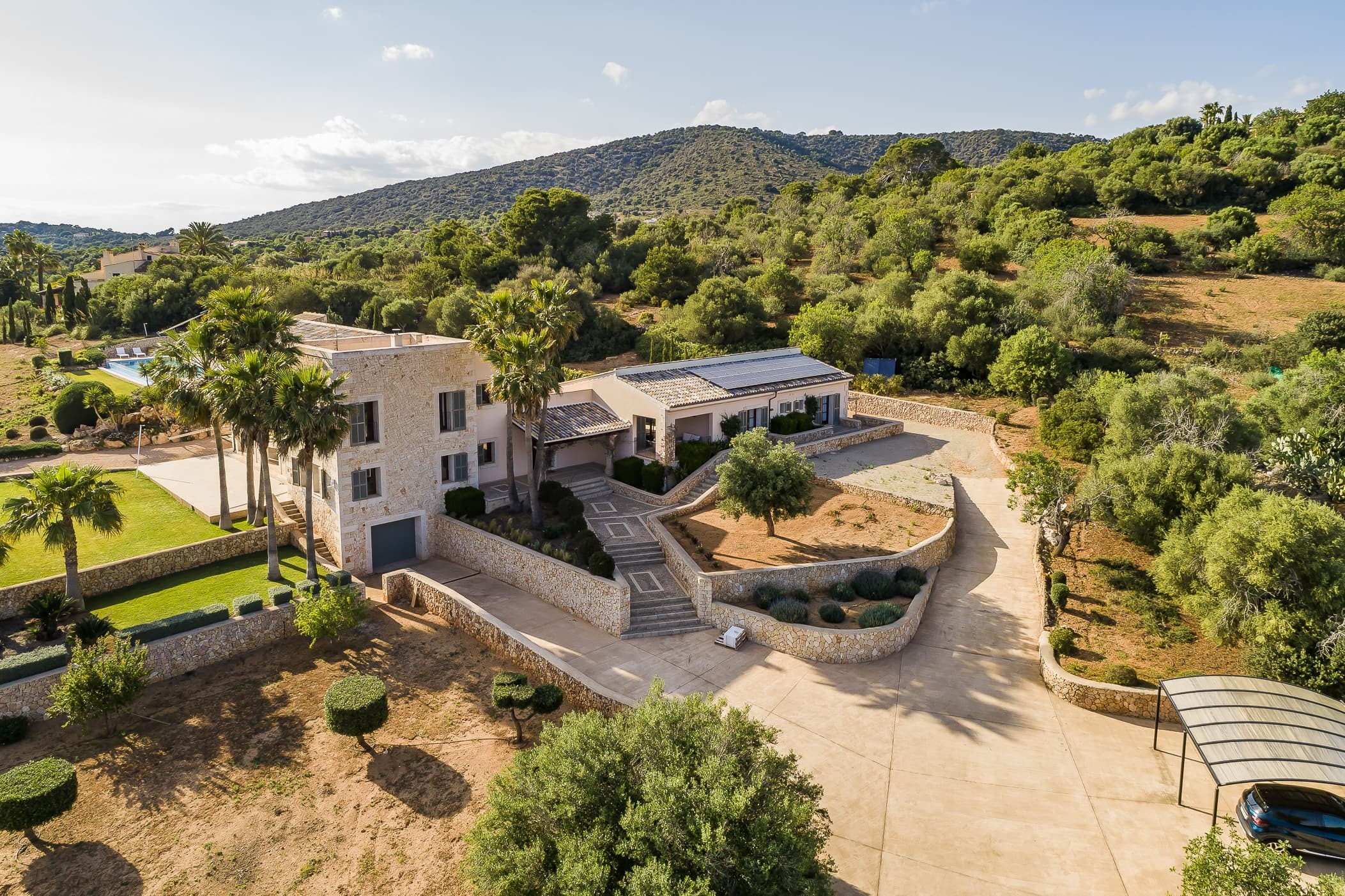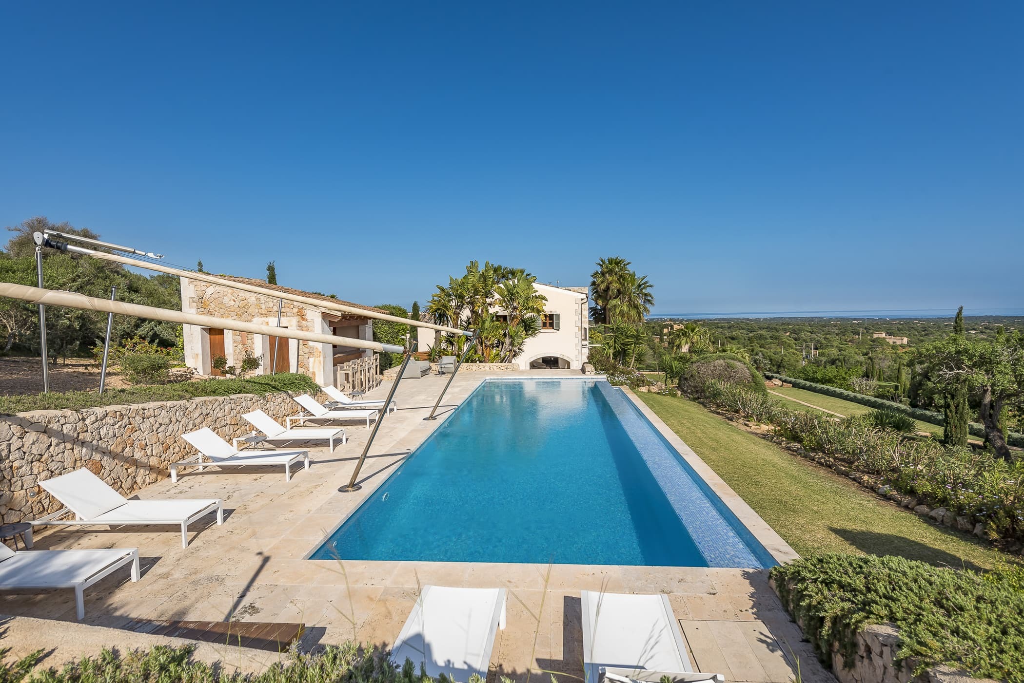 Located in the southeast near S’Alqueria Blanca, the finca enjoys a peaceful countryside setting with panoramic views extending to the sea and Cabrera, while remaining close to beaches, nature reserves, and local villages.