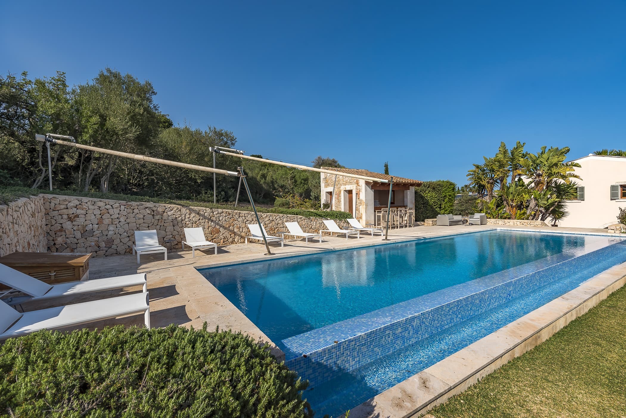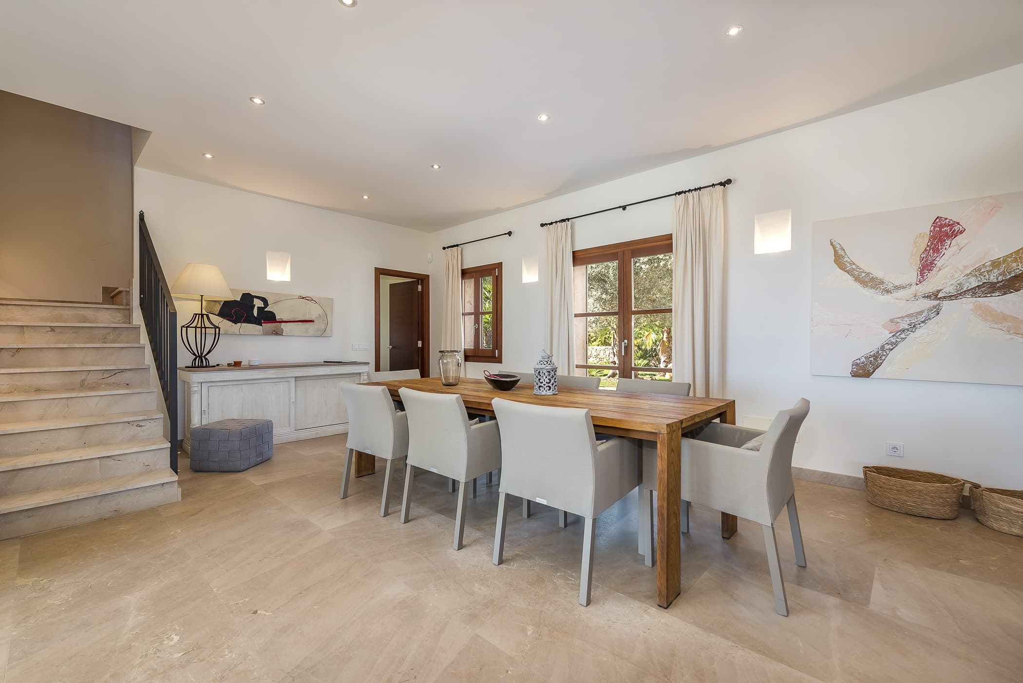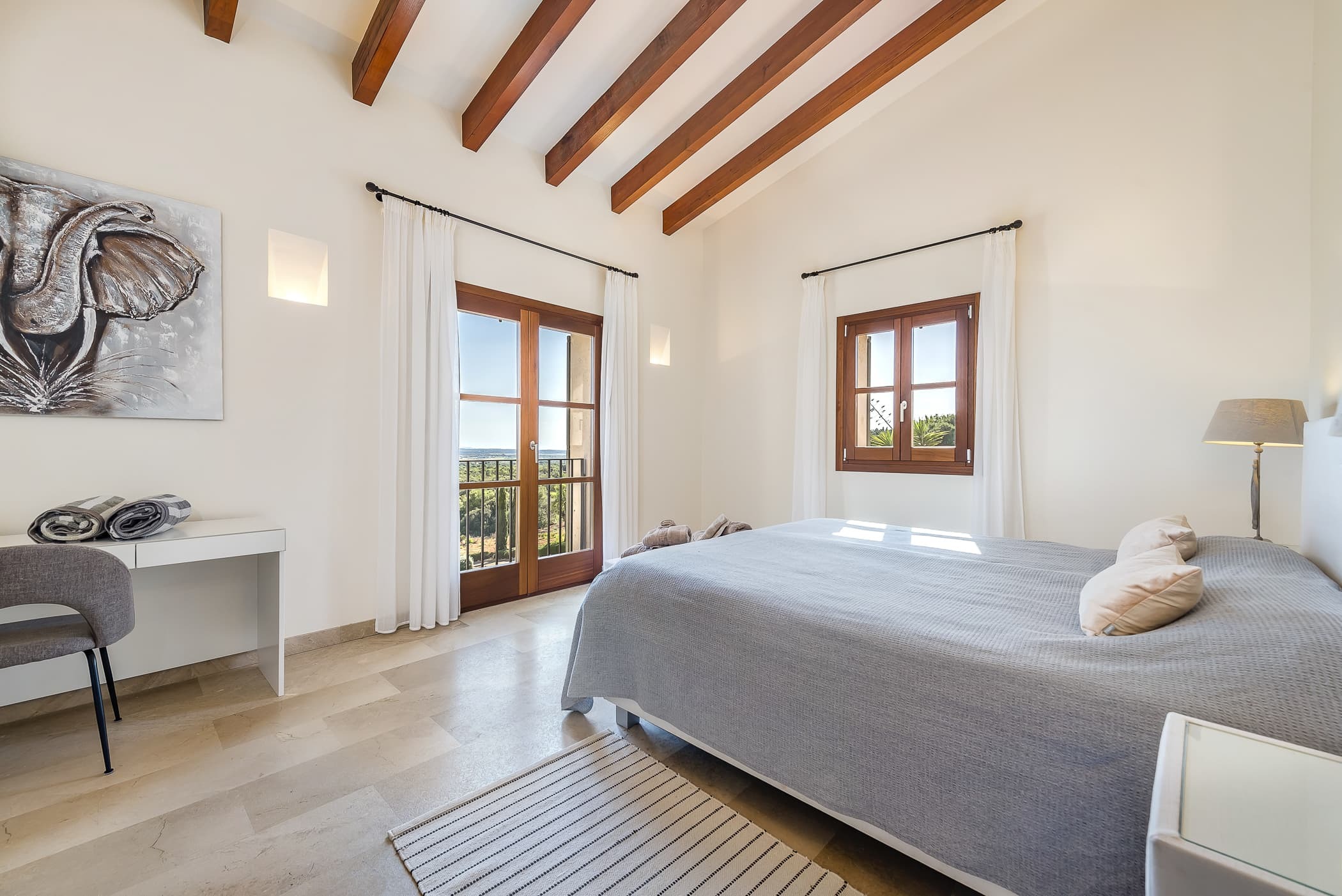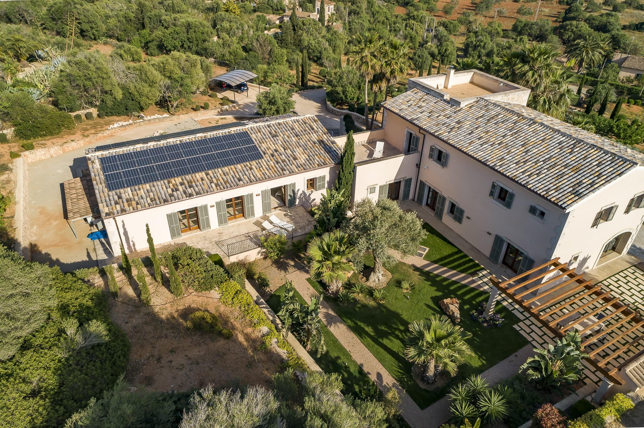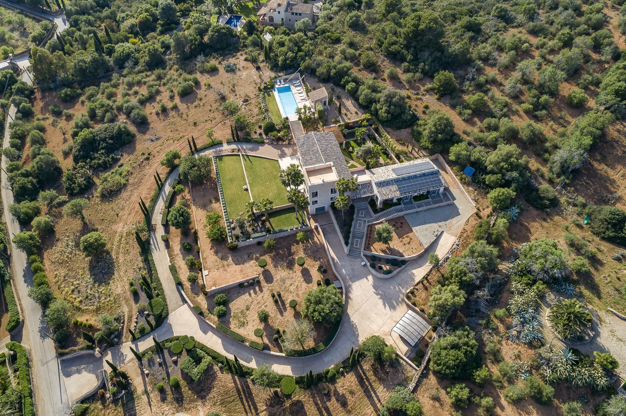 Located in the southeast near S’Alqueria Blanca, the finca enjoys a peaceful countryside setting with panoramic views extending to the sea and Cabrera, while remaining close to beaches, nature reserves, and local villages.