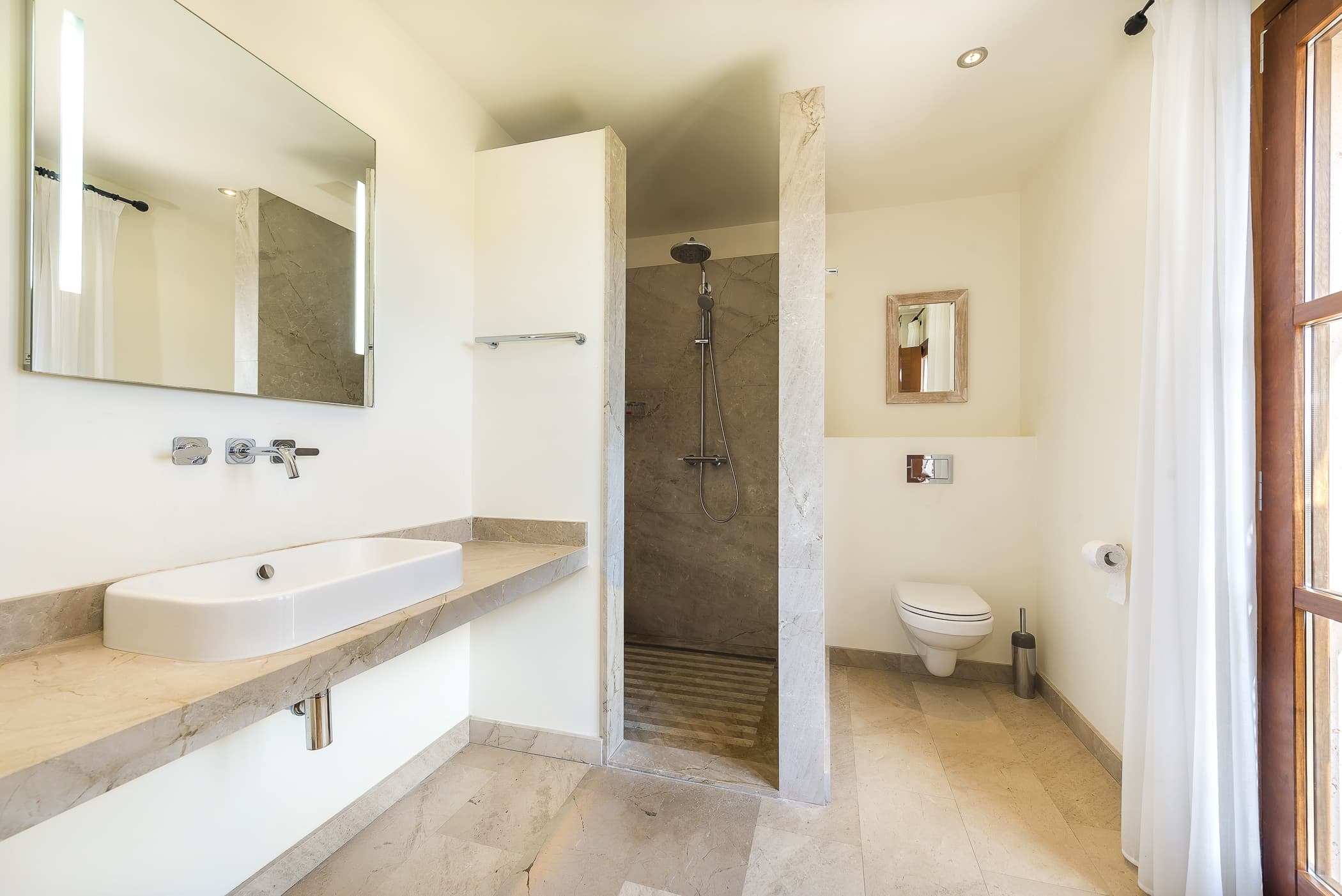 Four refined bathrooms finished with a clean, contemporary aesthetic, combining comfort and practicality with a calm, understated elegance throughout.