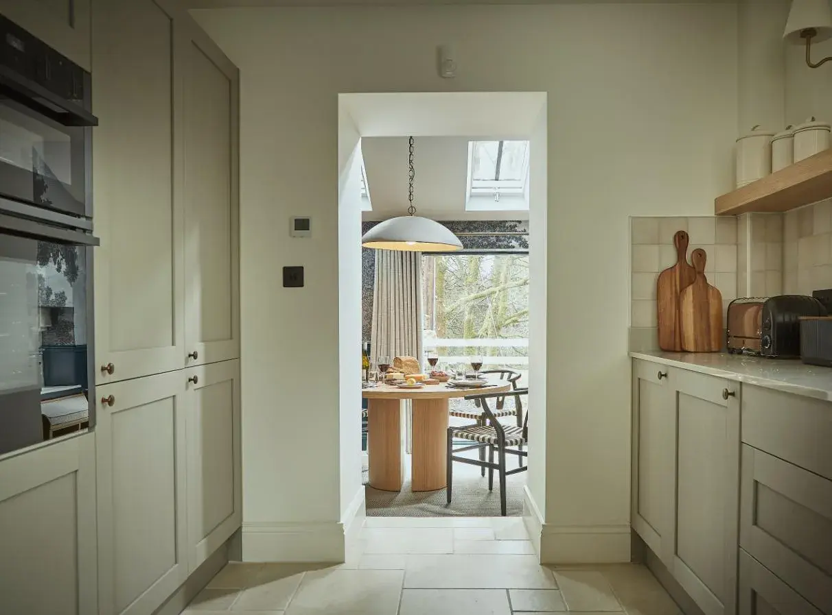 The kitchen is designed for convivial gatherings and relaxed entertaining. Two Neff ovens, induction hobs, dishwashers and generous refrigeration ensure that catering for sixteen feels effortless. A large dining table seats the entire group comfortably, positioned to make the most of the surrounding views. Whether preparing a celebratory feast, arranging a private chef experience, or enjoying a simple breakfast before a day outdoors, the space is both practical and inviting. Outside, the courtyard garden and BBQ area create a natural extension of the dining space, perfect for long summer evenings.