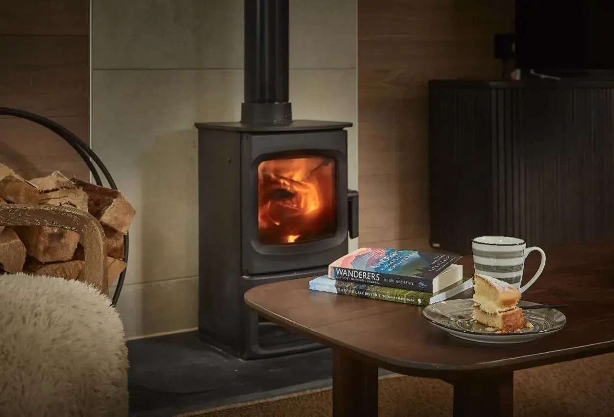 Central heating keeps the house warm year-round, complemented by the atmospheric double-sided log burner in the main living space. The heated boot warmers in the Alpine-style boot room are especially welcome after wet walks or winter hikes.