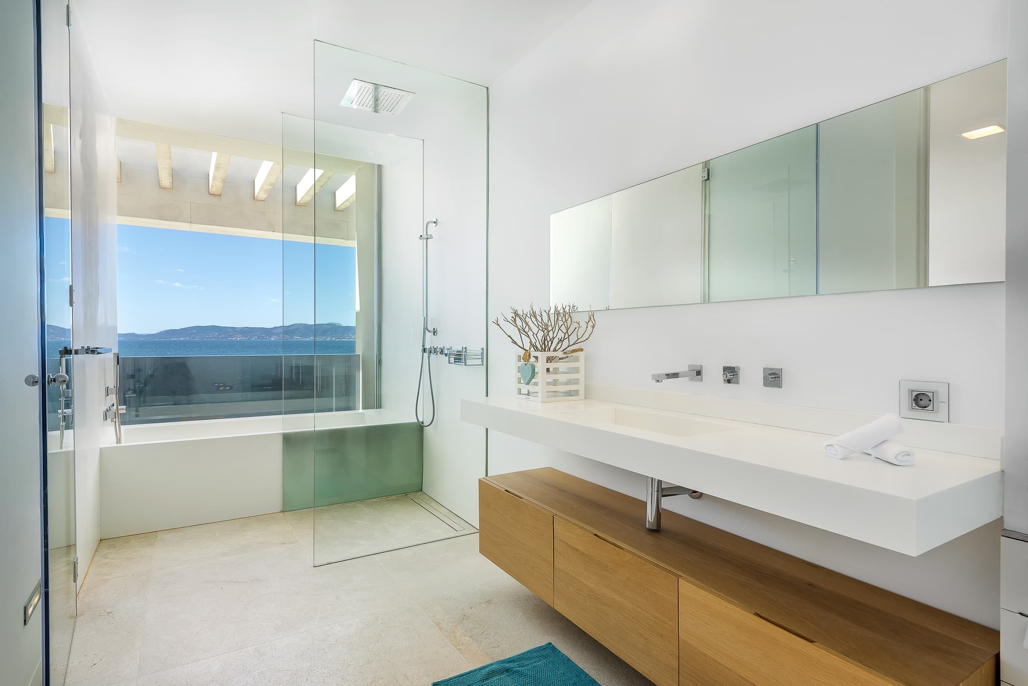 Four refined en suite bathrooms, finished with a clean, contemporary aesthetic that mirrors the calm and understated feel of the villa. Each space is both practical and quietly luxurious.
