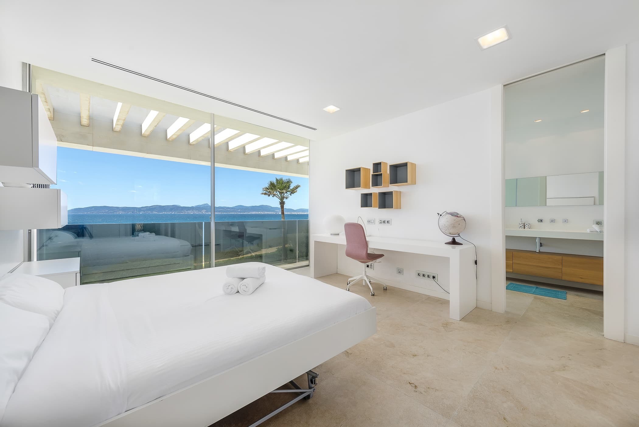 Located in Son Verí Nou on Mallorca’s south coast, the villa offers a rare combination of seafront tranquillity and accessibility. Palma and the airport are both within approximately 10 to 15 minutes by car. The coastal promenade runs directly below the property, while nearby beaches, golf courses, and marinas are all within easy reach. A car is recommended for exploring the wider area.