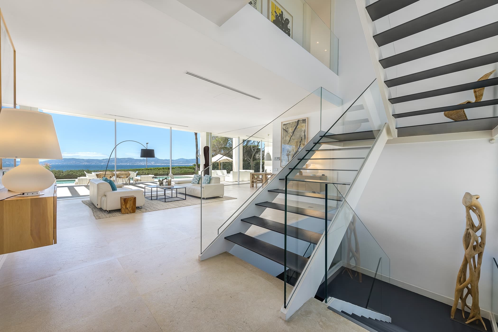 Set in the exclusive coastal enclave of Son Verí Nou, the villa enjoys an elevated frontline position above the sea, with direct access to the long coastal promenade and easy proximity to Palma, the airport, and the south coast’s beaches and golf courses.