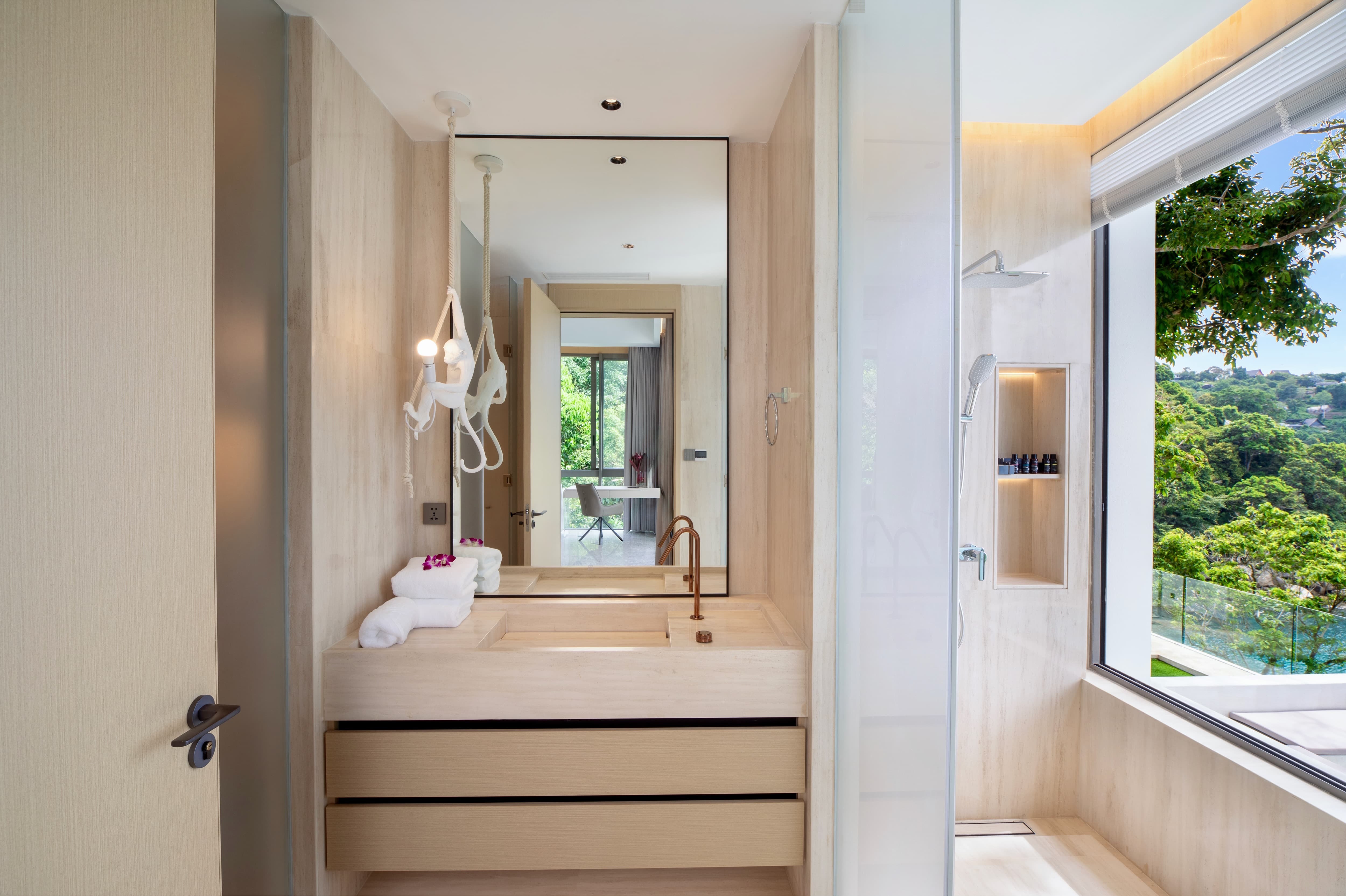 Kamala Beach lies approximately ten minutes away by car, offering calm waters, boutique shops and a selection of upscale beach clubs and restaurants. The vibrant nightlife of Patong is within easy reach, while golf courses, marinas and luxury retail centres are located across the island.