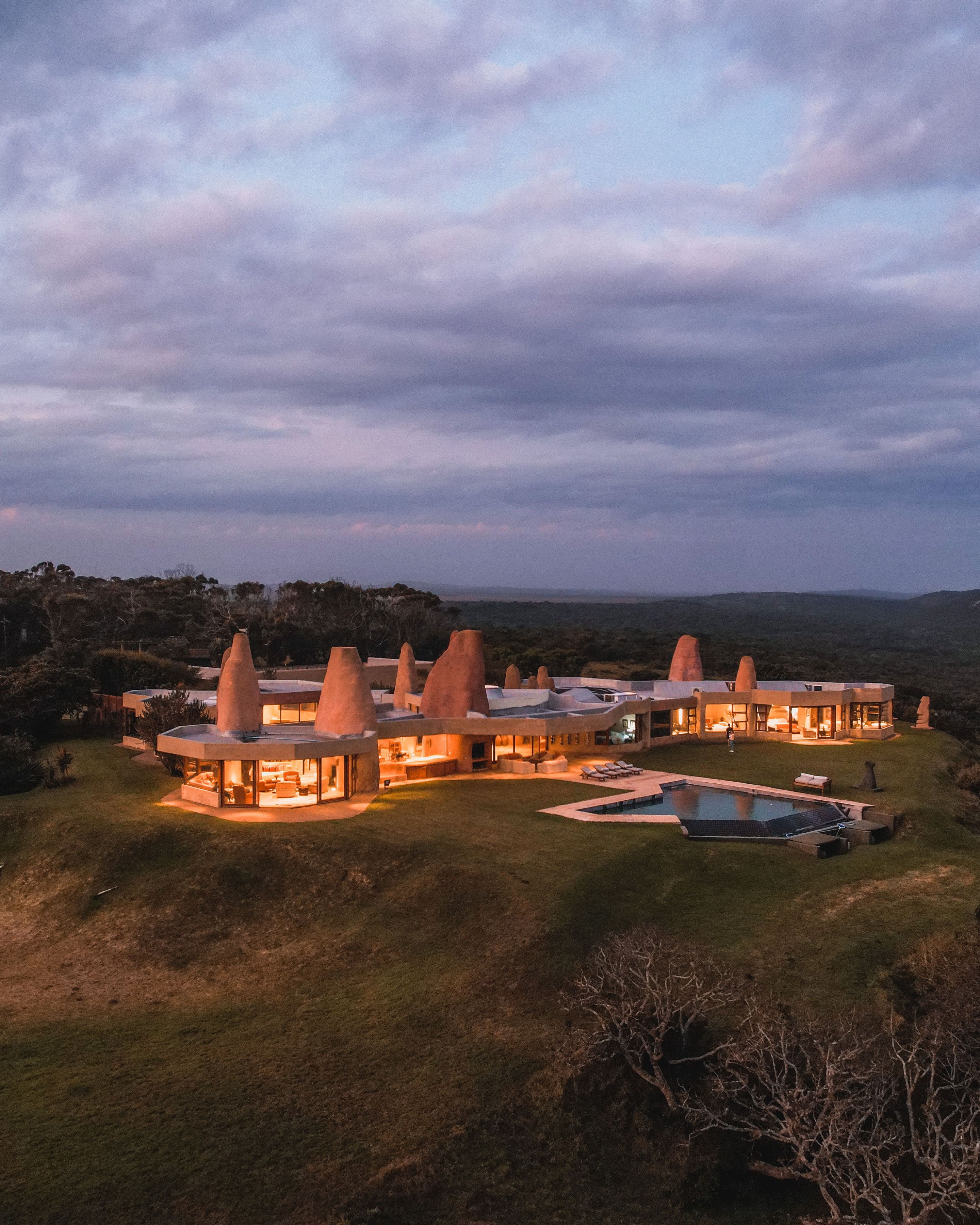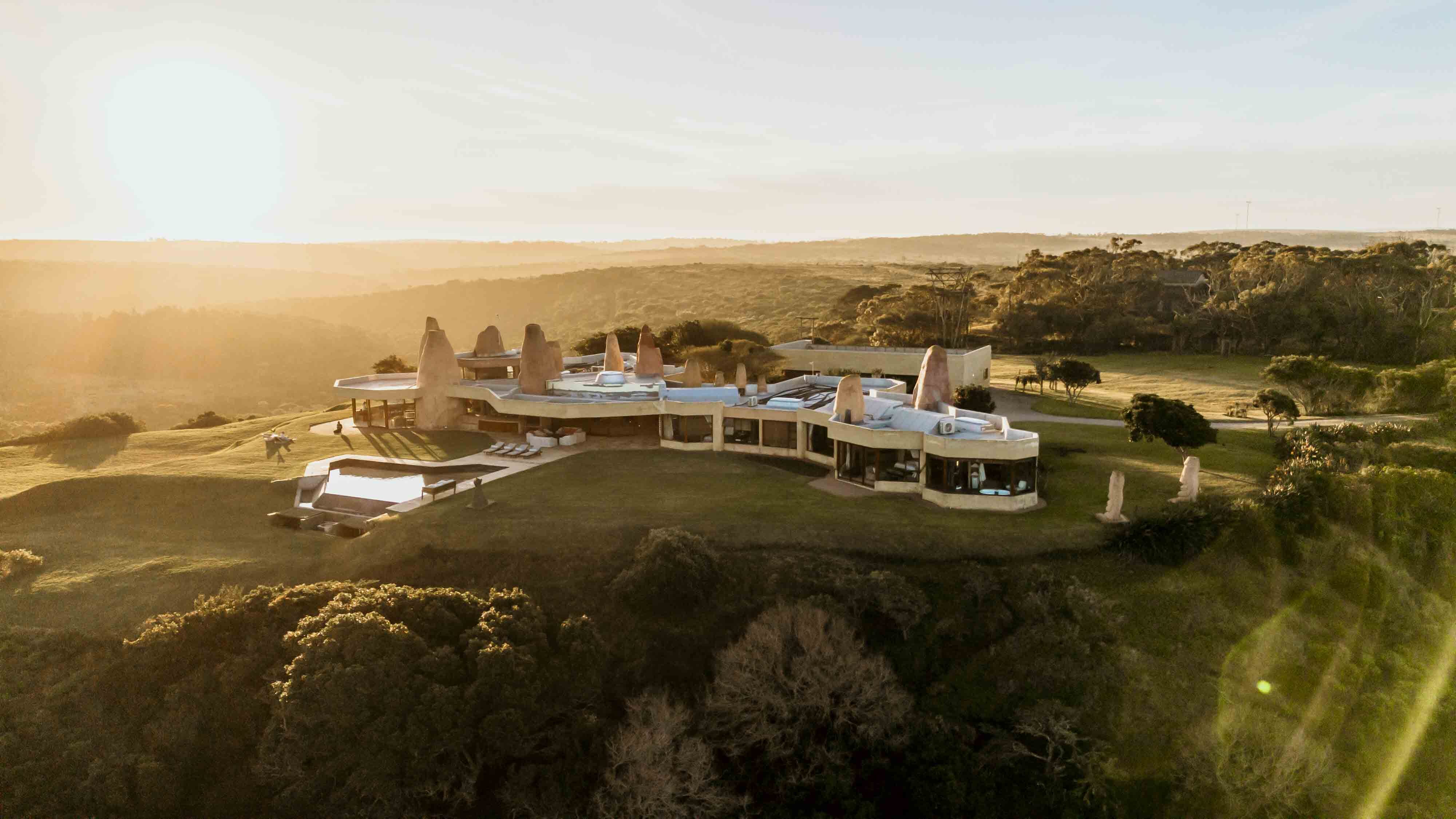 Positioned above 2 kilometres of privately accessed beachfront and surrounded by 680 acres of ancient coastal forest, the villa commands uninterrupted views of the Indian Ocean from every room. Designed to merge seamlessly with its surroundings, the structure is finished in pigmented white cement, lime, and sand sourced directly from the beach below, allowing architecture and landscape to feel indivisible
