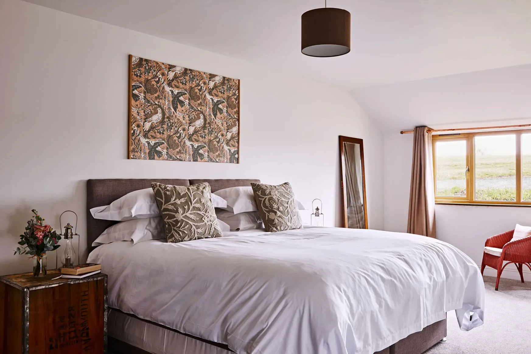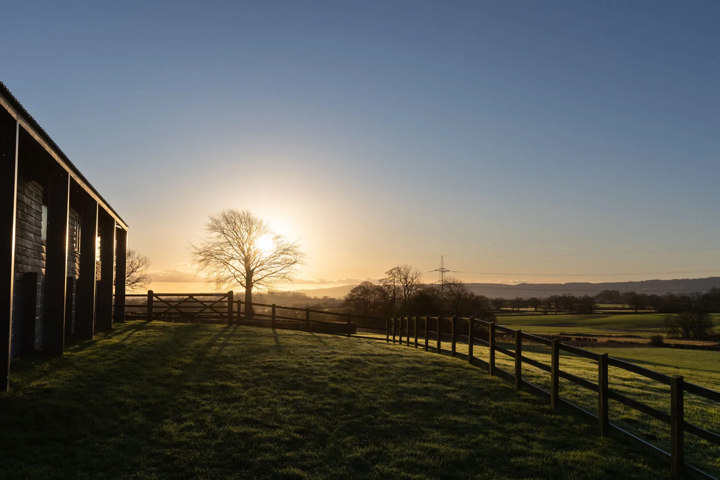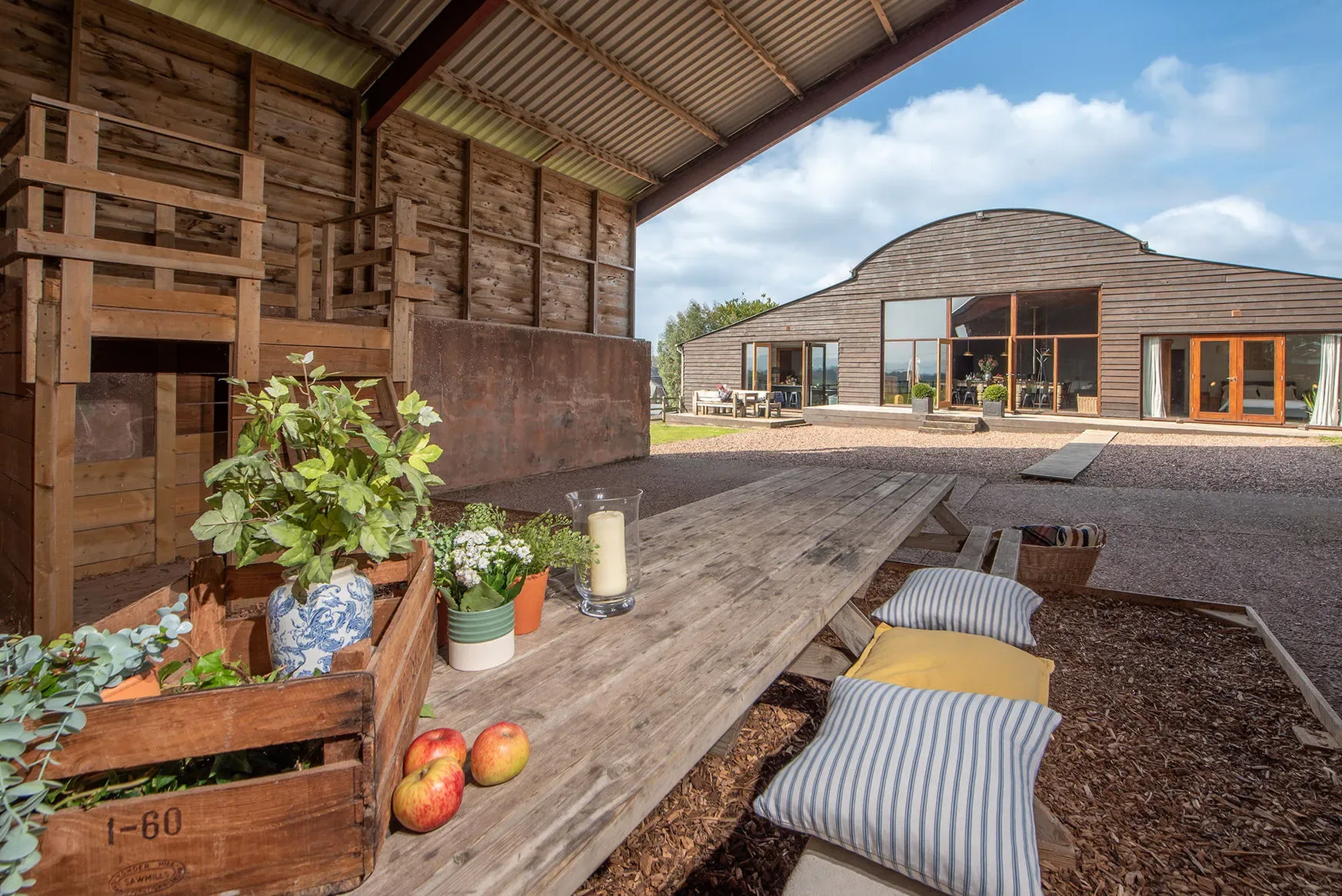 The Shed is set in a rural countryside location with open views and direct access to walking routes from the house. The setting is quiet and well suited to nature-based escapes and group retreats.