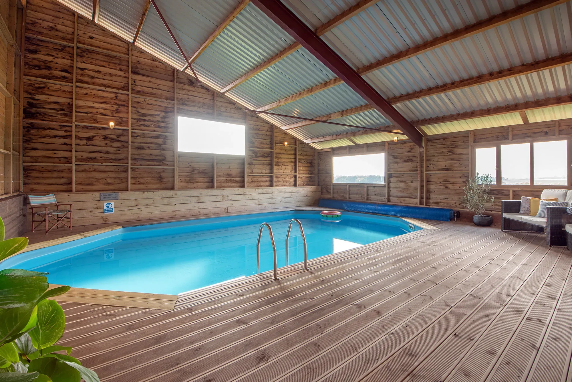 Days can be spent drifting between the indoor heated pool, hot tub, cinema room, and outdoor spaces, while evenings are perfect for long shared meals, board games, or gathering under the covered barbecue area as the light fades. Five spacious ensuite bedrooms offer privacy and comfort for every guest, and the bespoke kitchen is well suited to cooking for large groups. With beautiful walks directly from the house, welcoming local pubs nearby, and the easygoing charm of the West Country all around, The Shed is an ideal base for family gatherings, celebrations, or a restorative break with friends.