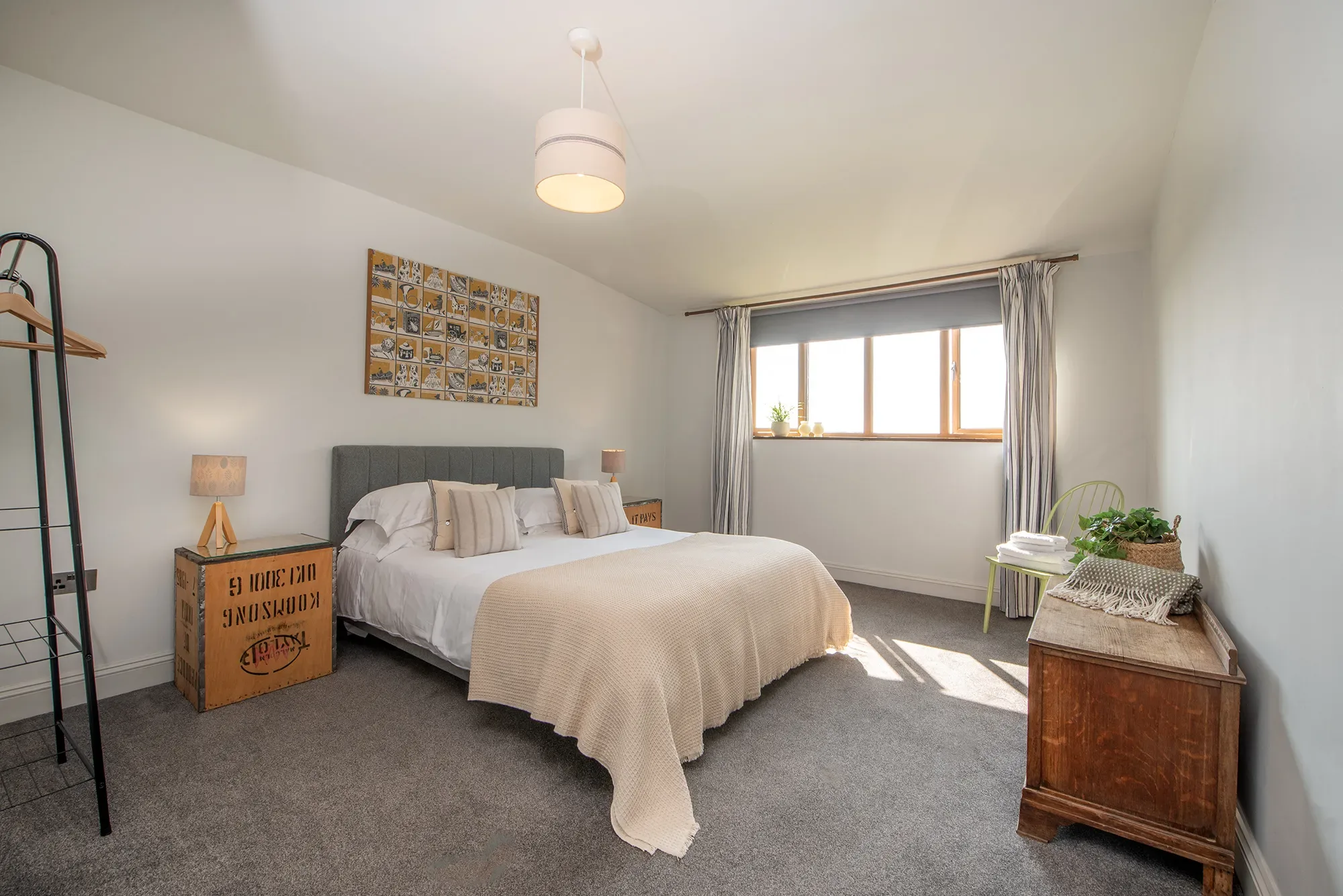 The Shed sleeps up to 14 guests across 5 large ensuite bedrooms. There are 3 bedrooms with king beds and 2 bedrooms that can be configured as super king or twin. In addition, there are 4 full-size single beds to accommodate flexible group arrangements. Luxury bed linens and towels are provided. Laundry facilities include one washing machine and one tumble dryer.