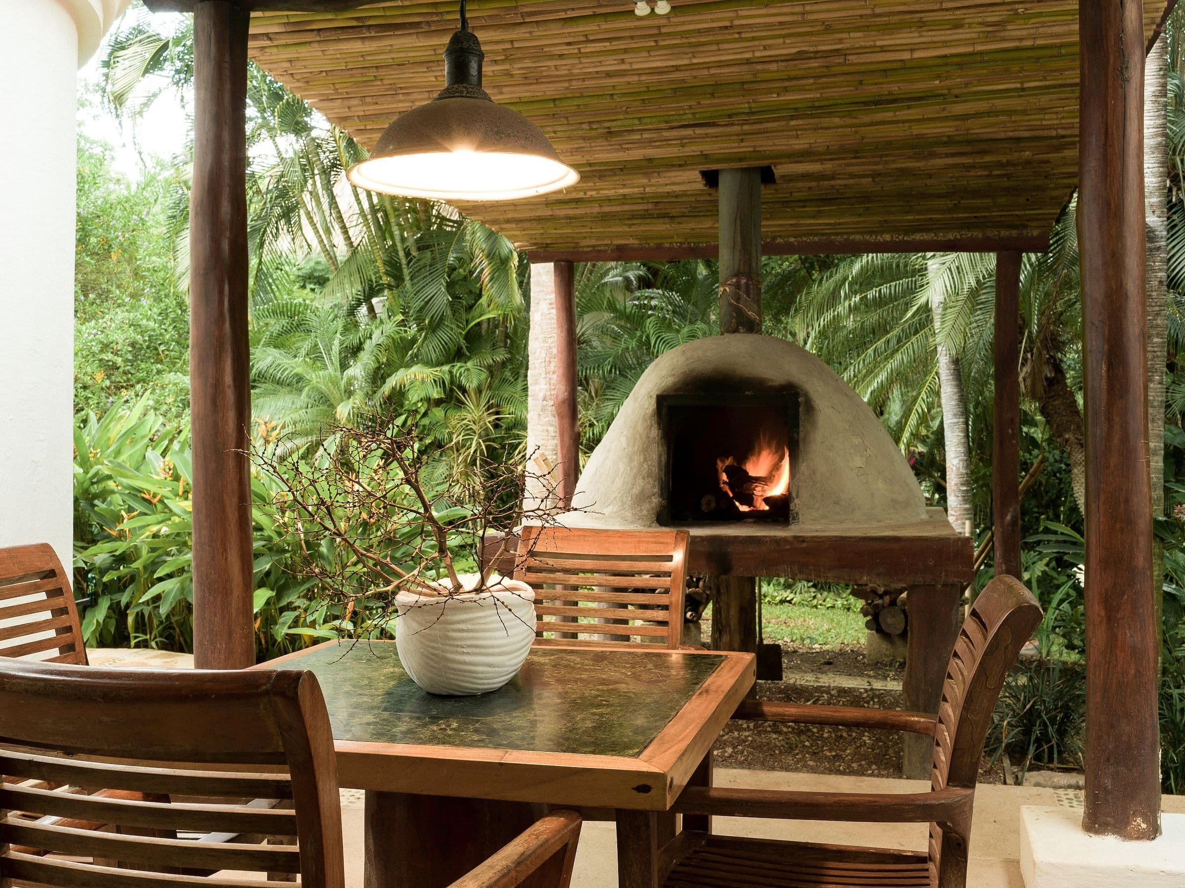 Each bedroom suite includes a private bathroom designed in a traditional hacienda style. Master suites feature both indoor and outdoor showers, offering a unique open air bathing experience surrounded by tropical greenery.