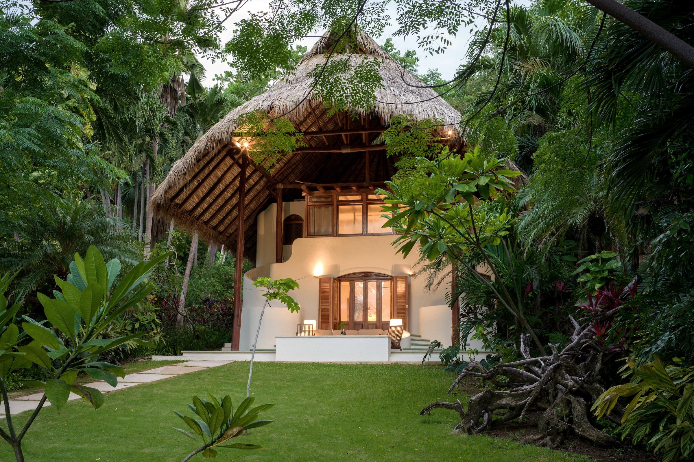 Velas Peninsula Estate is designed for relaxed indoor outdoor living with multiple open air lounge spaces overlooking tropical gardens and the Pacific Ocean. Each guest rancho features a shaded terrace lounge facing the beach, creating peaceful spaces to relax, read, or gather for sunset drinks while surrounded by the sounds of nature.