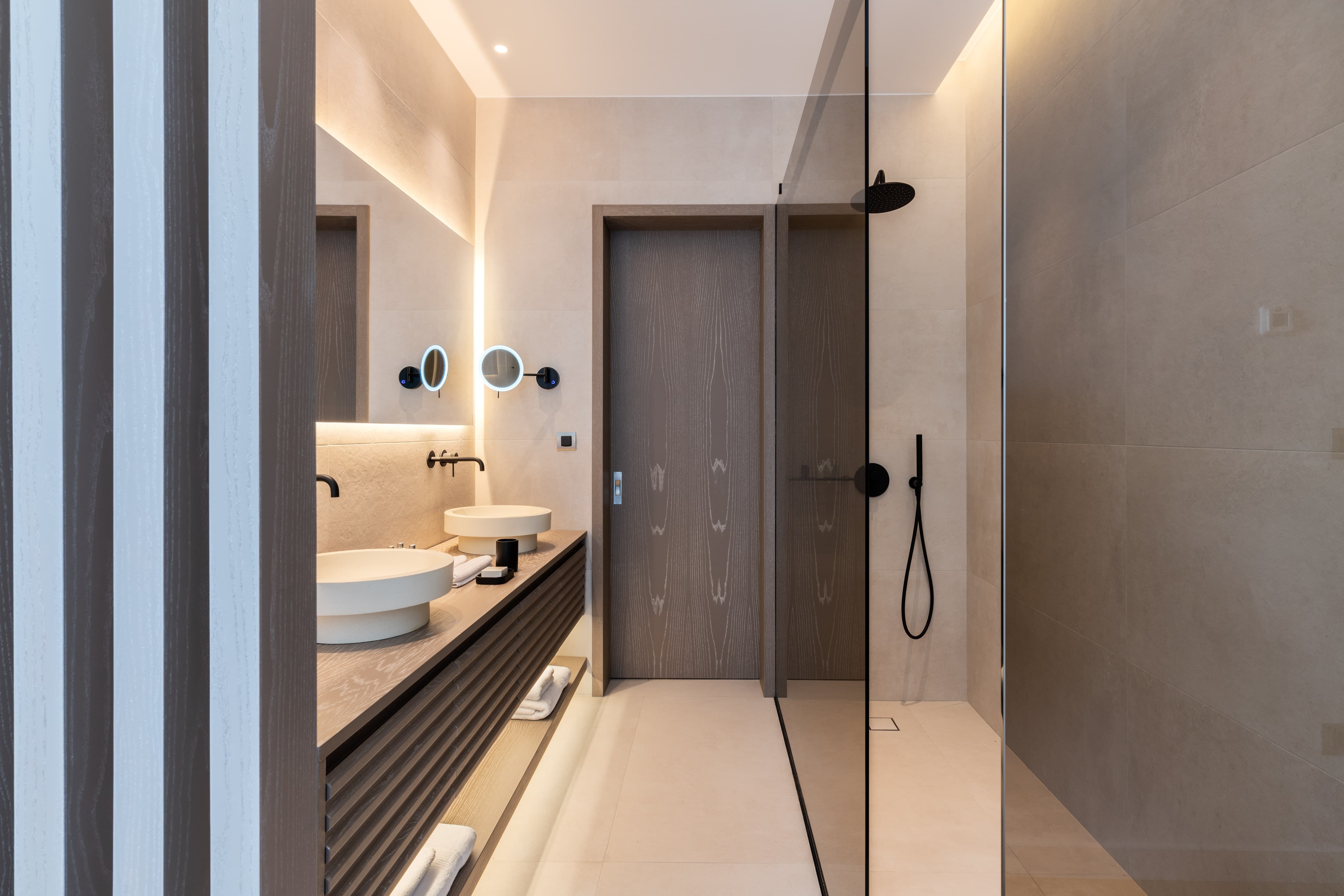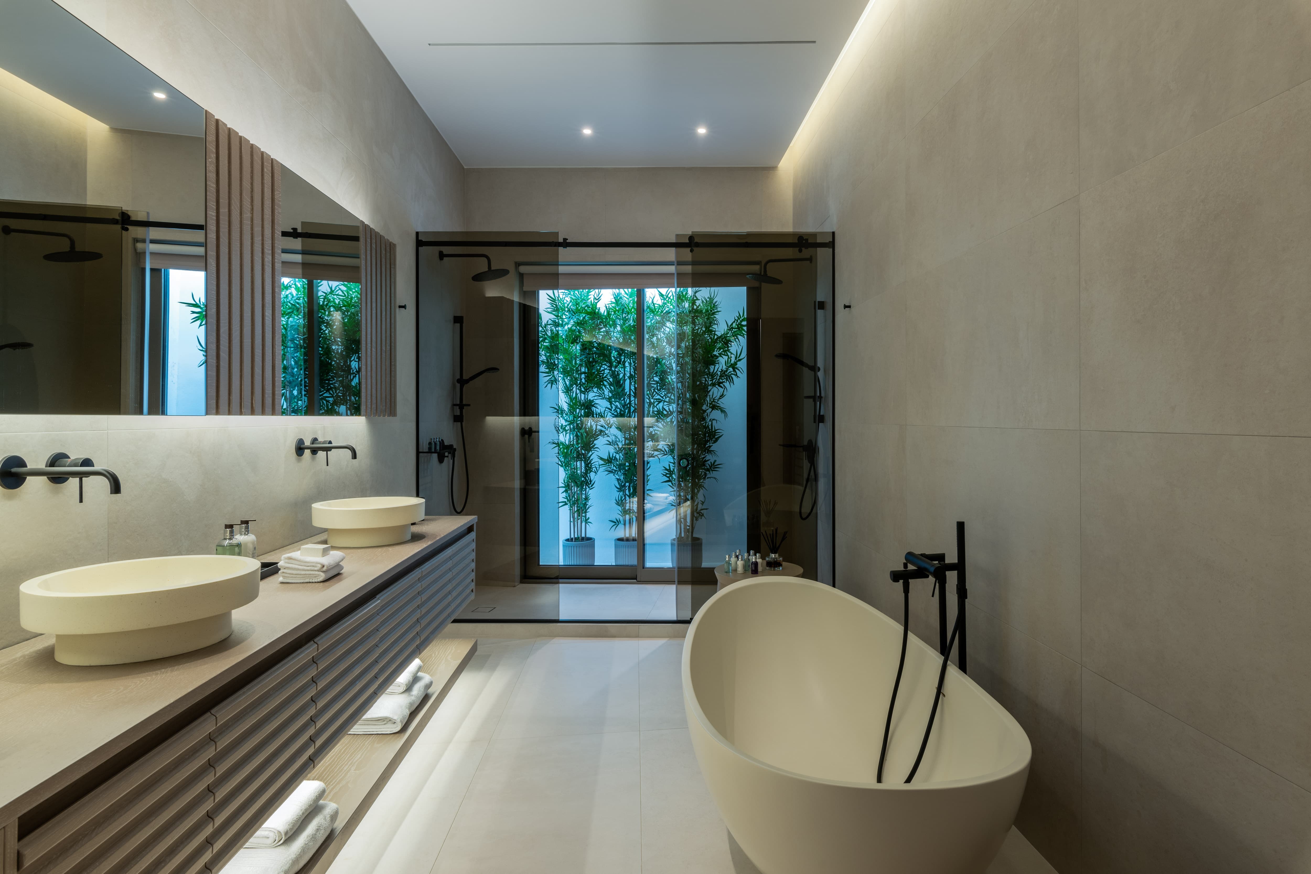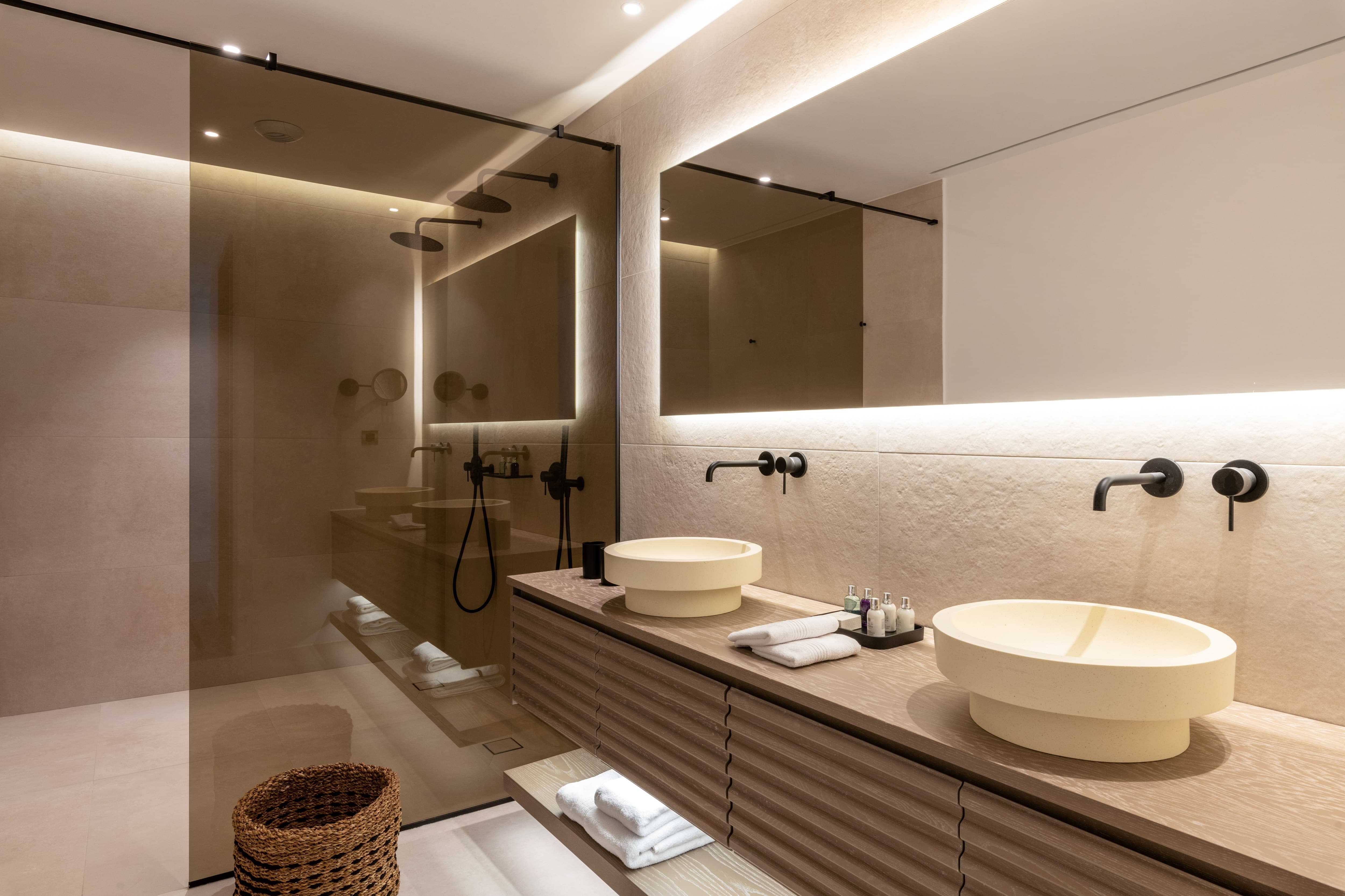 Nine contemporary bathrooms finished to a high standard, featuring walk-in showers, premium fittings, and a clean, minimalist design. Each space is thoughtfully designed to reflect the calm, understated aesthetic of the villa.