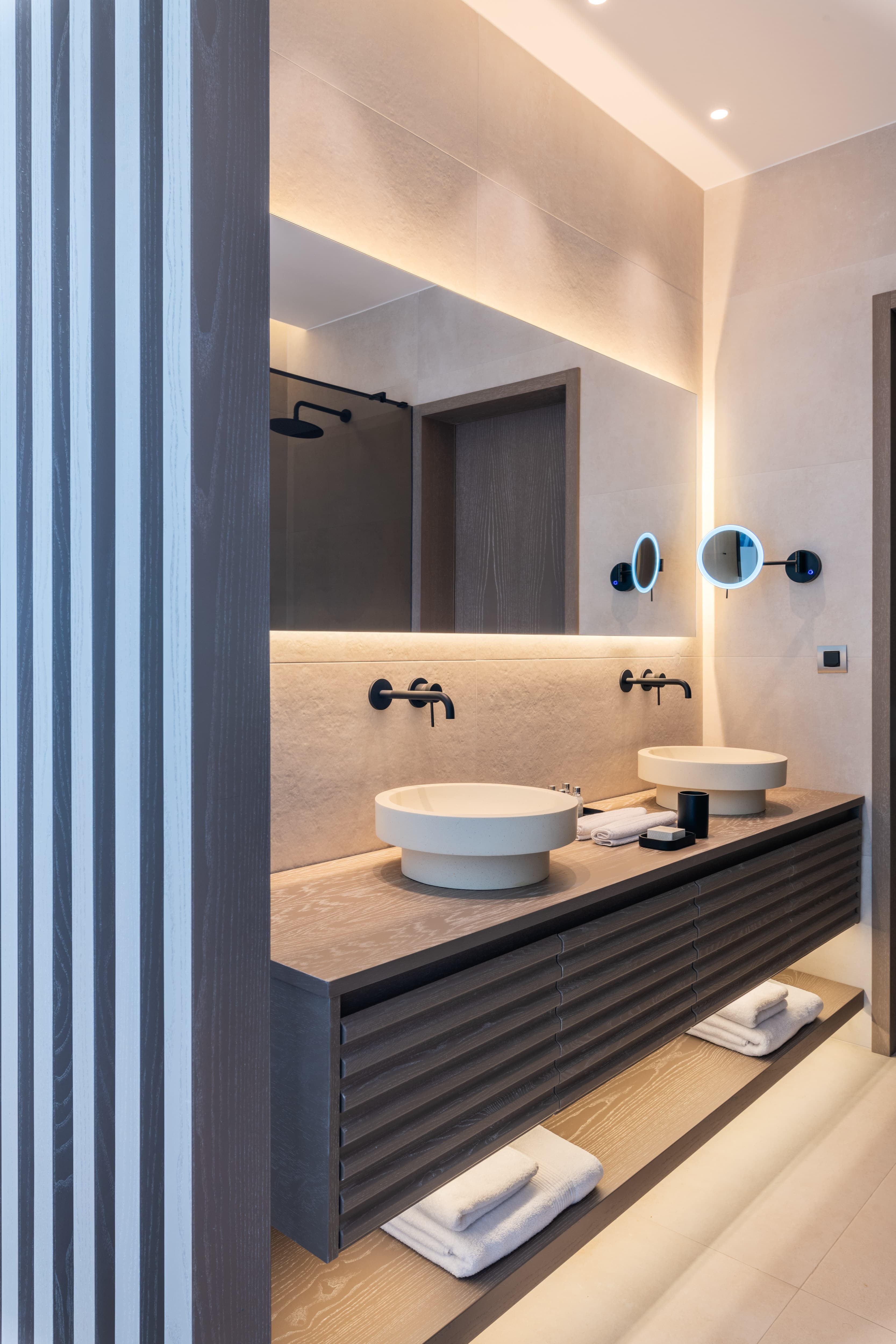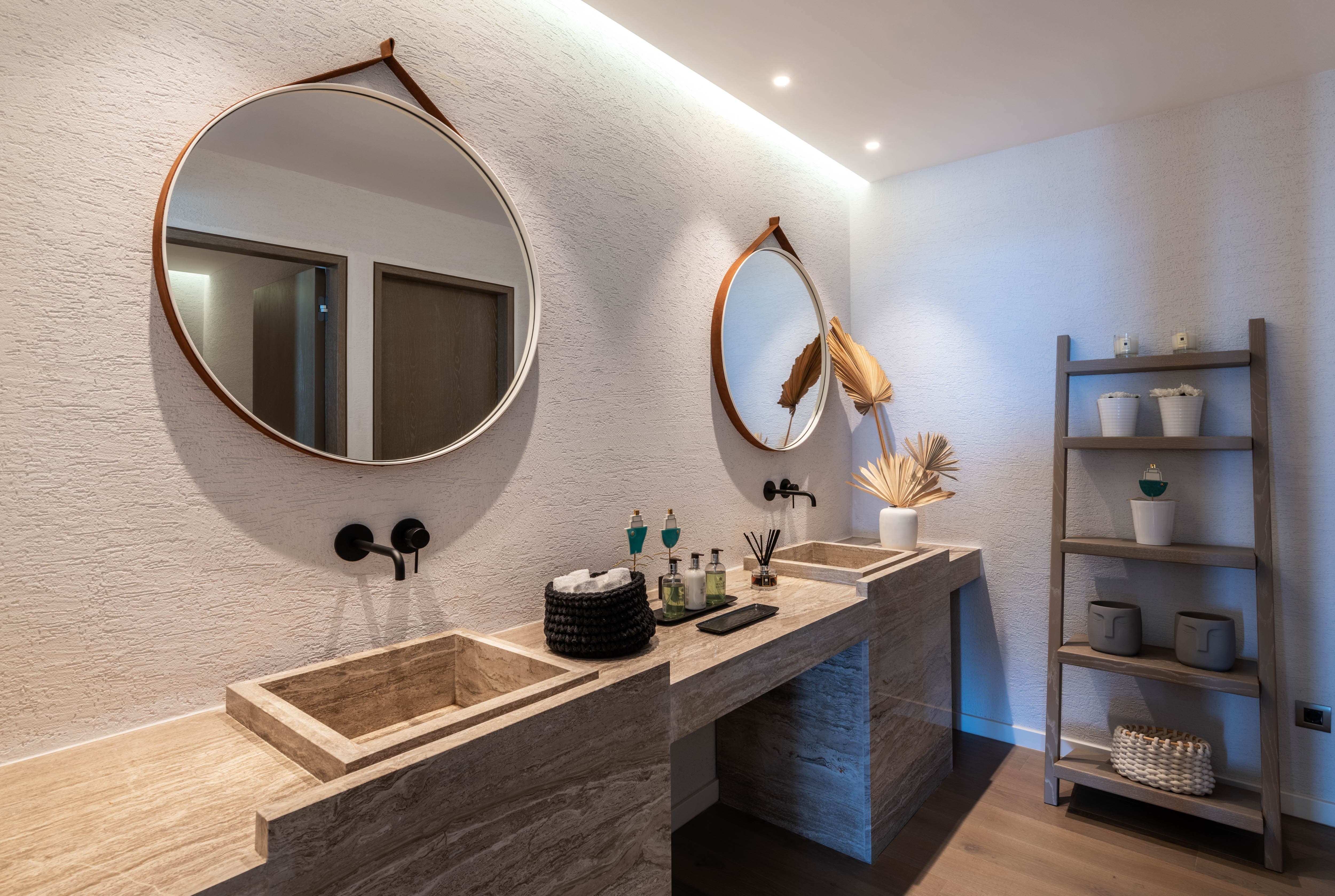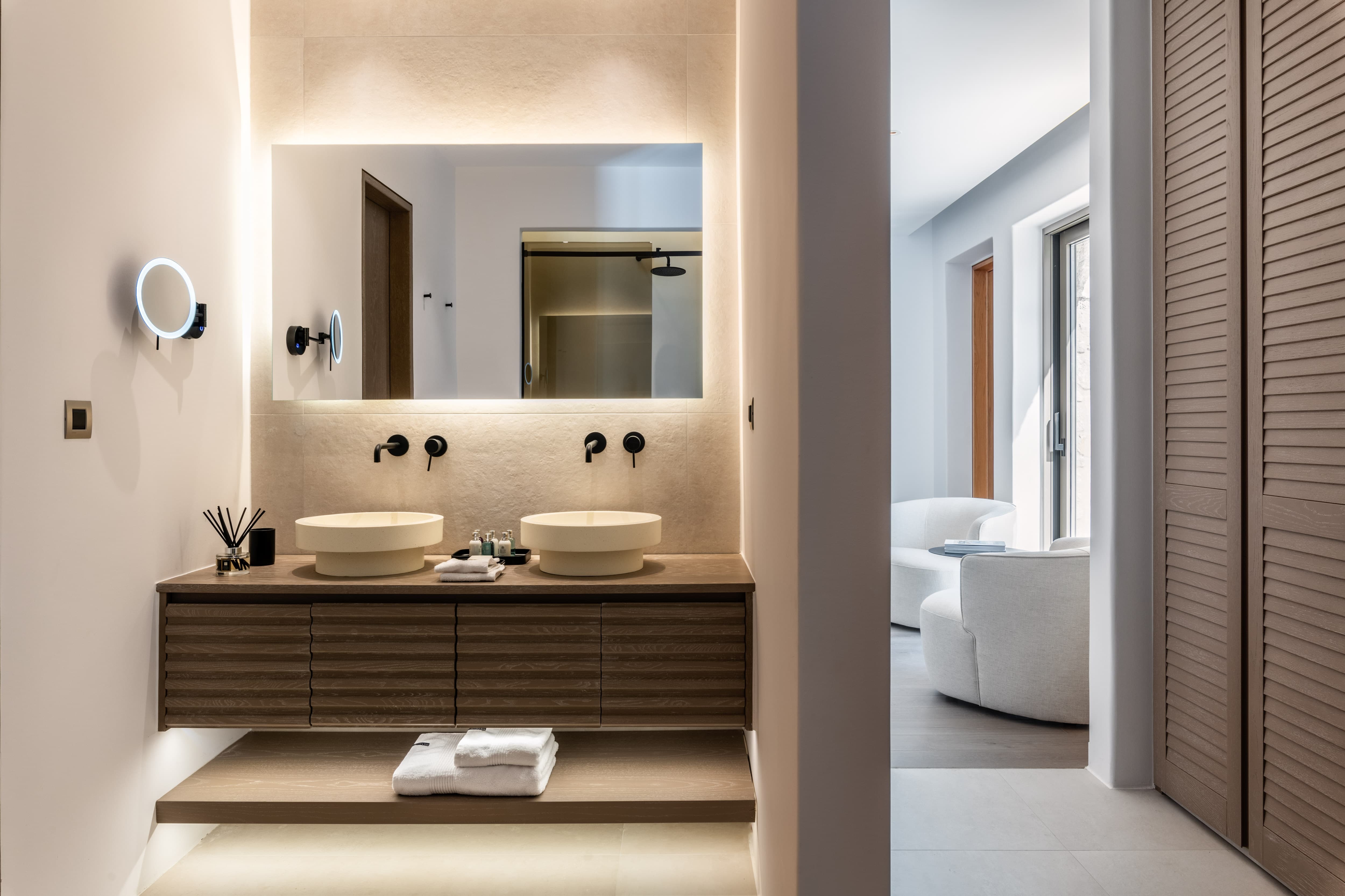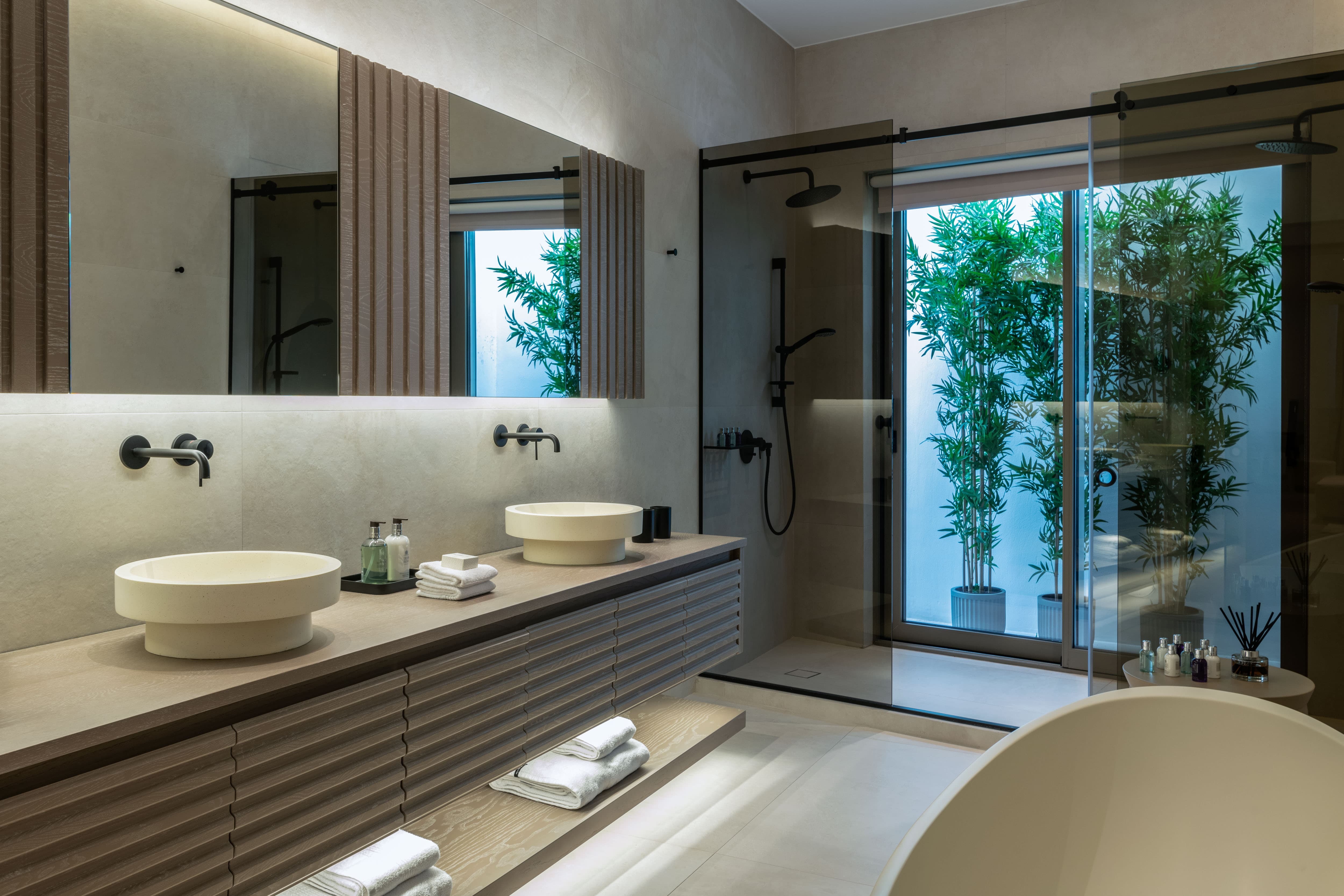 Nine contemporary bathrooms finished to a high standard, featuring walk-in showers, premium fittings, and a clean, minimalist design. Each space is thoughtfully designed to reflect the calm, understated aesthetic of the villa.