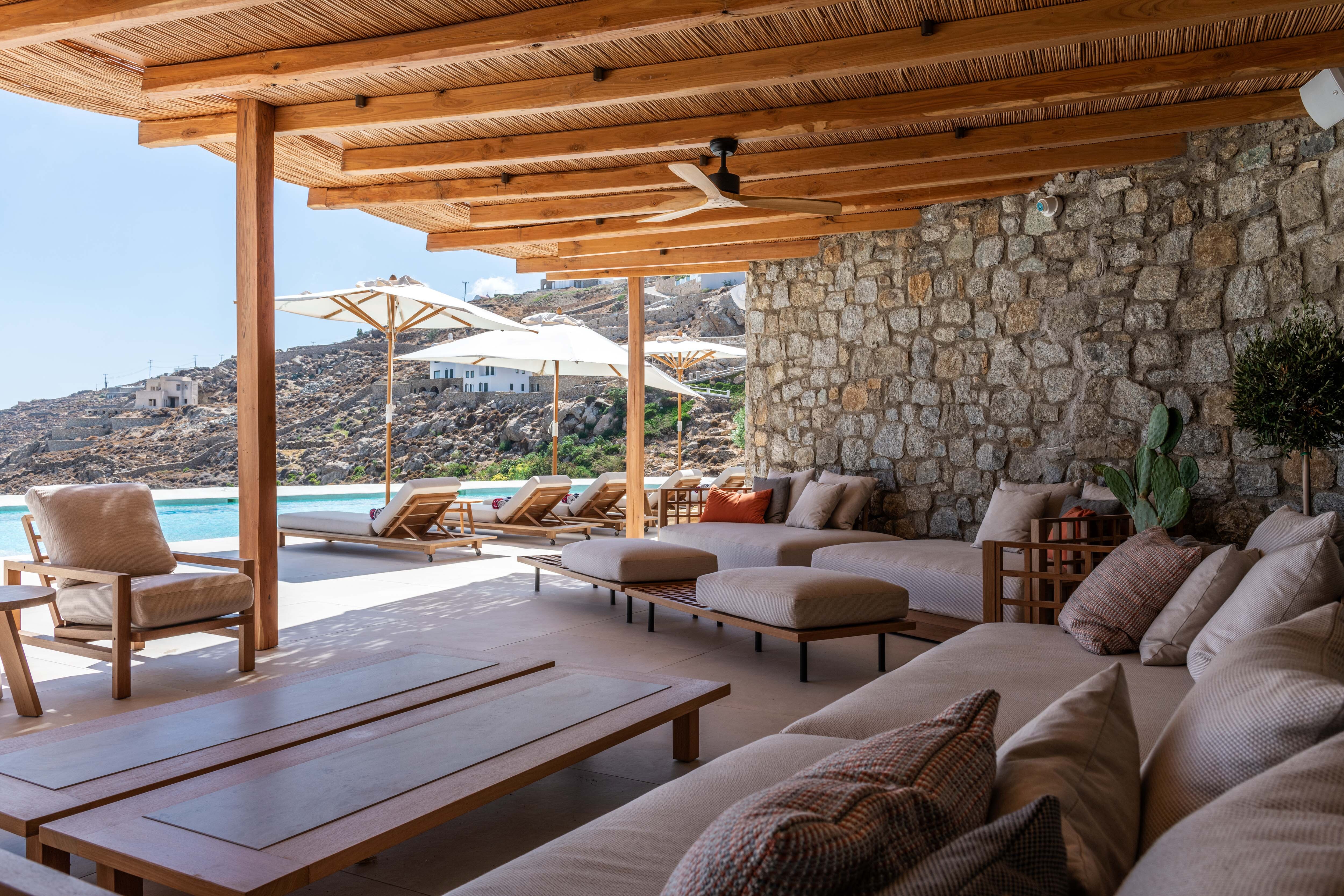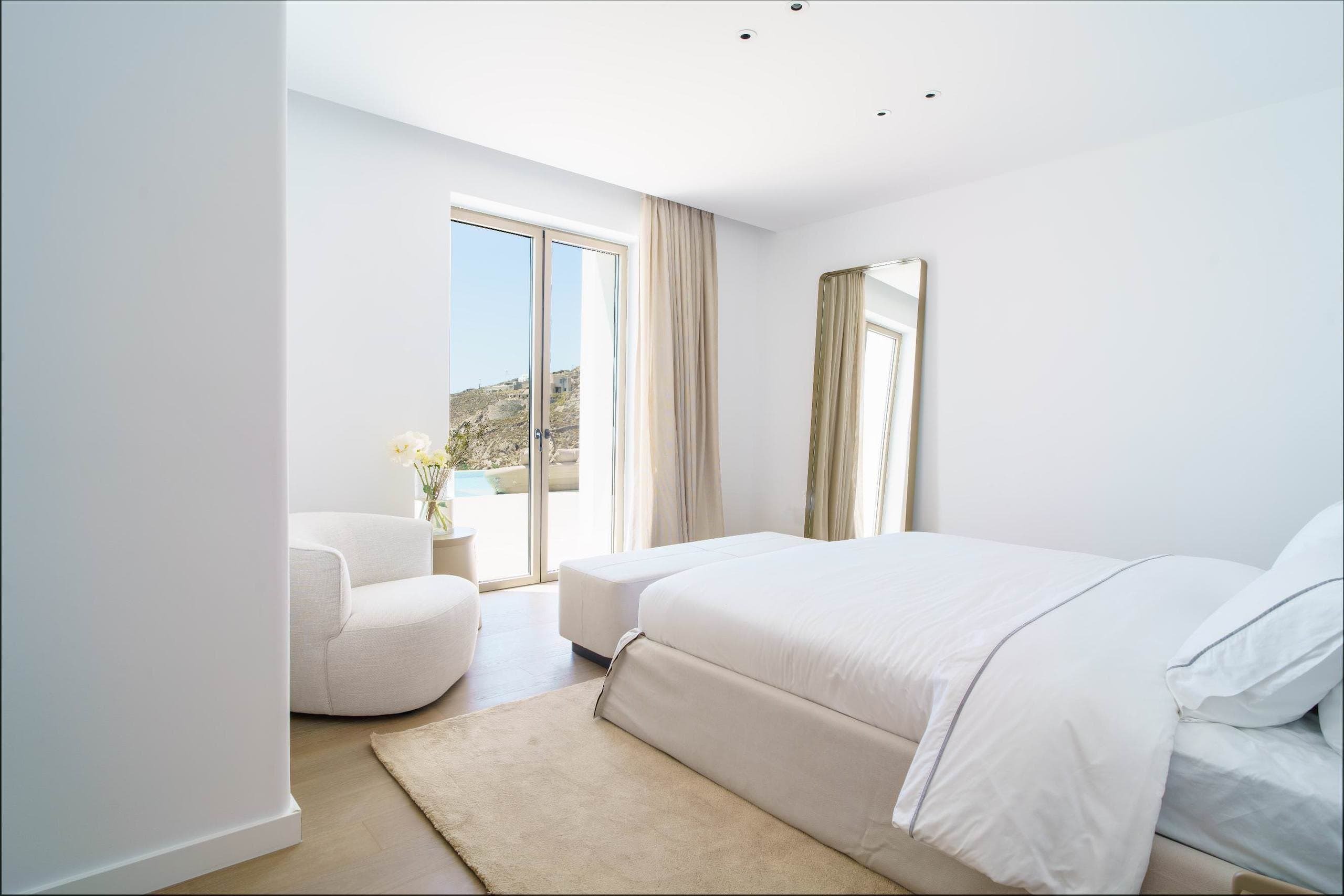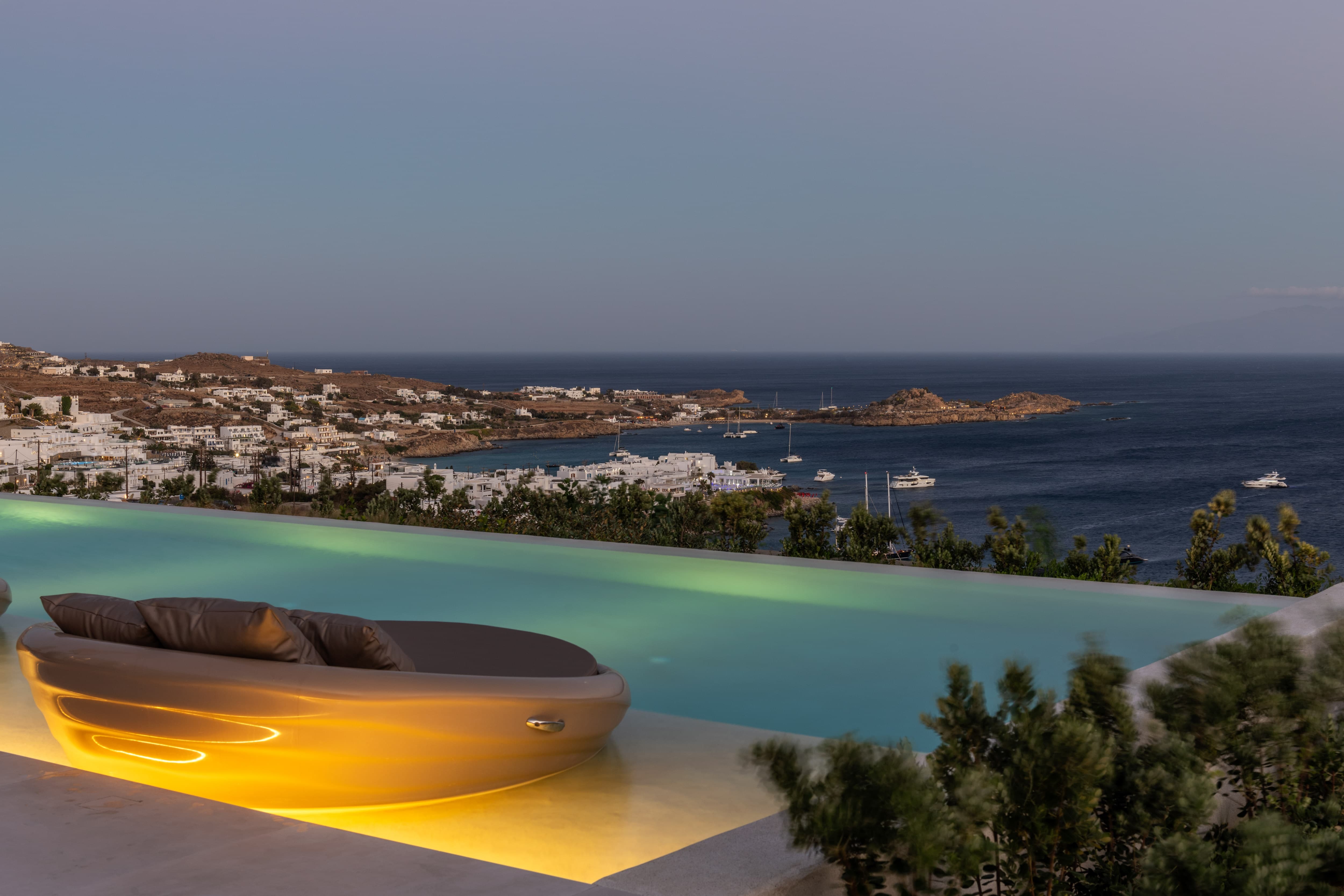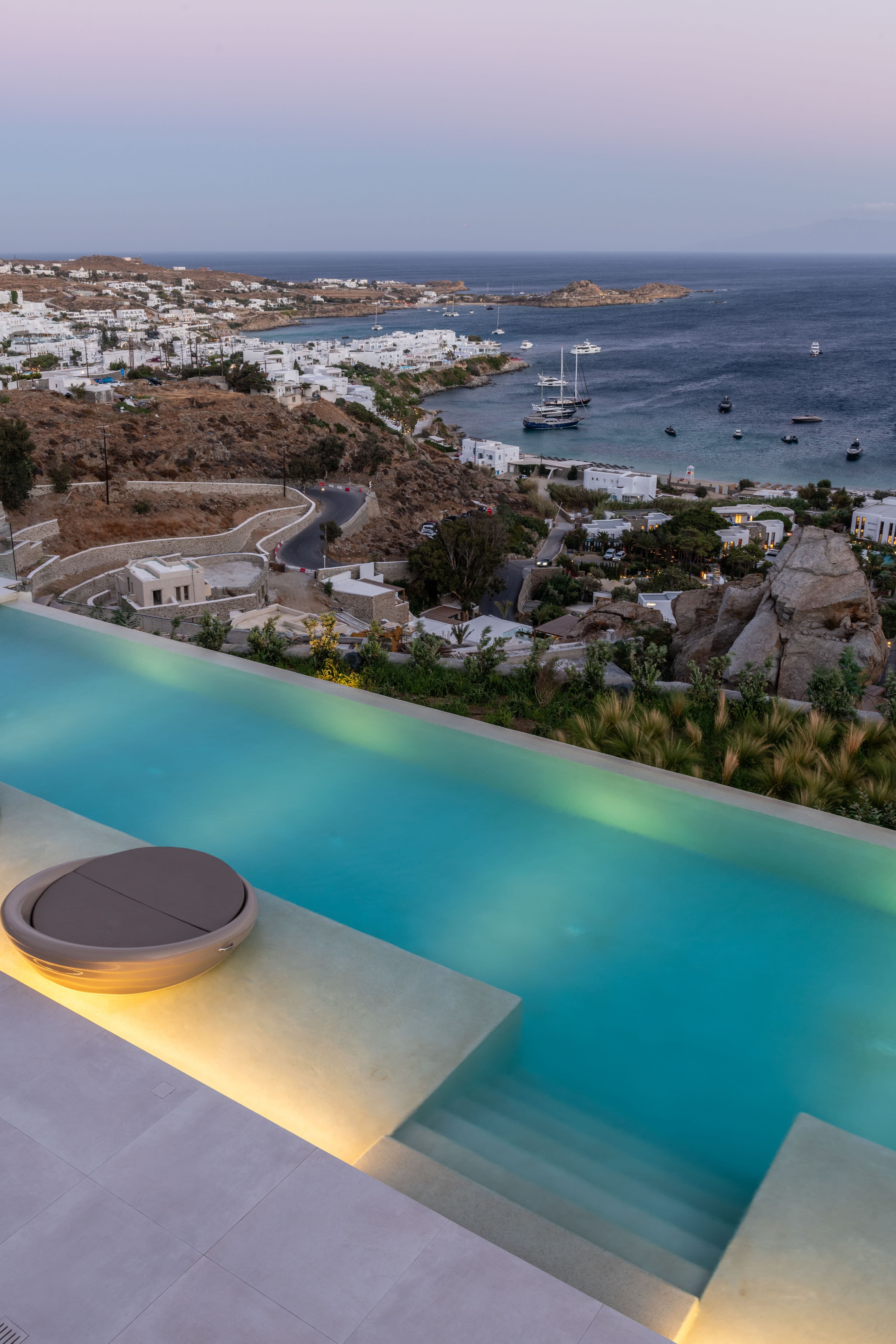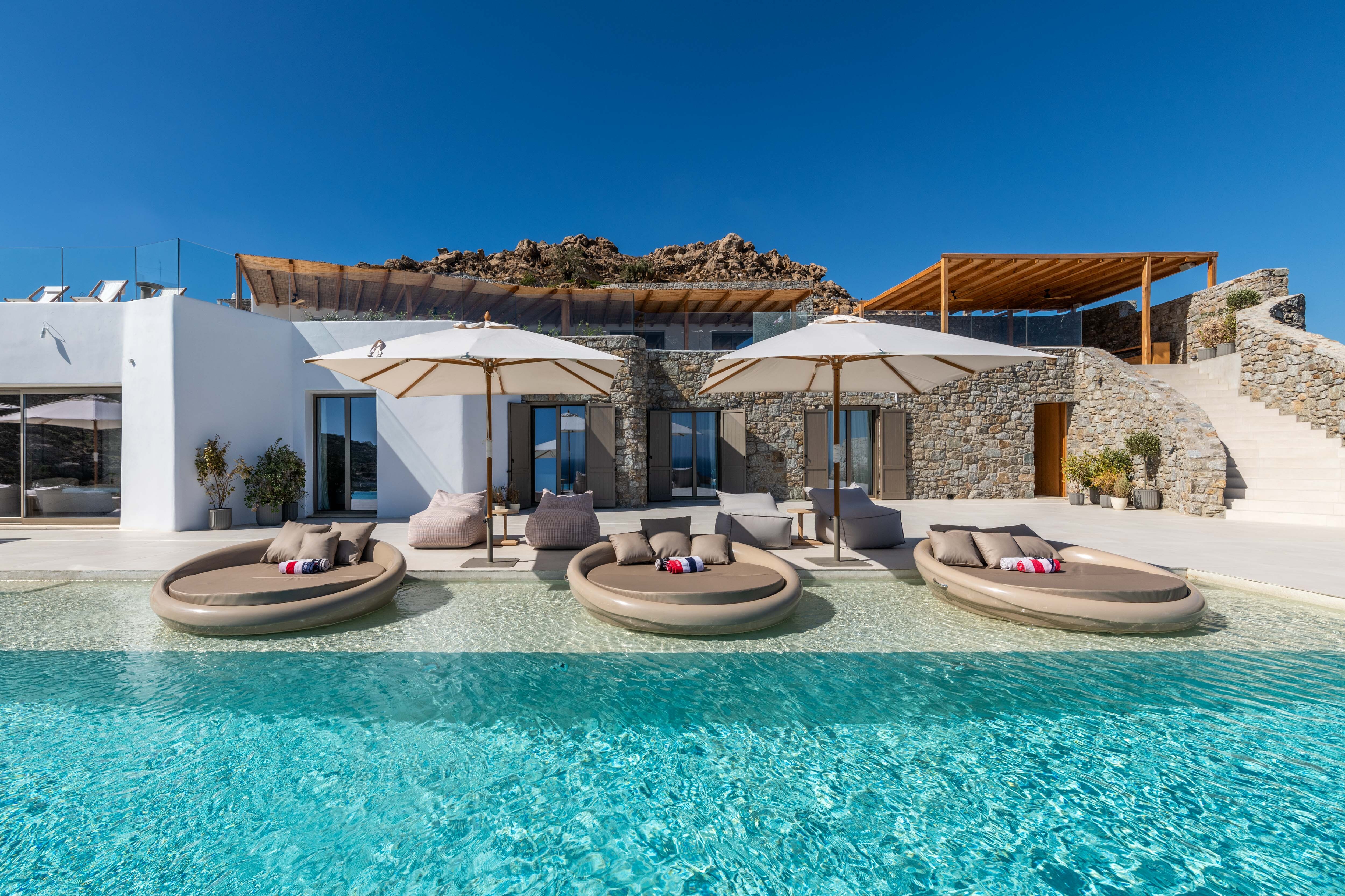The villa is positioned above Psarou Bay, one of Mykonos’ most exclusive and sought-after areas.