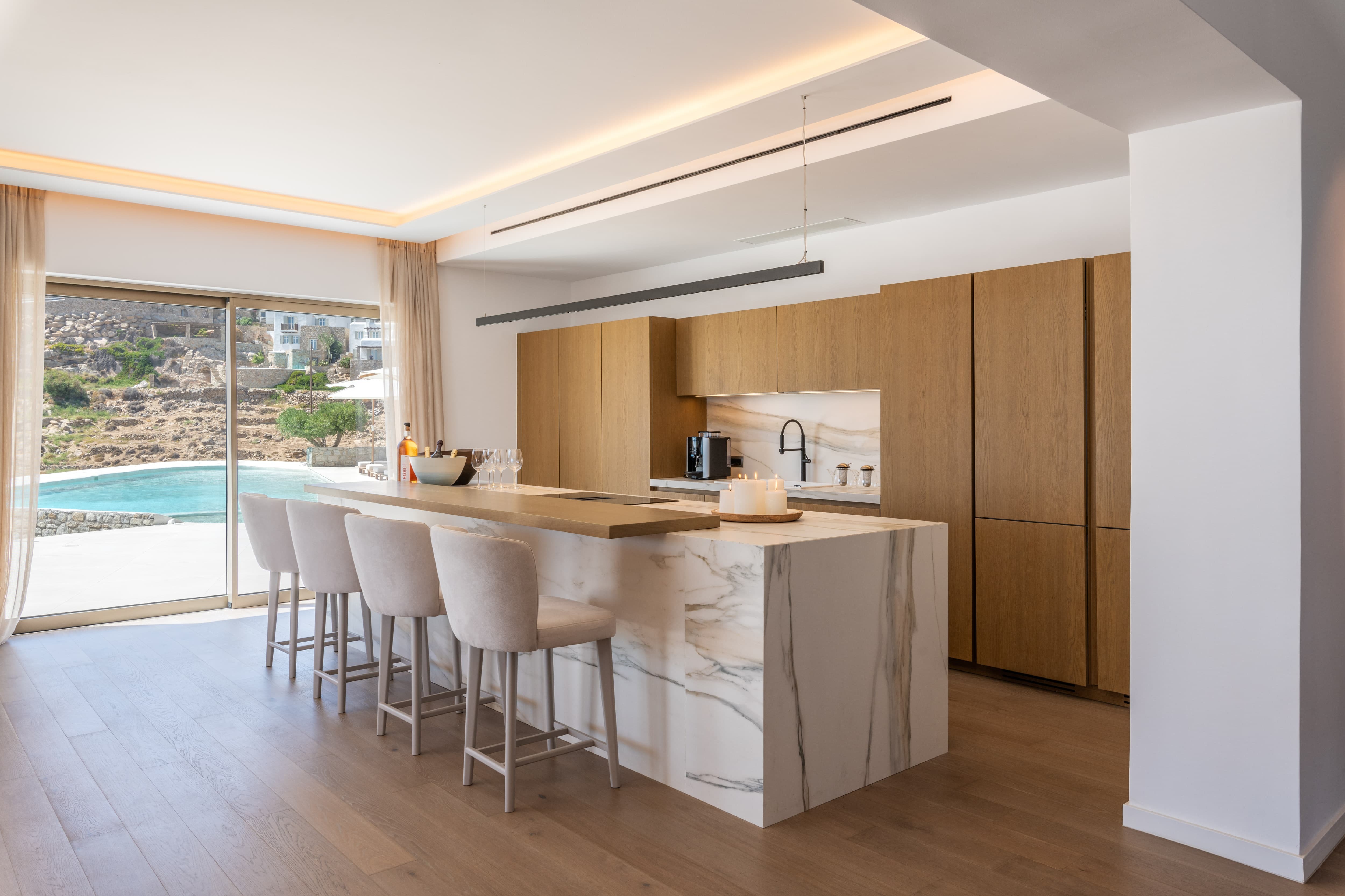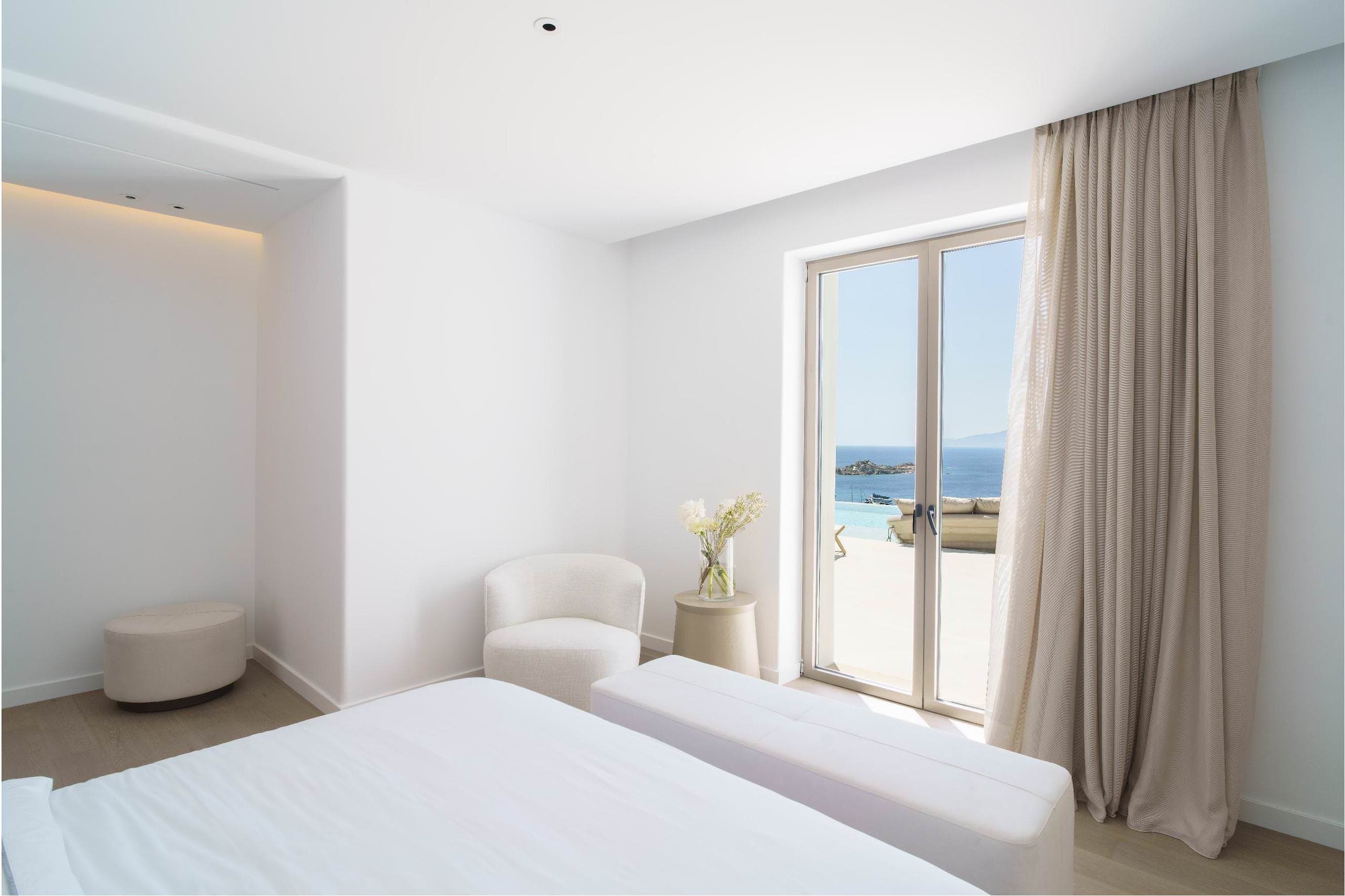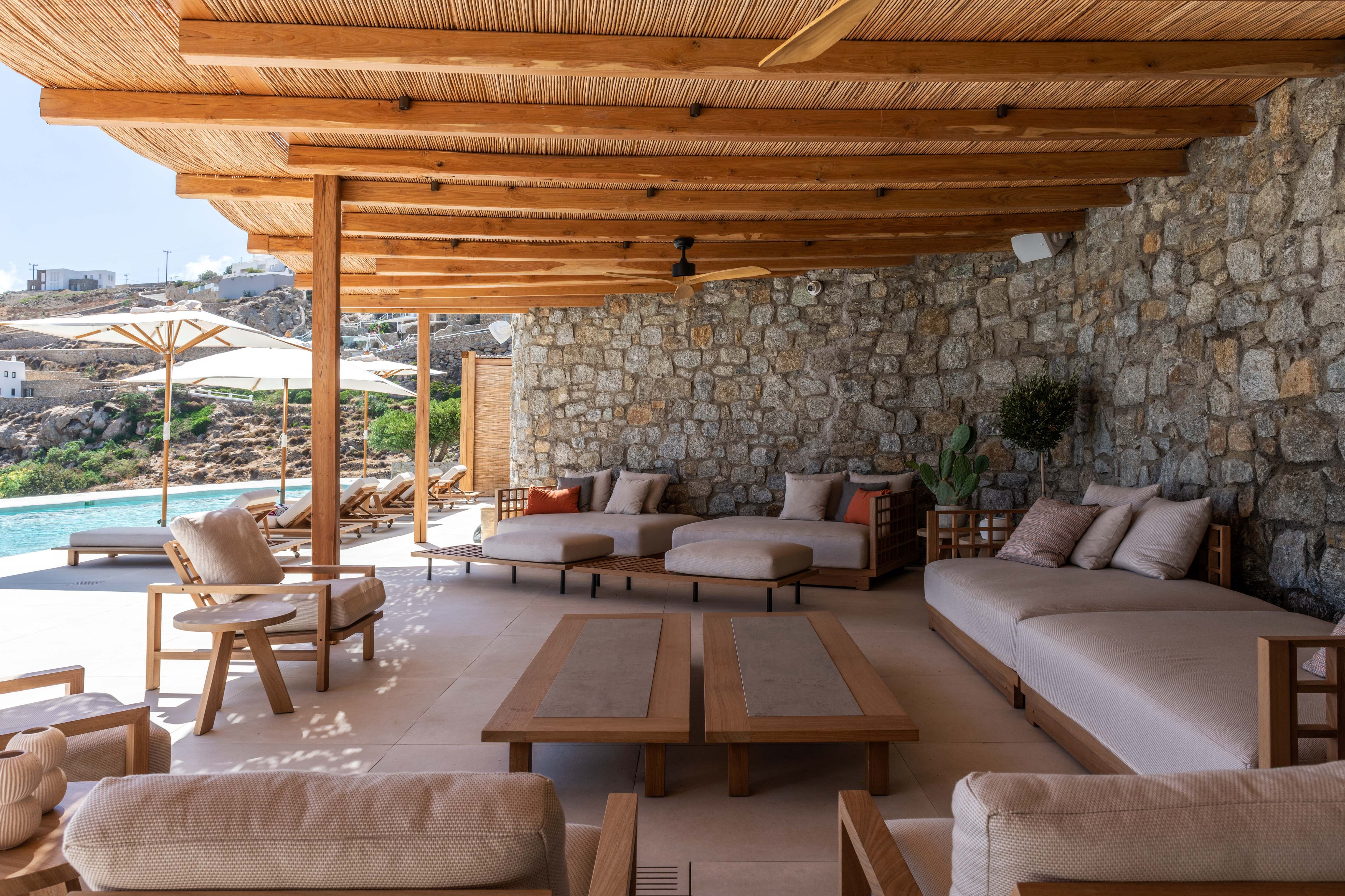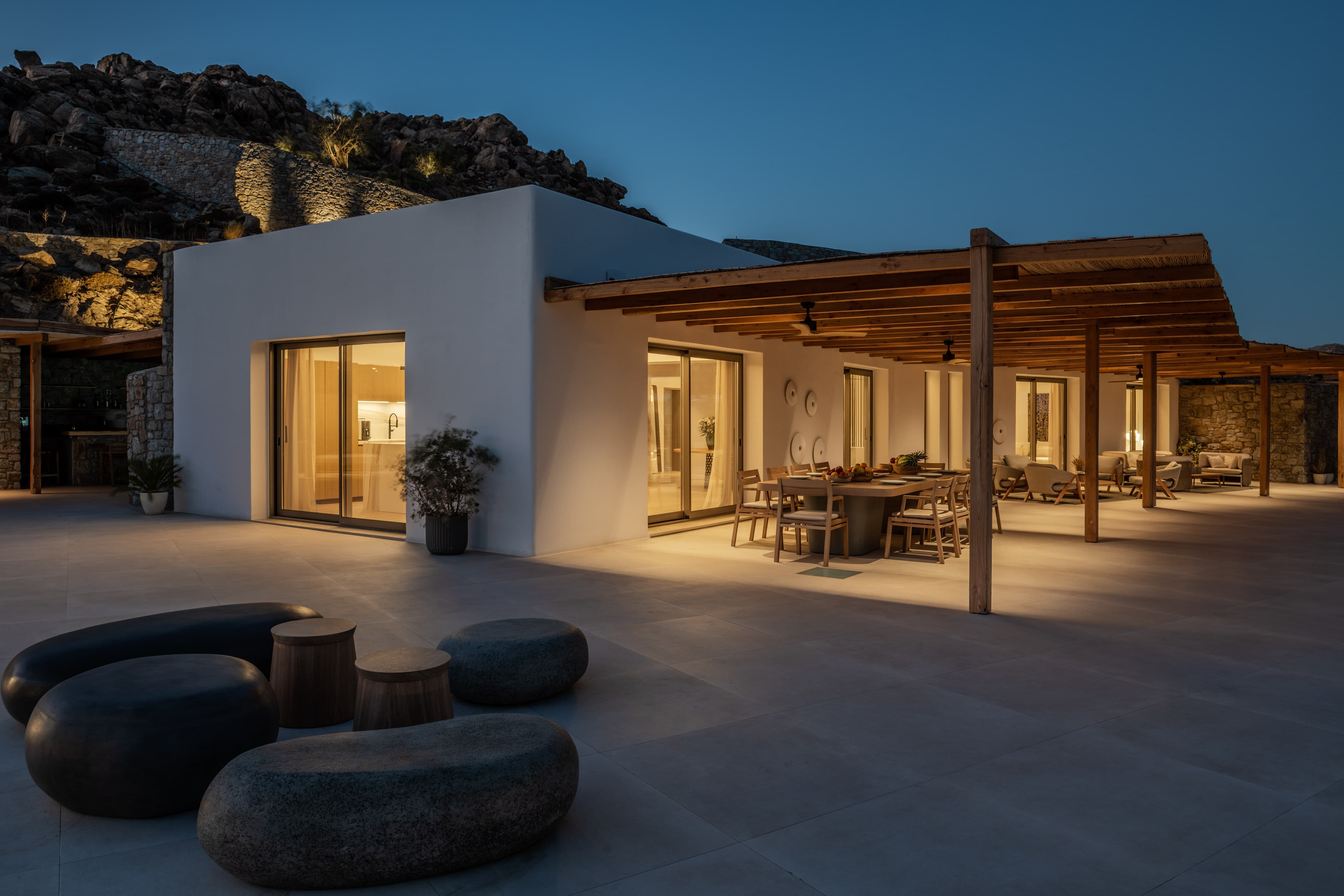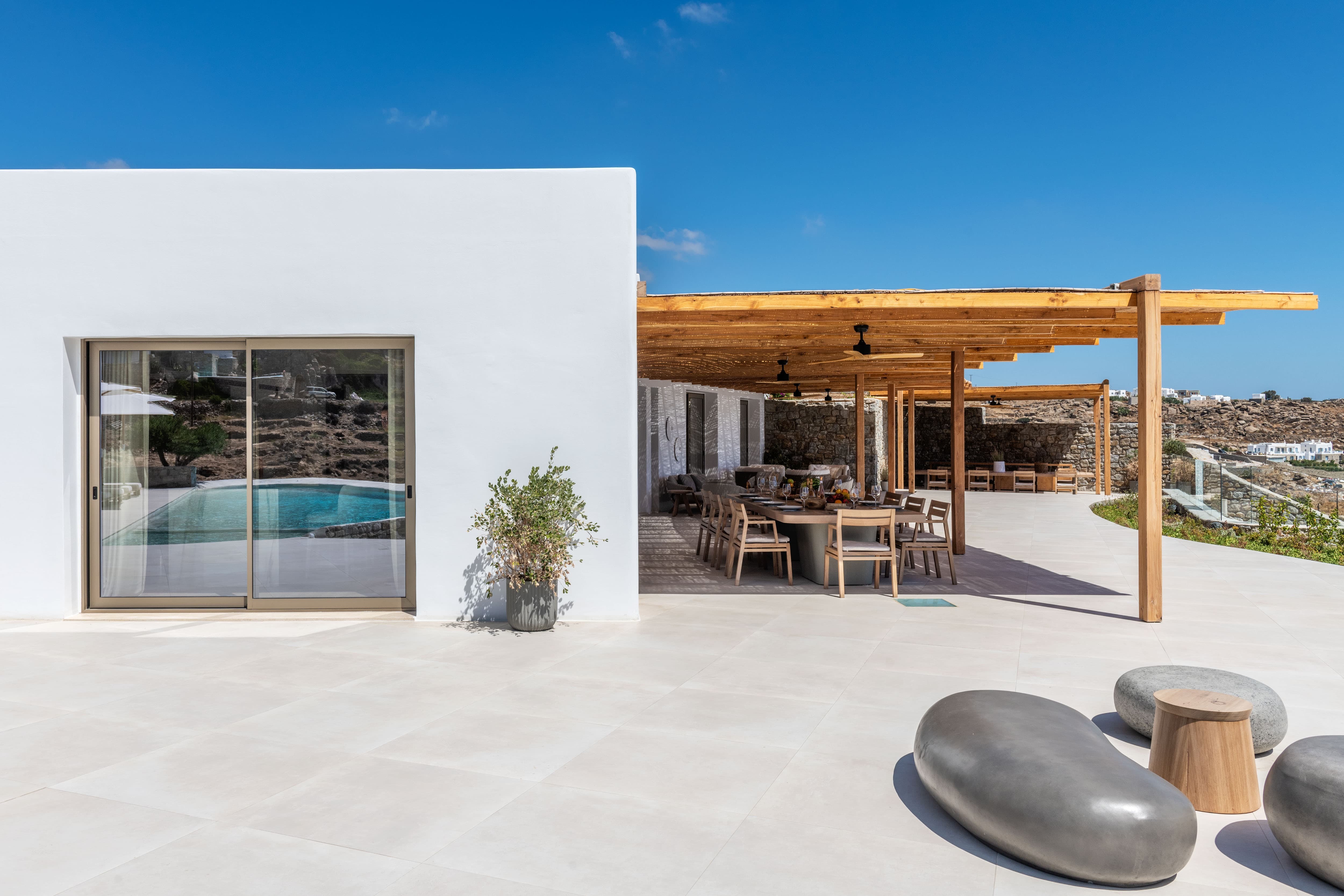 The villa is positioned above Psarou Bay, one of Mykonos’ most exclusive and sought-after areas.