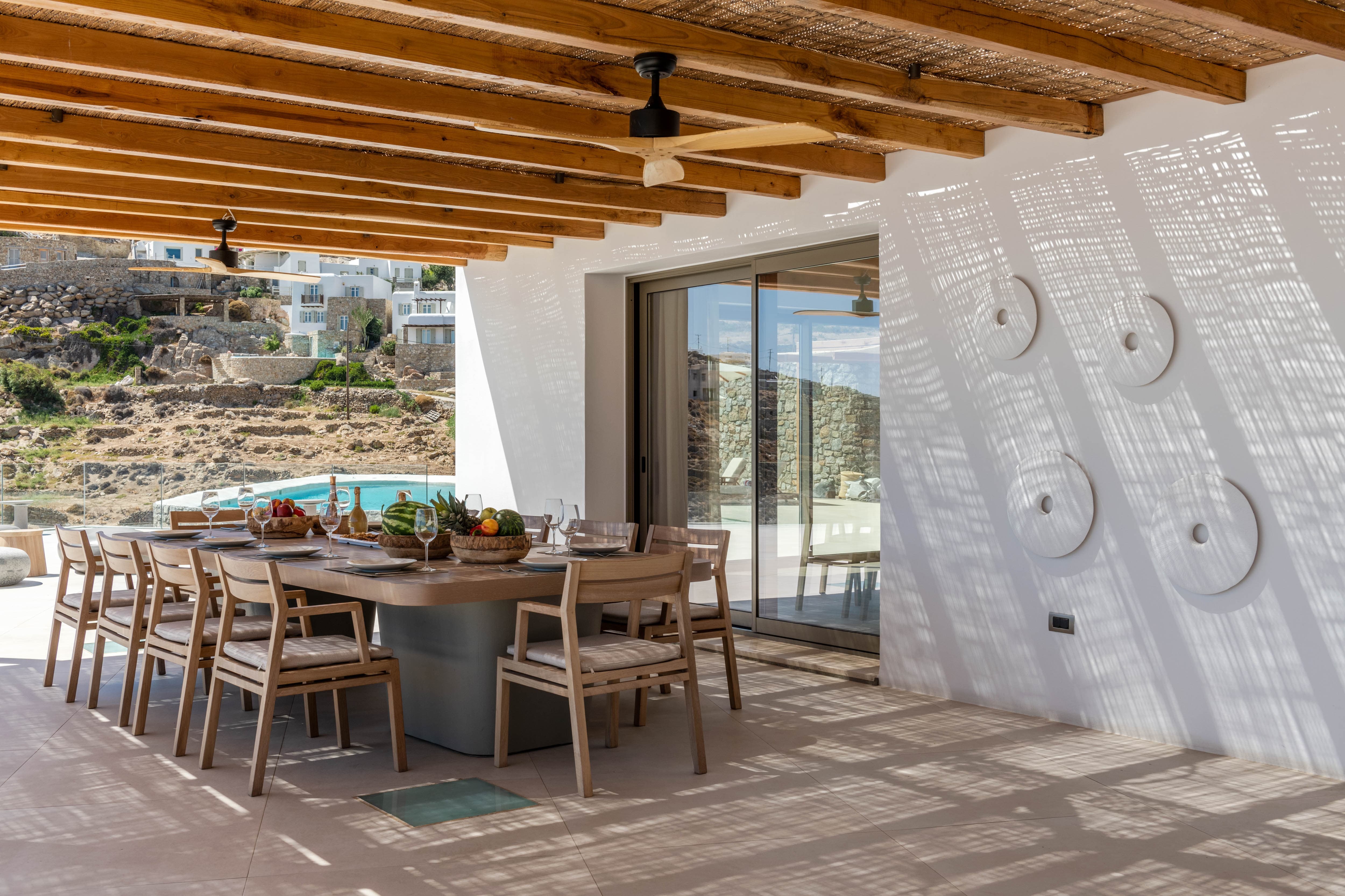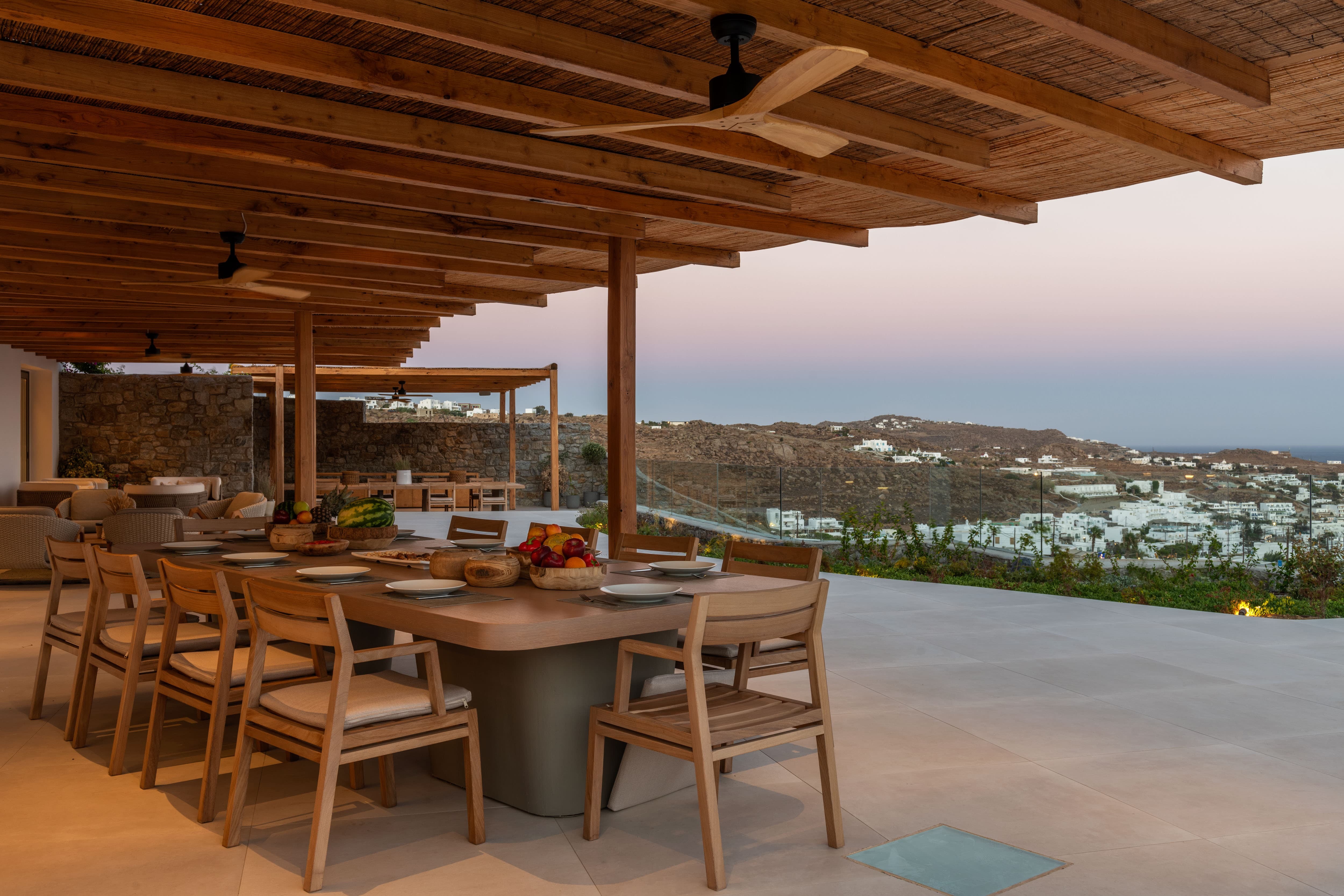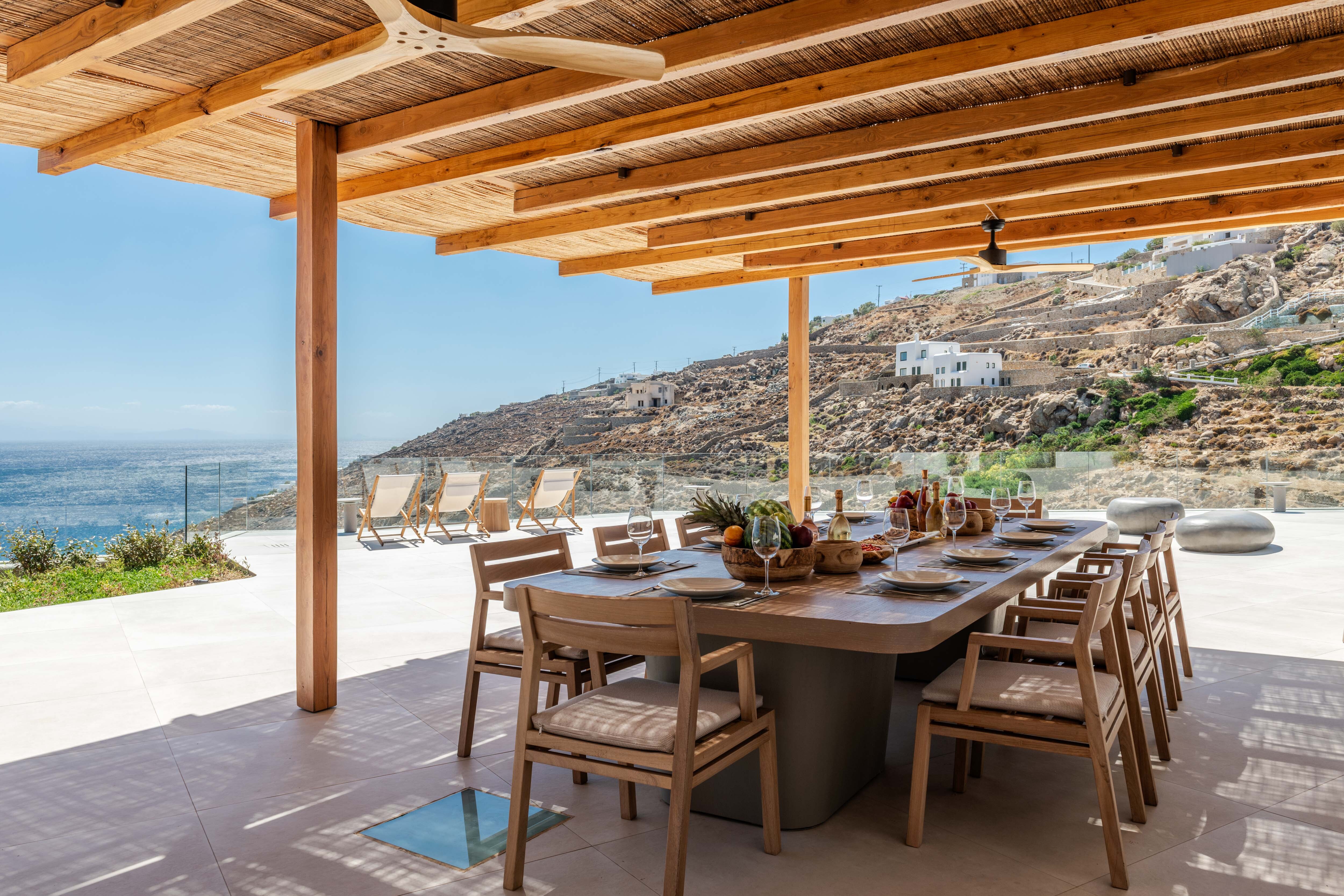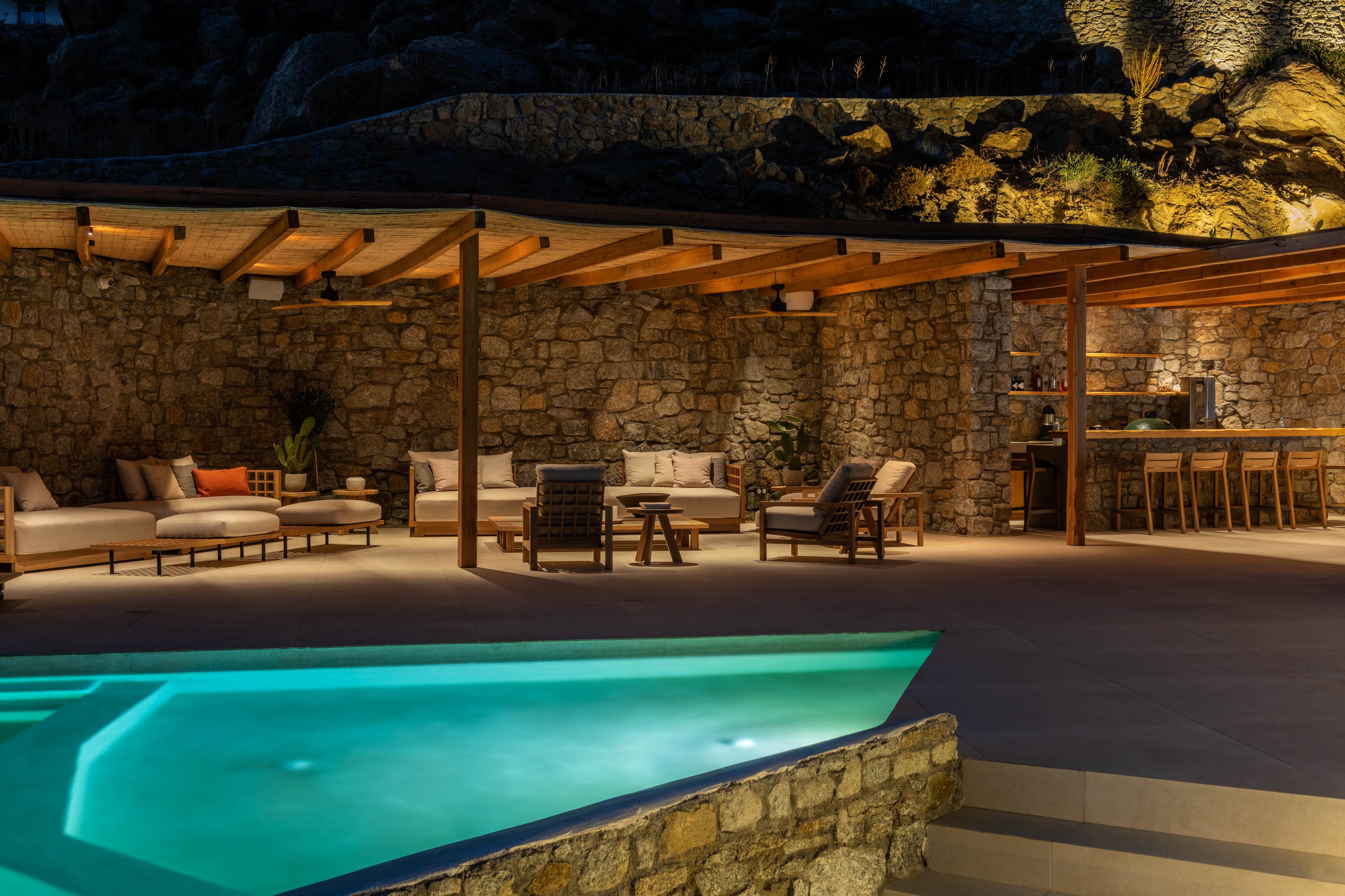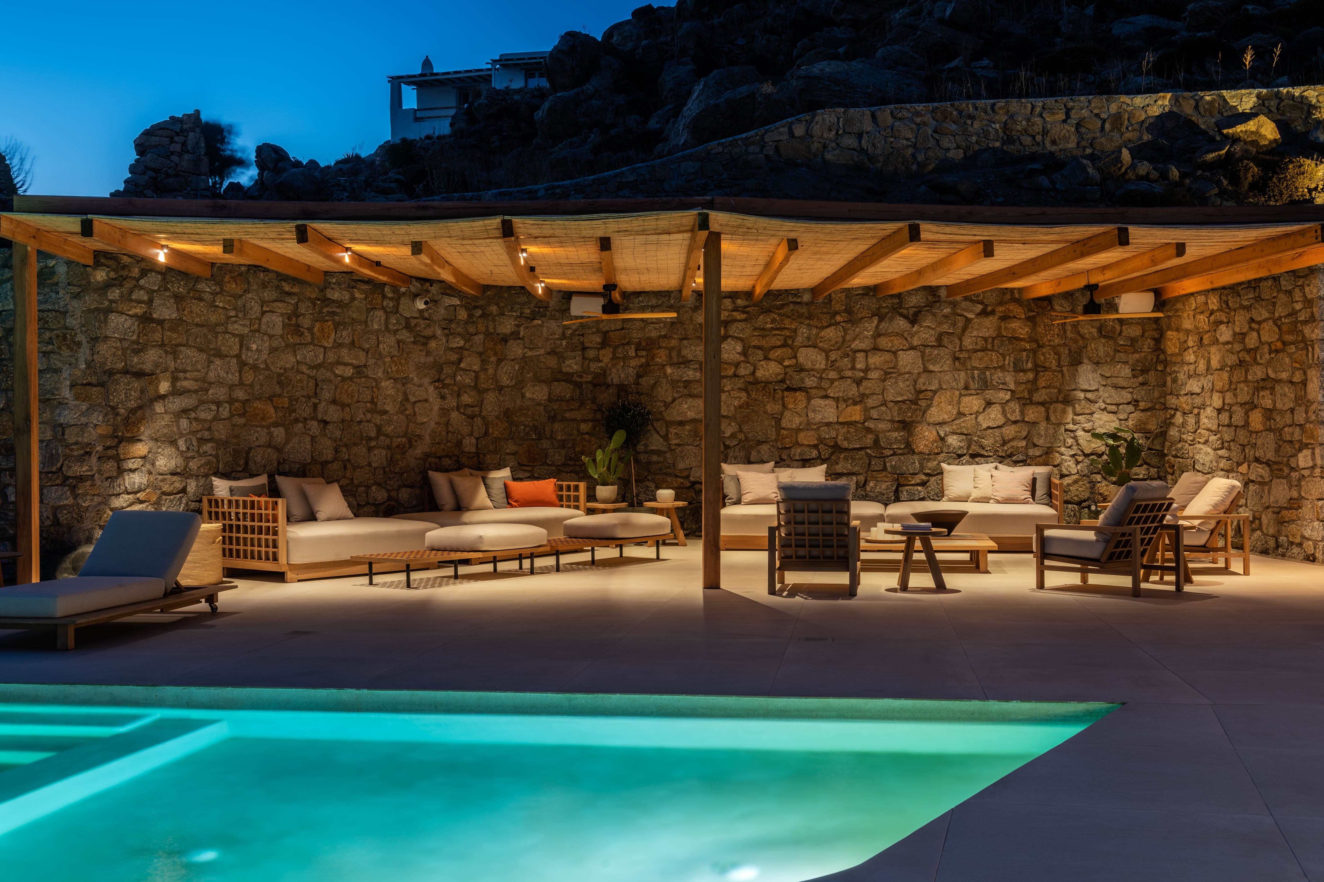 The villa is positioned above Psarou Bay, one of Mykonos’ most exclusive and sought-after areas.