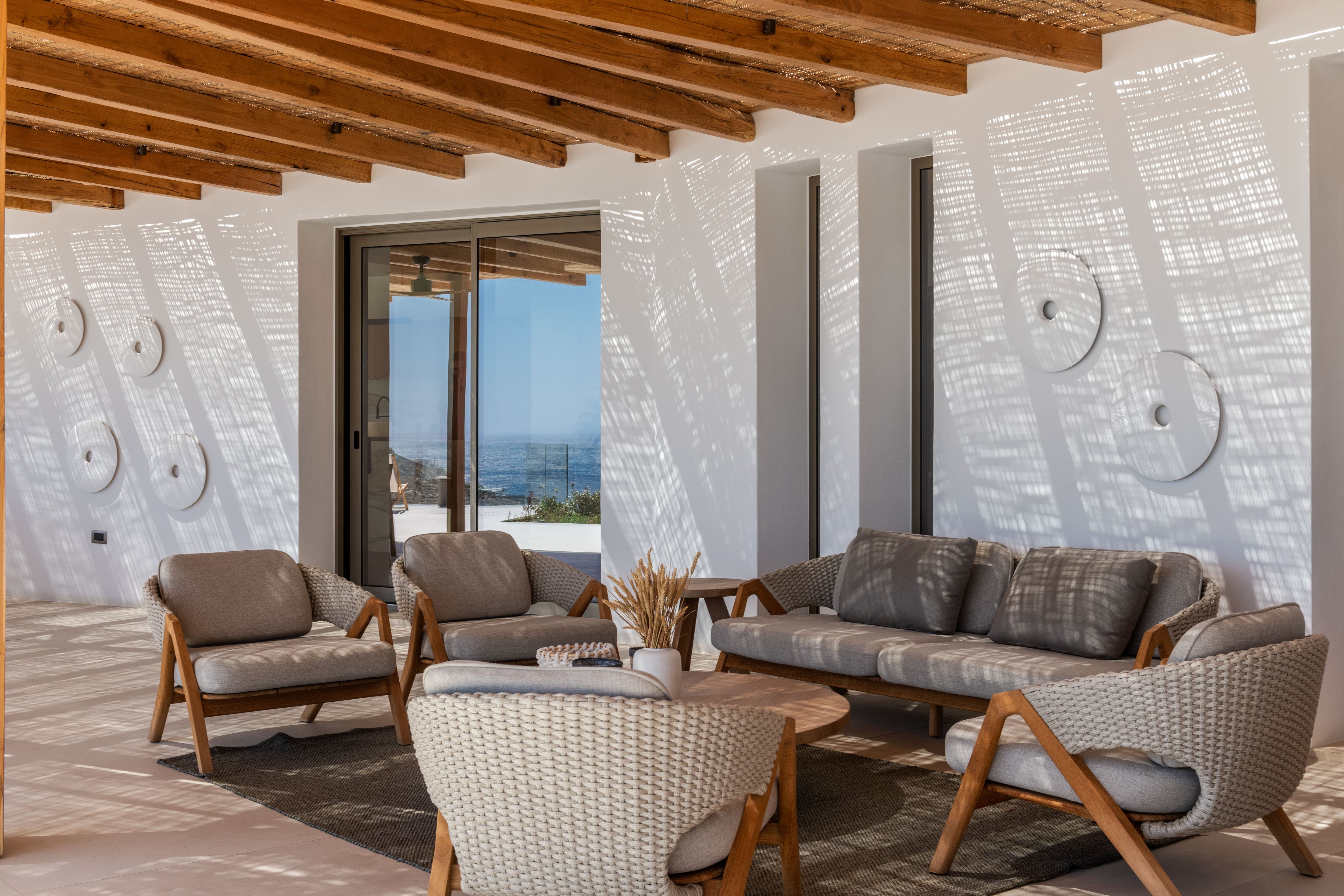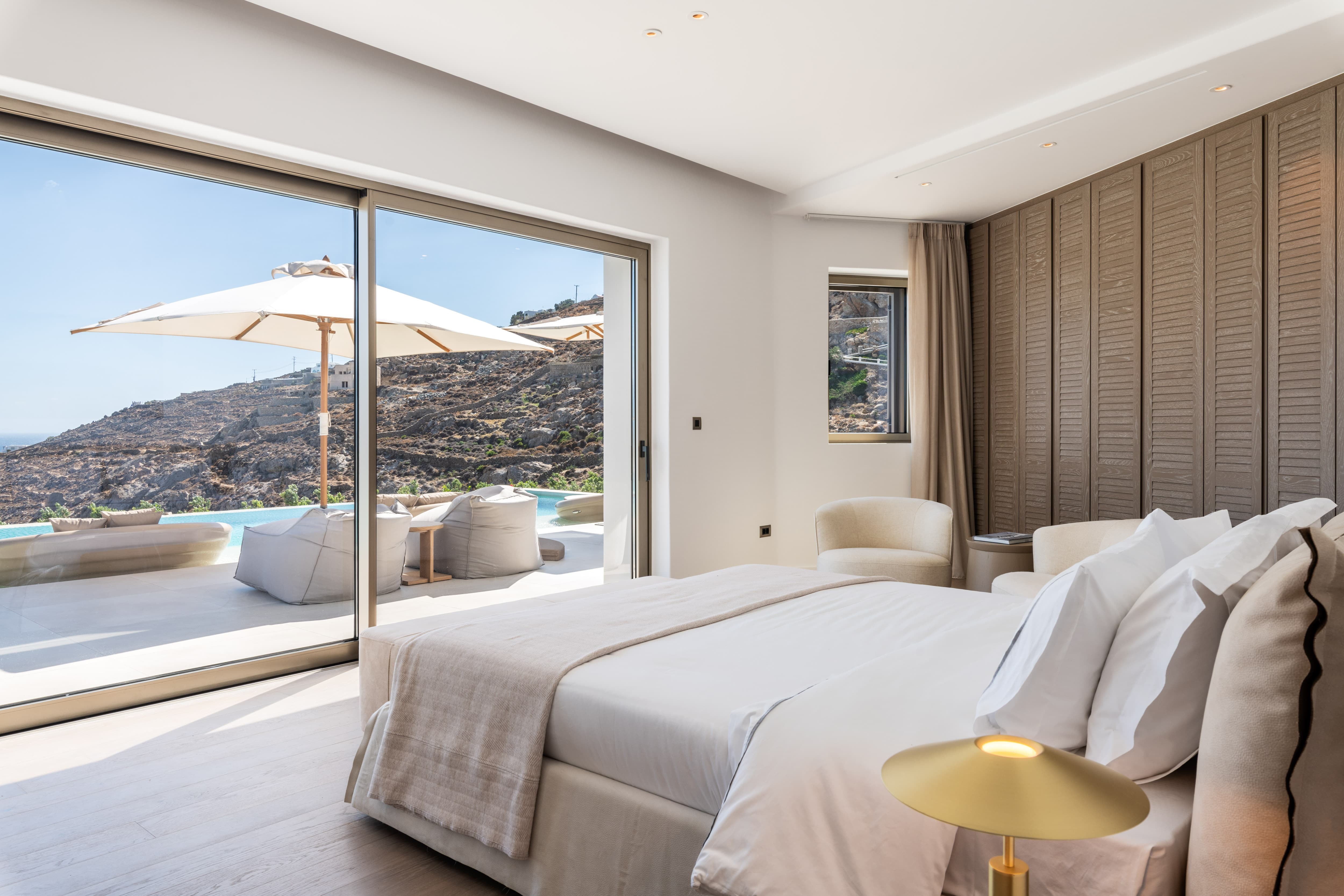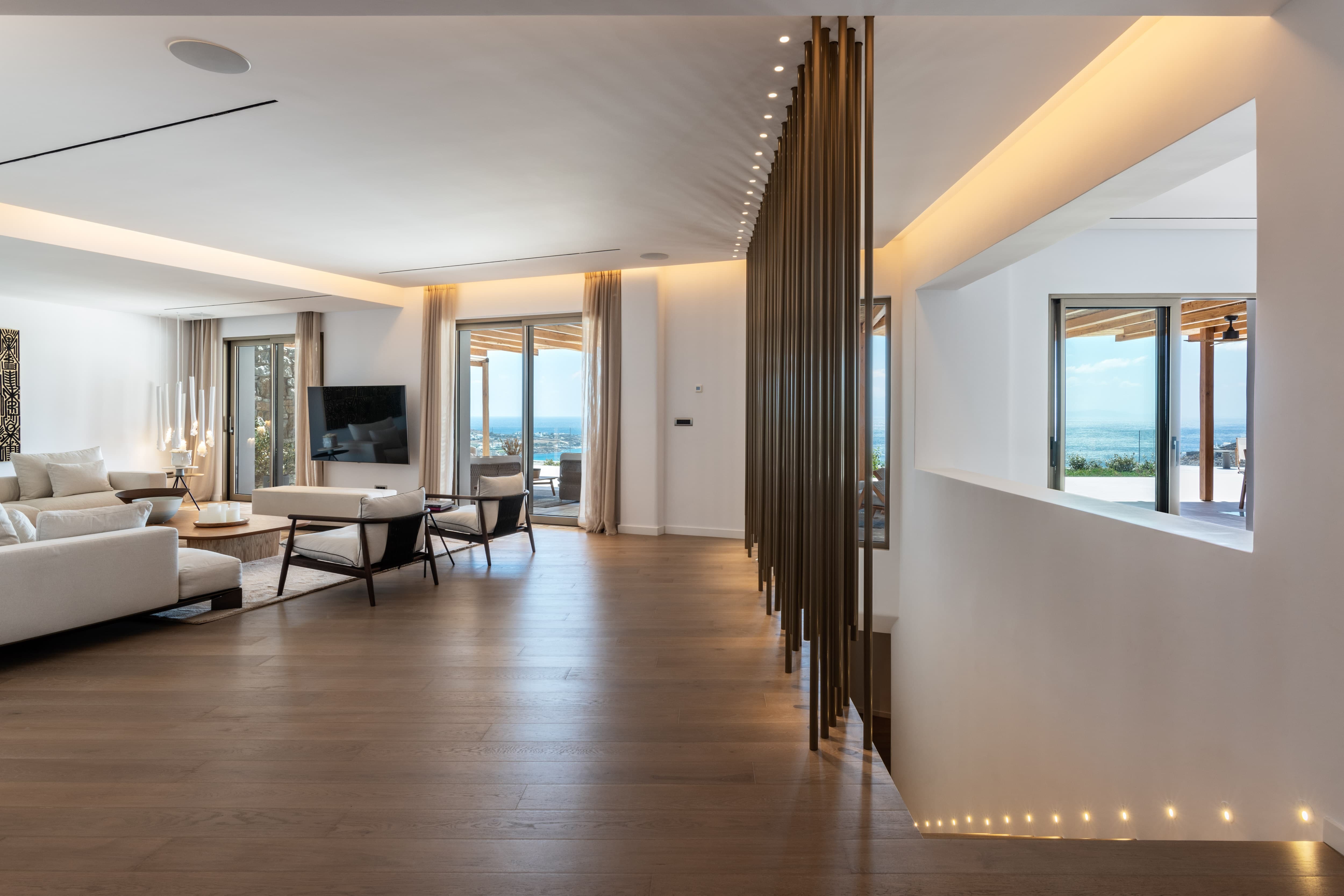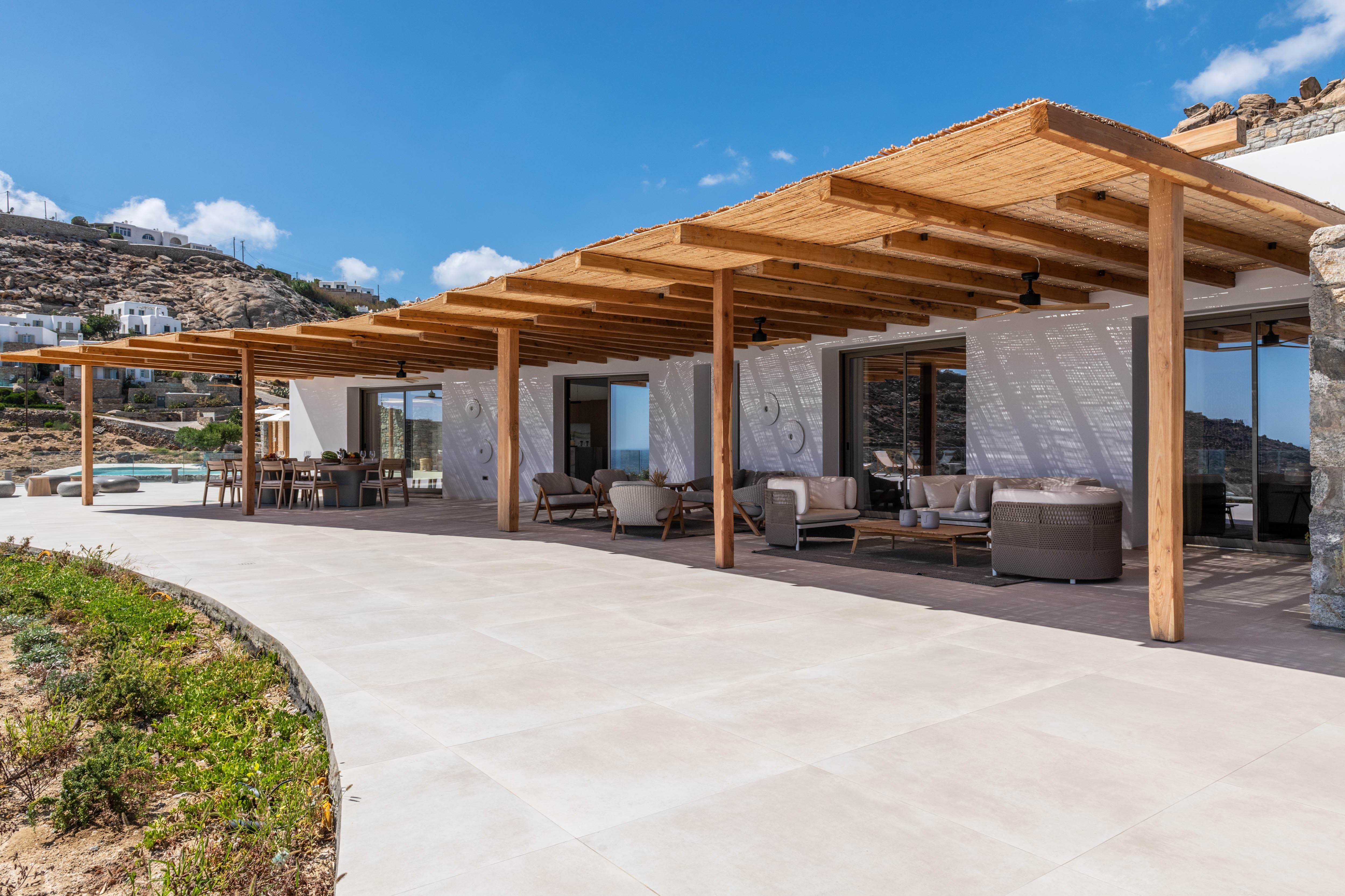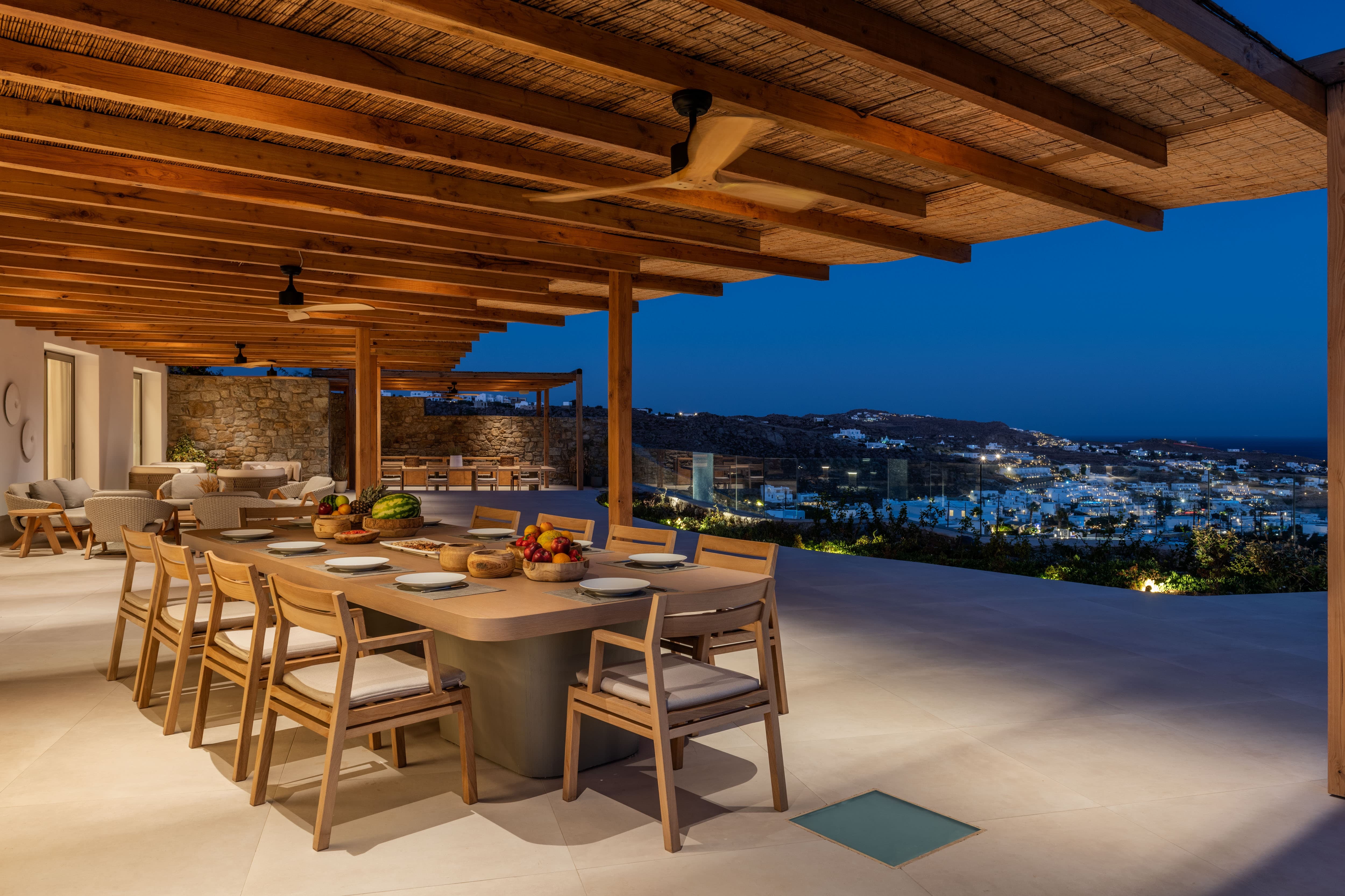 The villa is positioned above Psarou Bay, one of Mykonos’ most exclusive and sought-after areas.