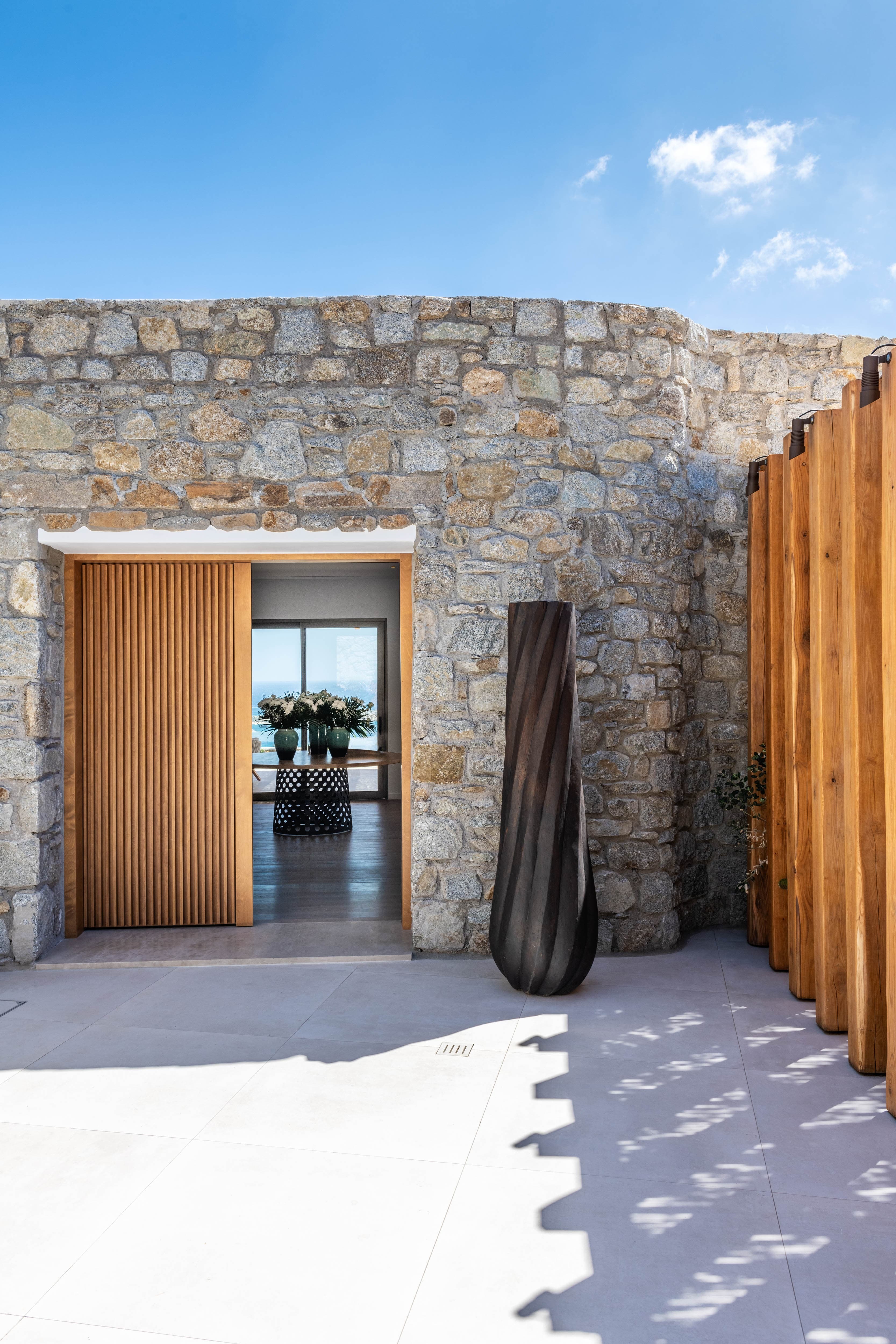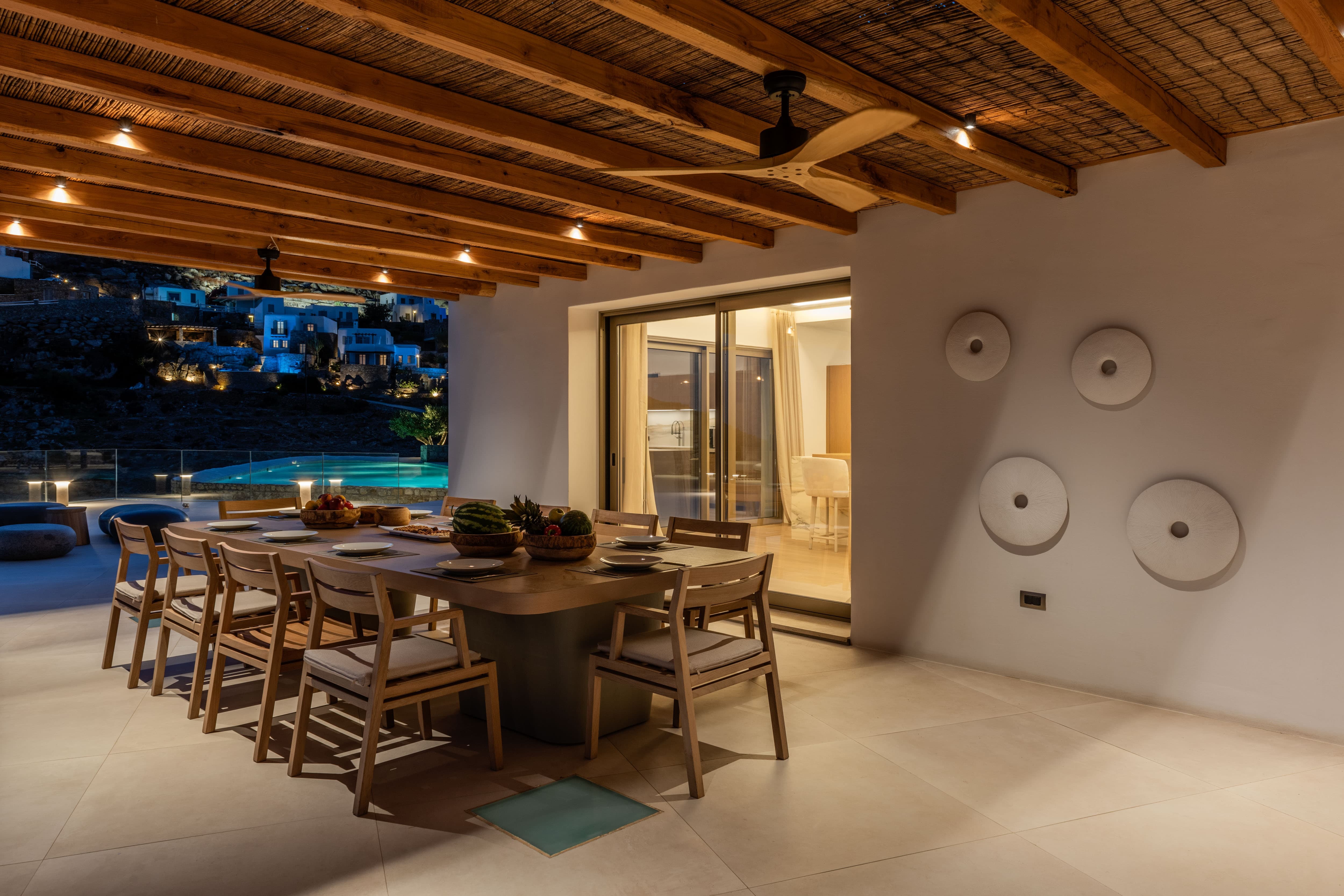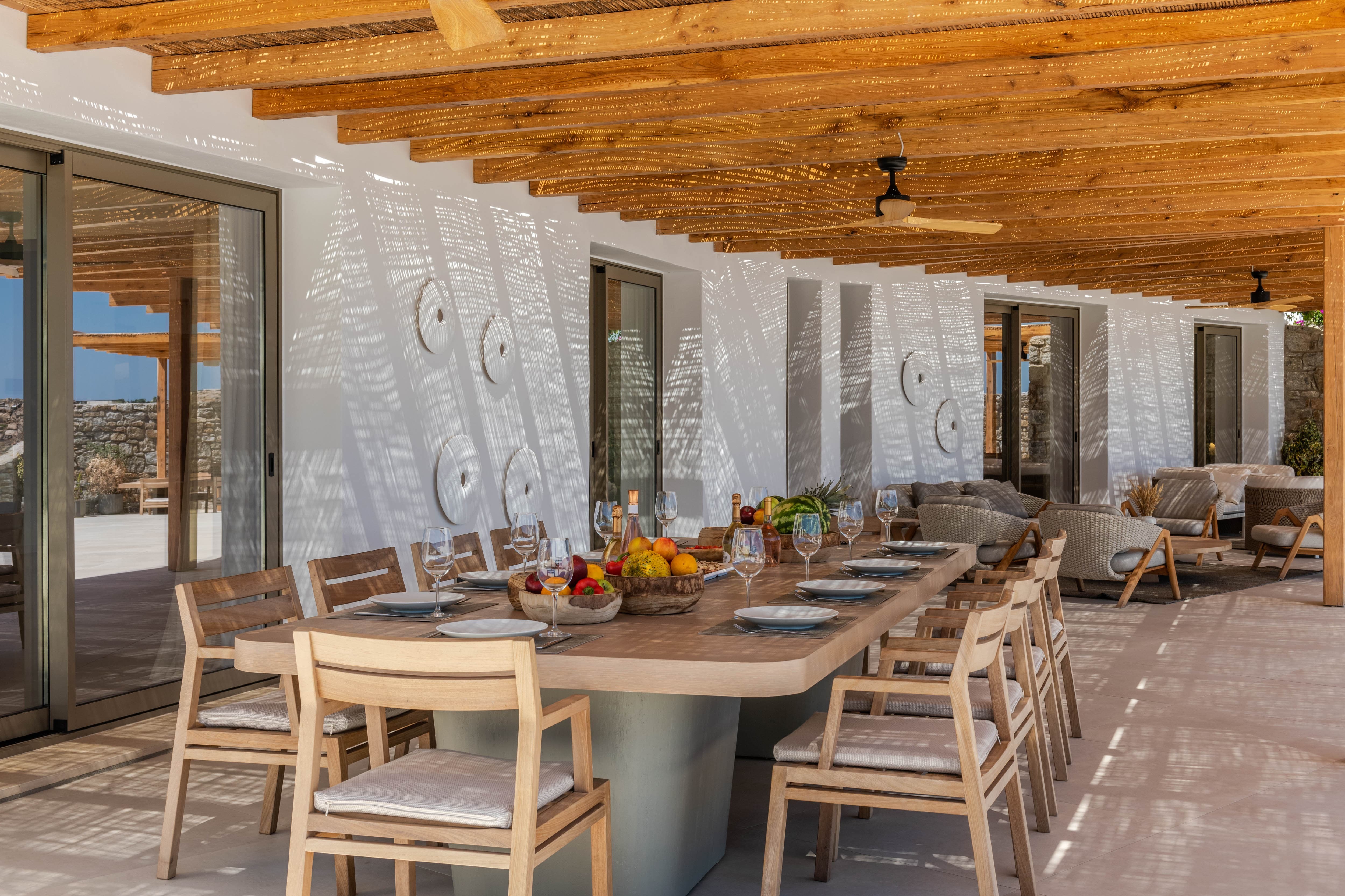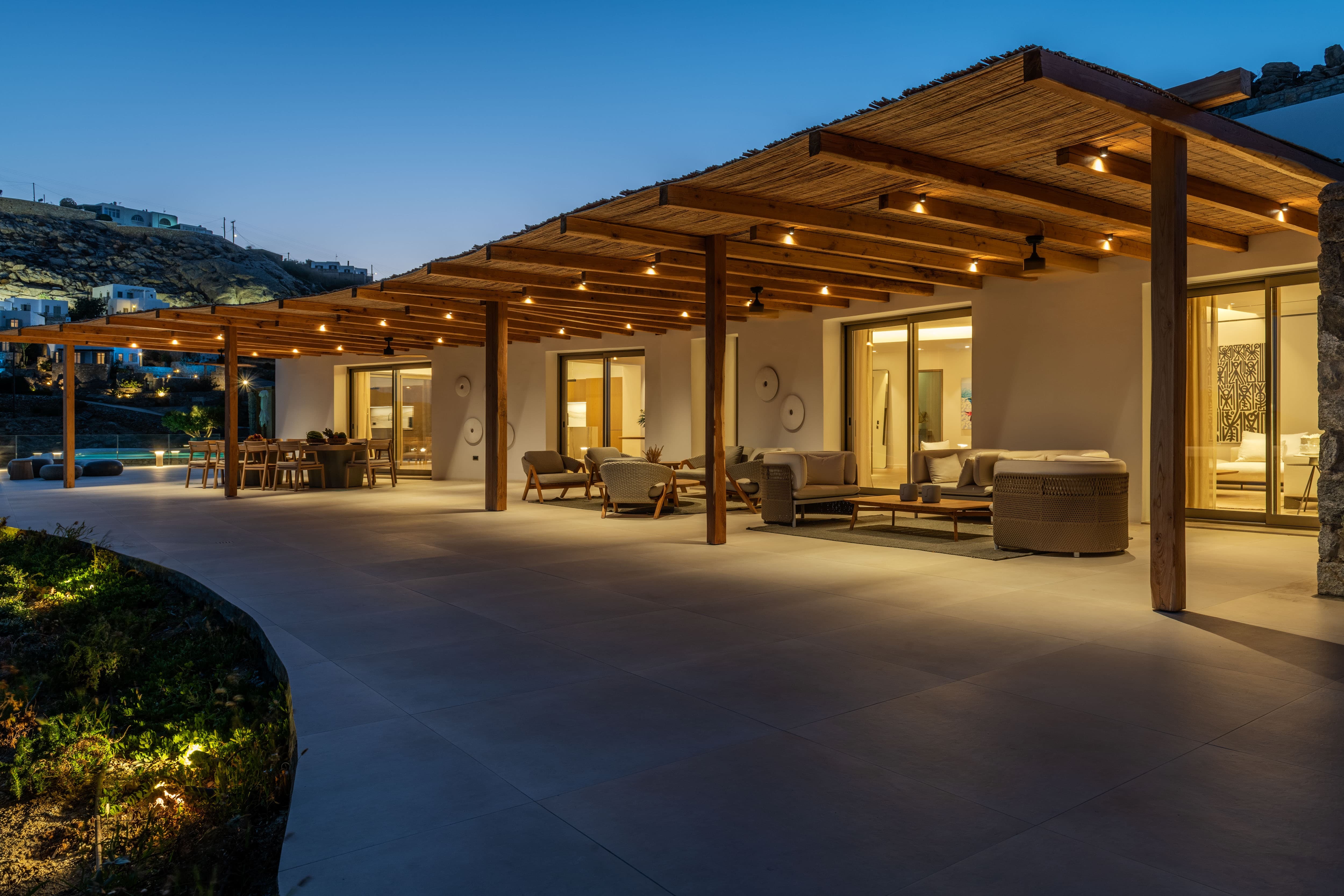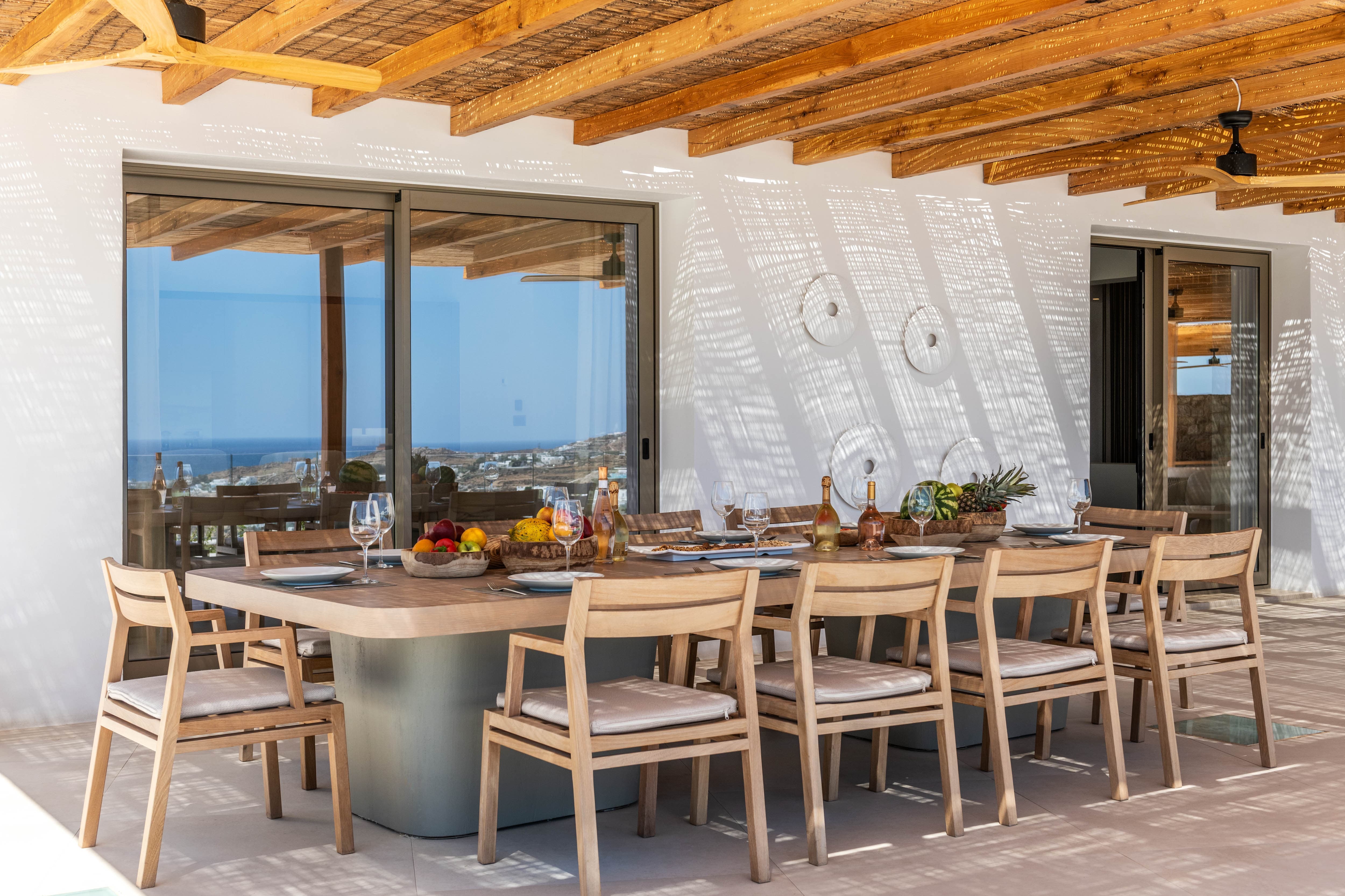 The villa is positioned above Psarou Bay, one of Mykonos’ most exclusive and sought-after areas.