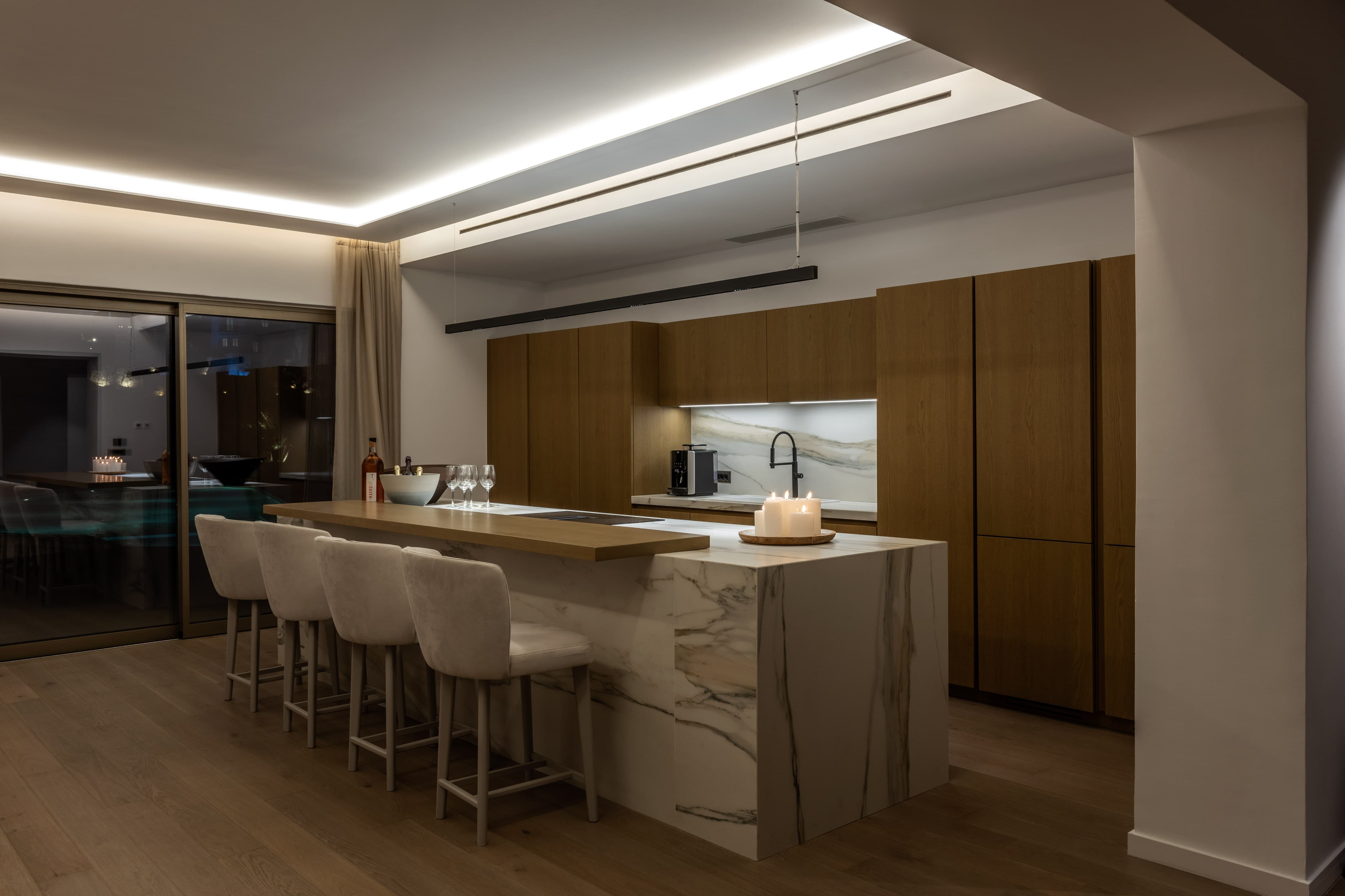 A fully equipped professional kitchen allows for seamless service from the private chef, supported by a secondary guest kitchen for lighter, informal use. Indoor and outdoor dining areas are positioned to maximise views, creating the perfect setting for both relaxed breakfasts and long, elegant dinners.