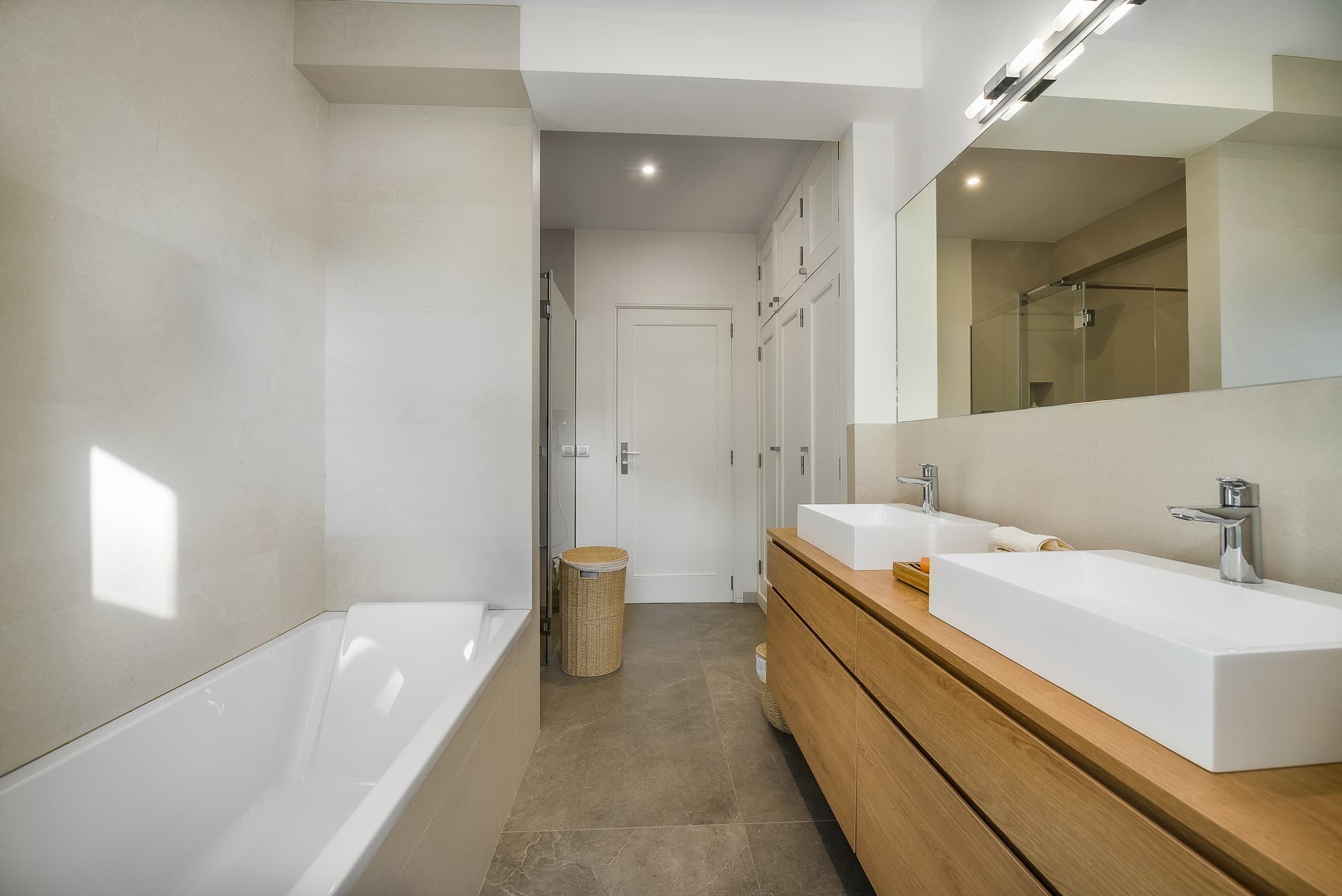 Four well-appointed bathrooms, combining clean design with a warm, understated finish. The master bathroom, with its integrated sauna, offers a more private, spa-like experience.