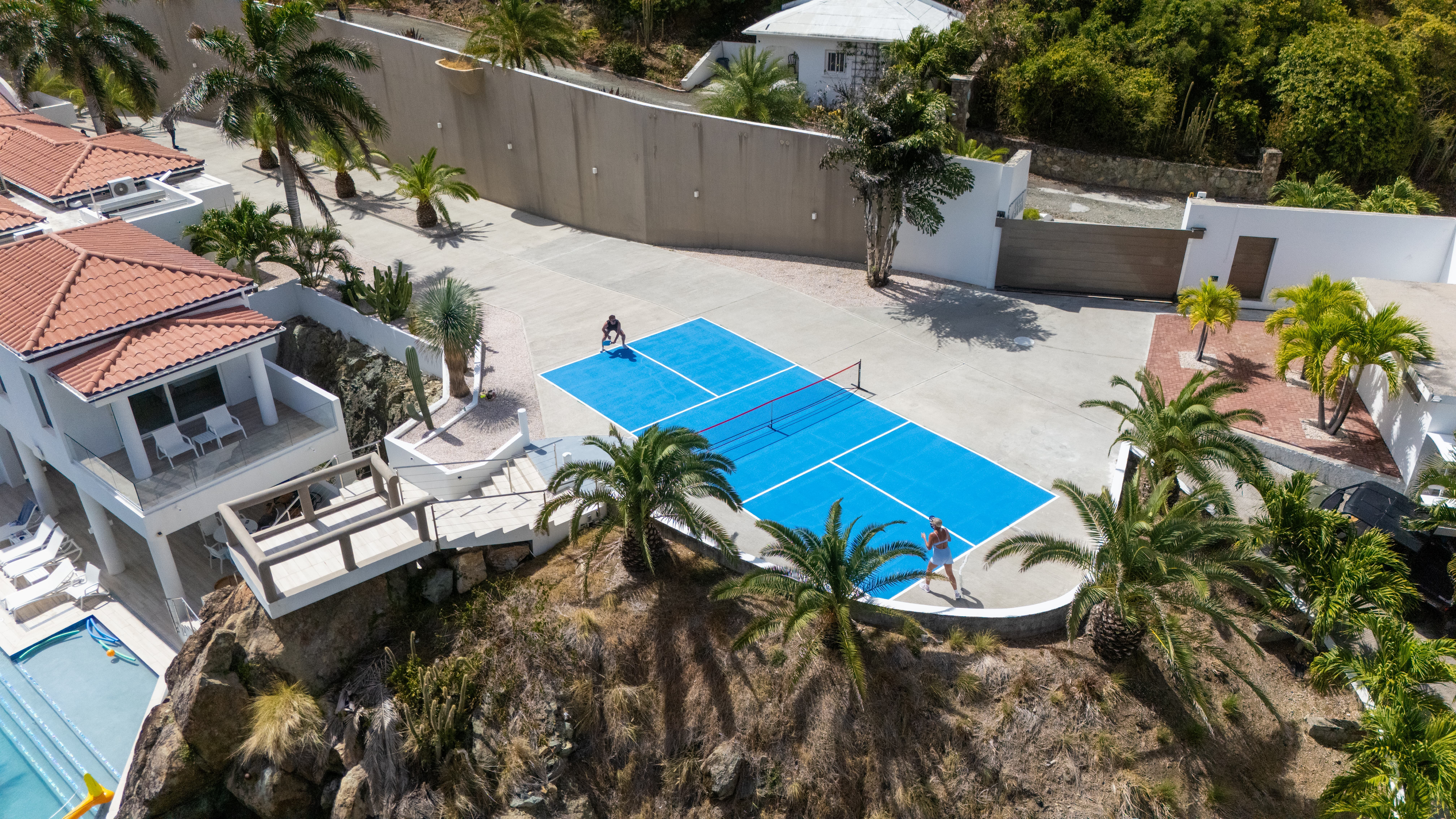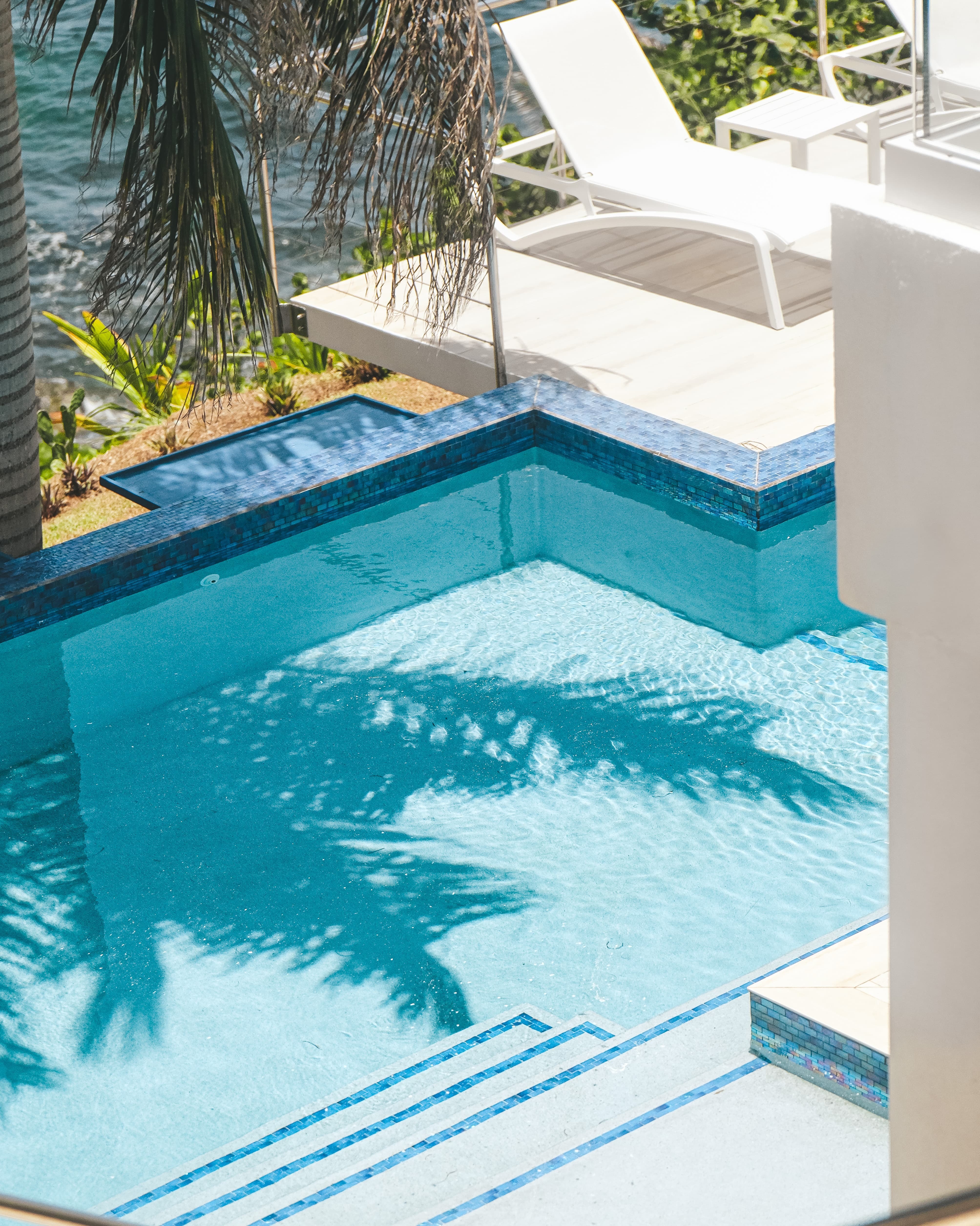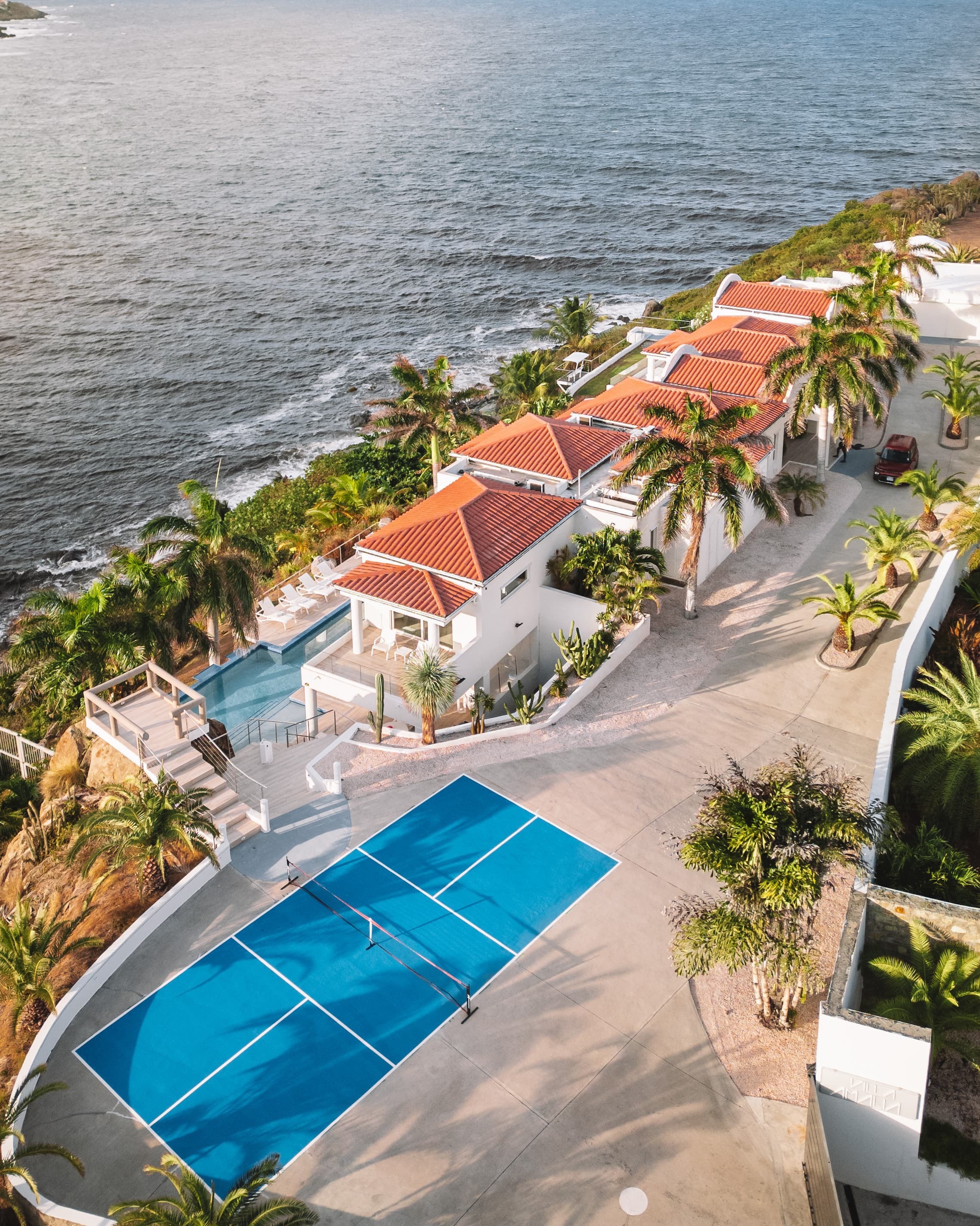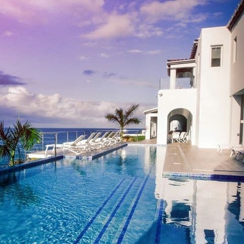 Multi-level swimming pool overlooking the sea, integrated indoor and outdoor music system, curated event capability, and access to bespoke island experiences including yacht charters and water sports.