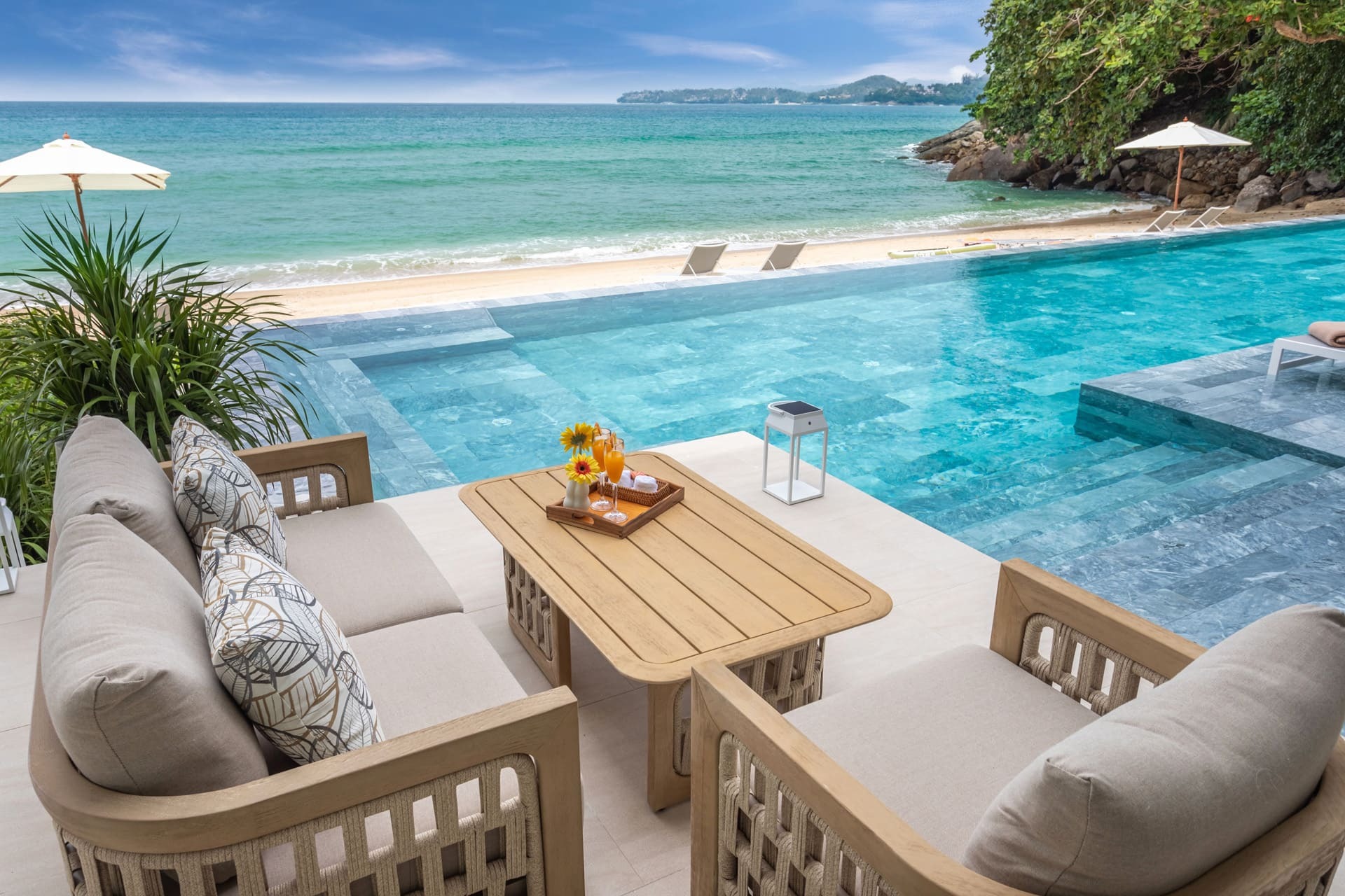 The villa is located on the beachfront in Kamala, overlooking the Andaman Sea, on the west coast of Phuket. The setting offers direct beach access and panoramic sunset views.