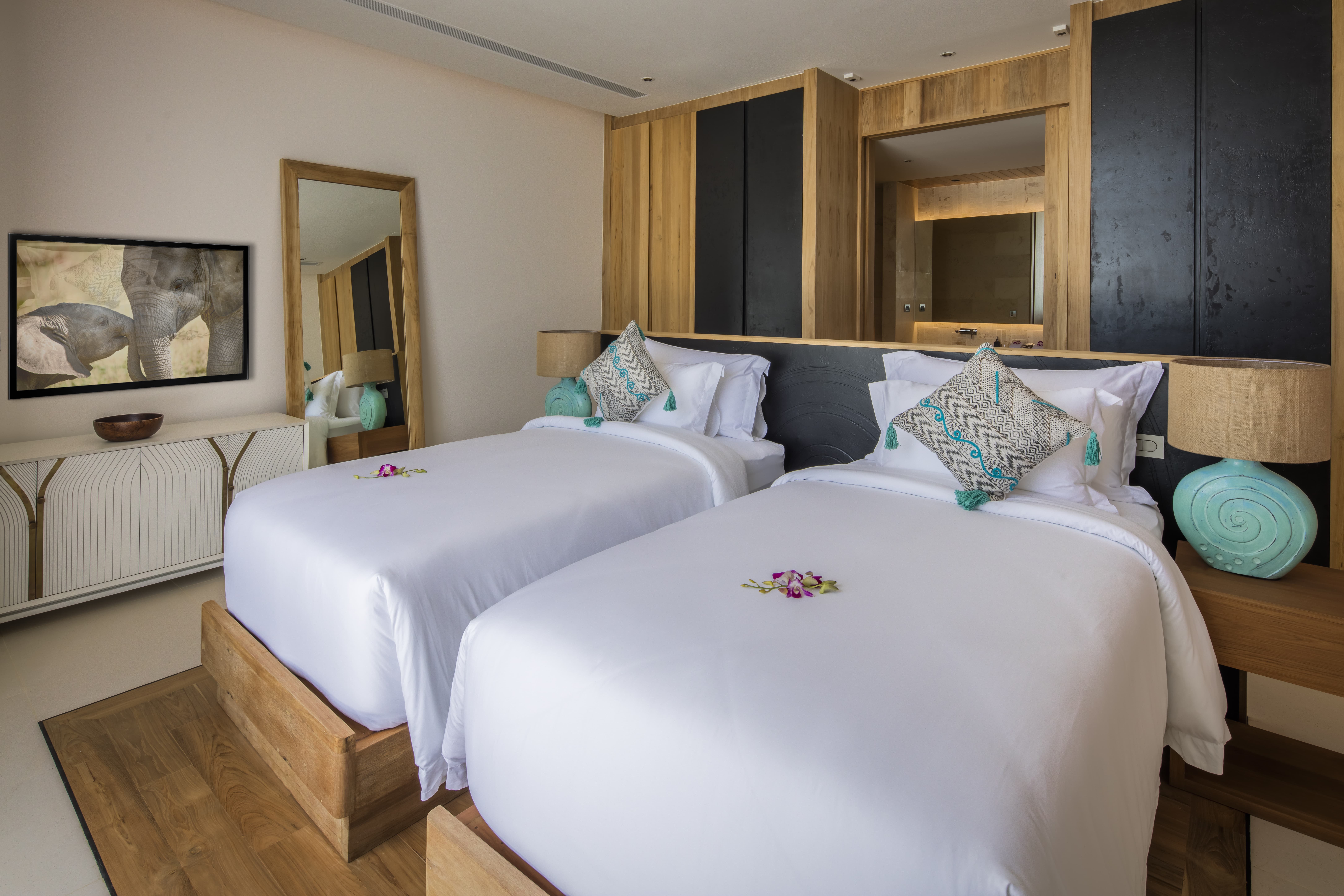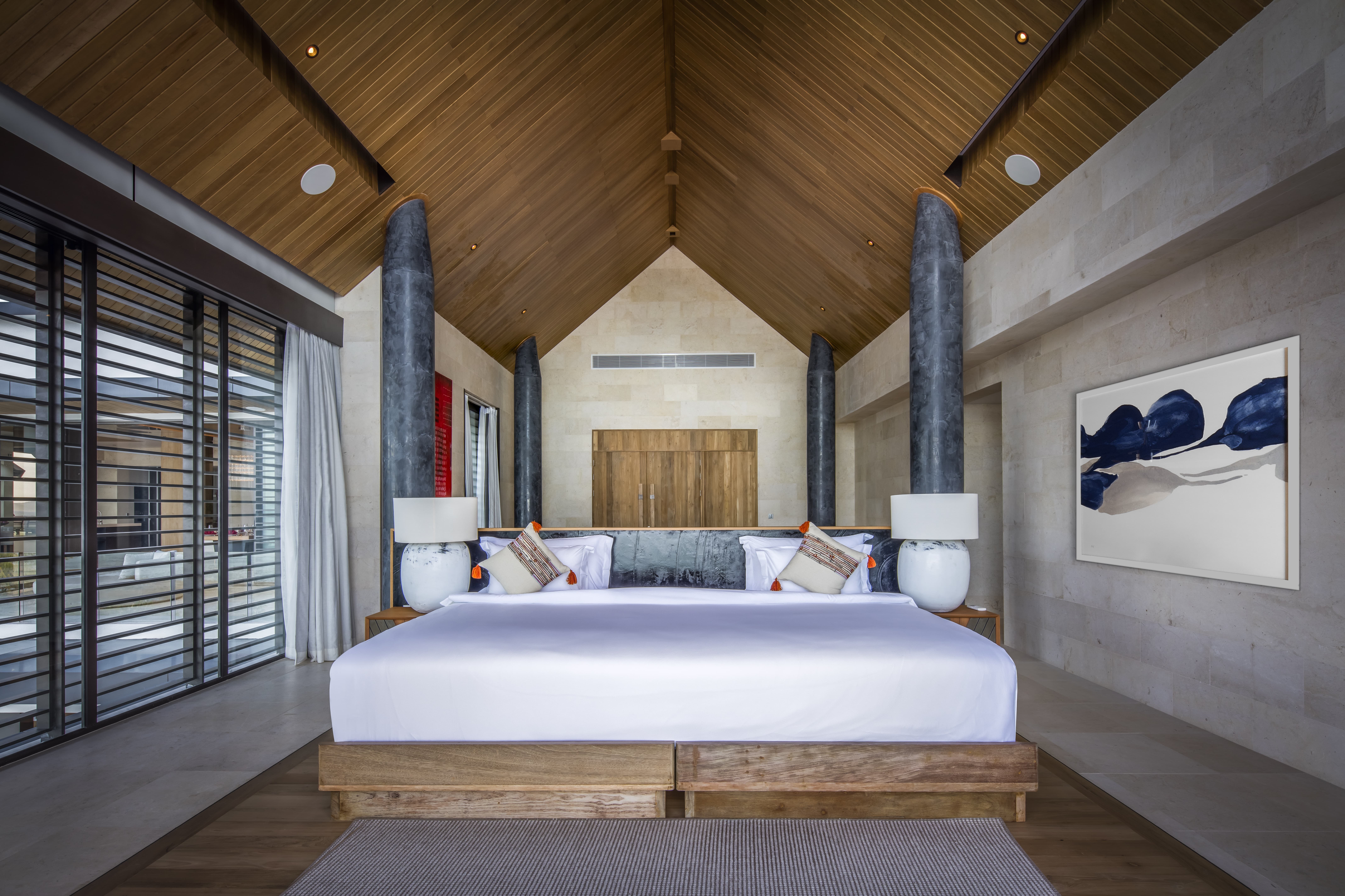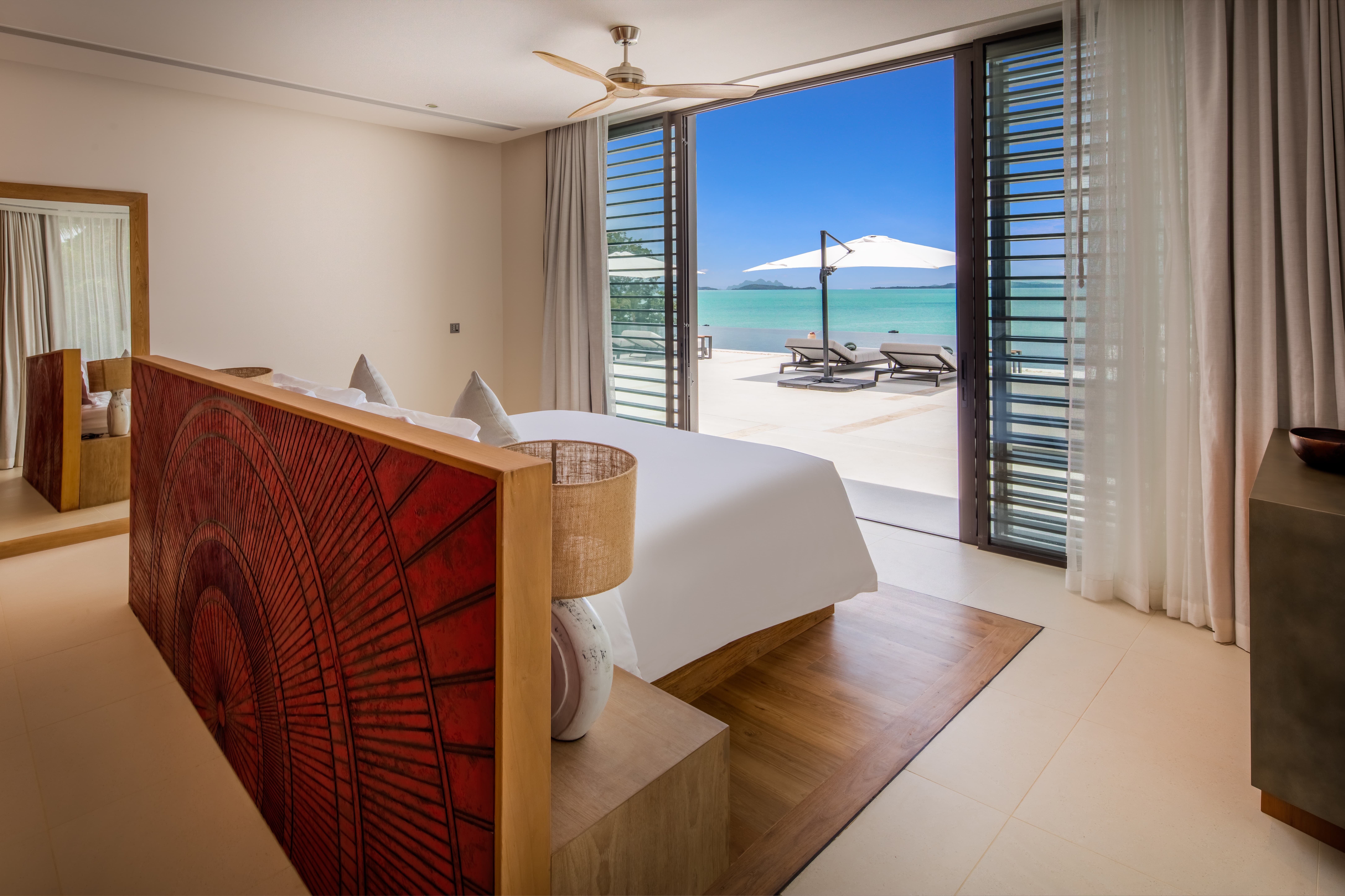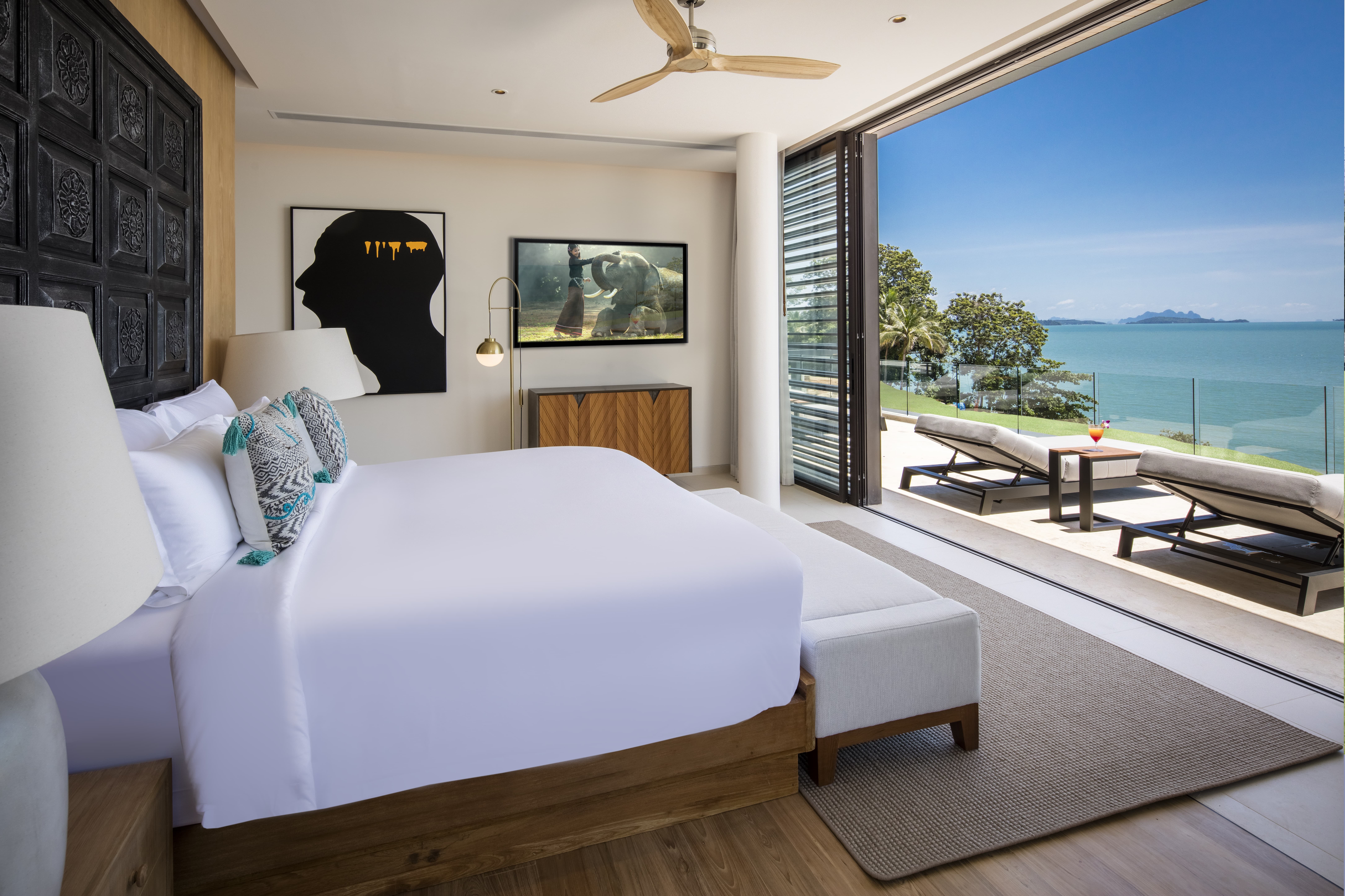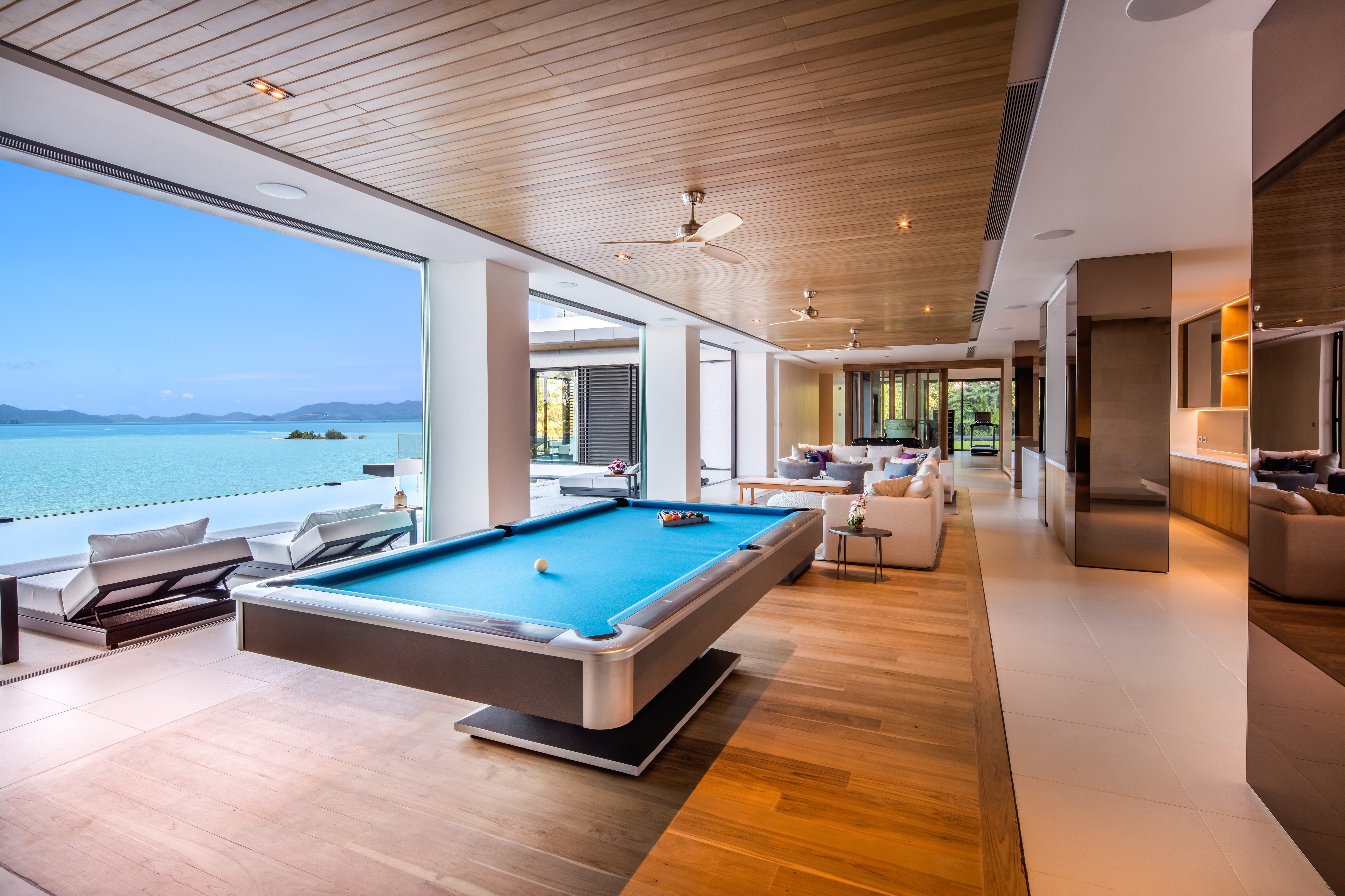 Arranged across four expansive levels, the villa unfolds with architectural confidence and effortless flow. At its heart lies a dramatic high-ceiling main lounge, where floor-to-ceiling glass frames uninterrupted views of the Andaman Sea. Light moves beautifully through the space from morning to dusk, enhancing the sense of openness and calm. Multiple living areas provide generous room for gathering, whether for celebratory evenings or quiet afternoons. Interiors transition seamlessly onto wide terraces, allowing indoor and outdoor living to merge into one continuous, ocean-facing experience.
