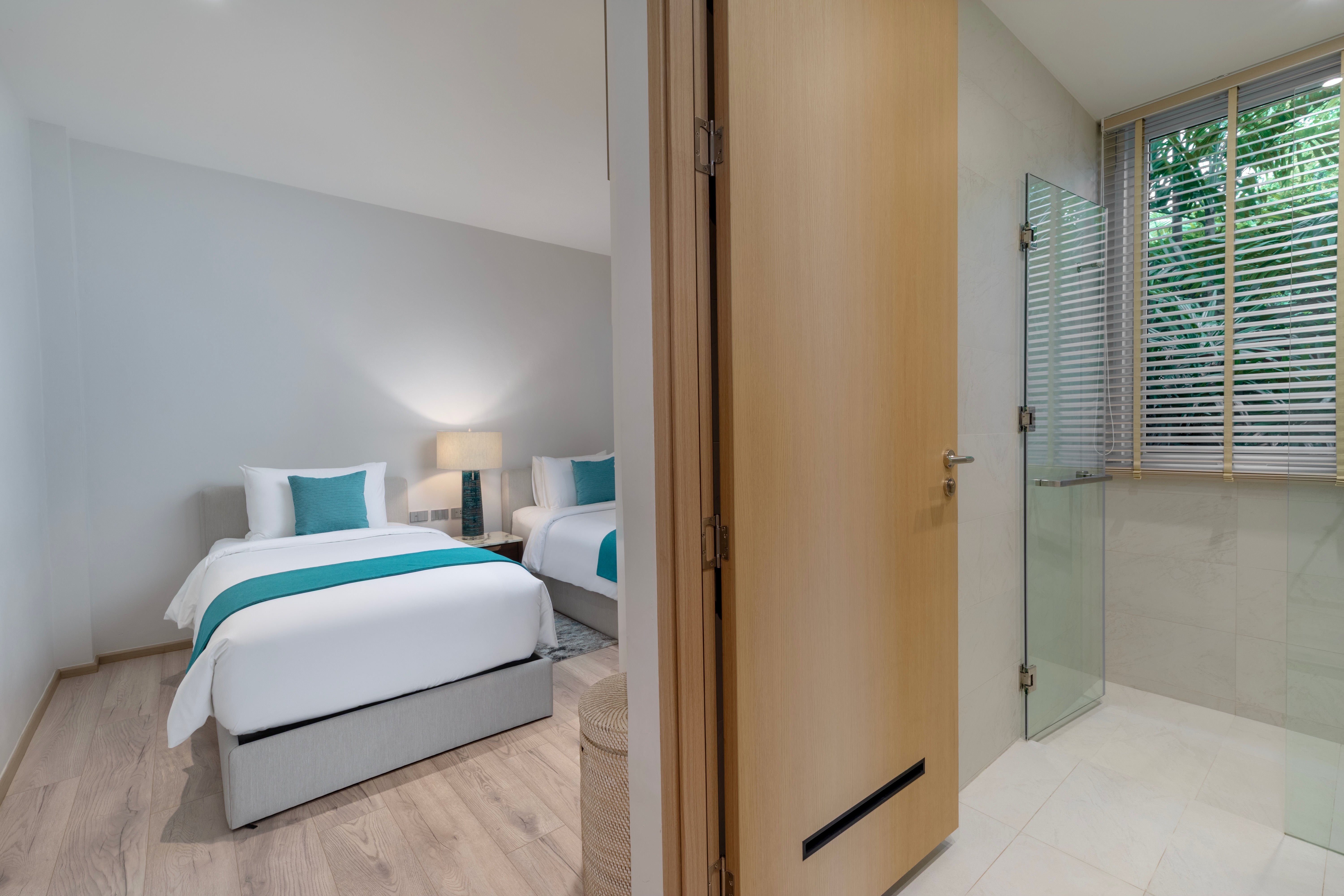 The villa offers six bedrooms, each with its own ensuite bathroom, ensuring comfort and privacy for all guests. Two master bedrooms feature king-size beds and Smart TVs, while four guest bedrooms are configured with twin beds, providing a total of eight singles for flexible arrangements. Family-friendly amenities such as a baby cot and highchair are available, and guests can enjoy thoughtful turndown service.