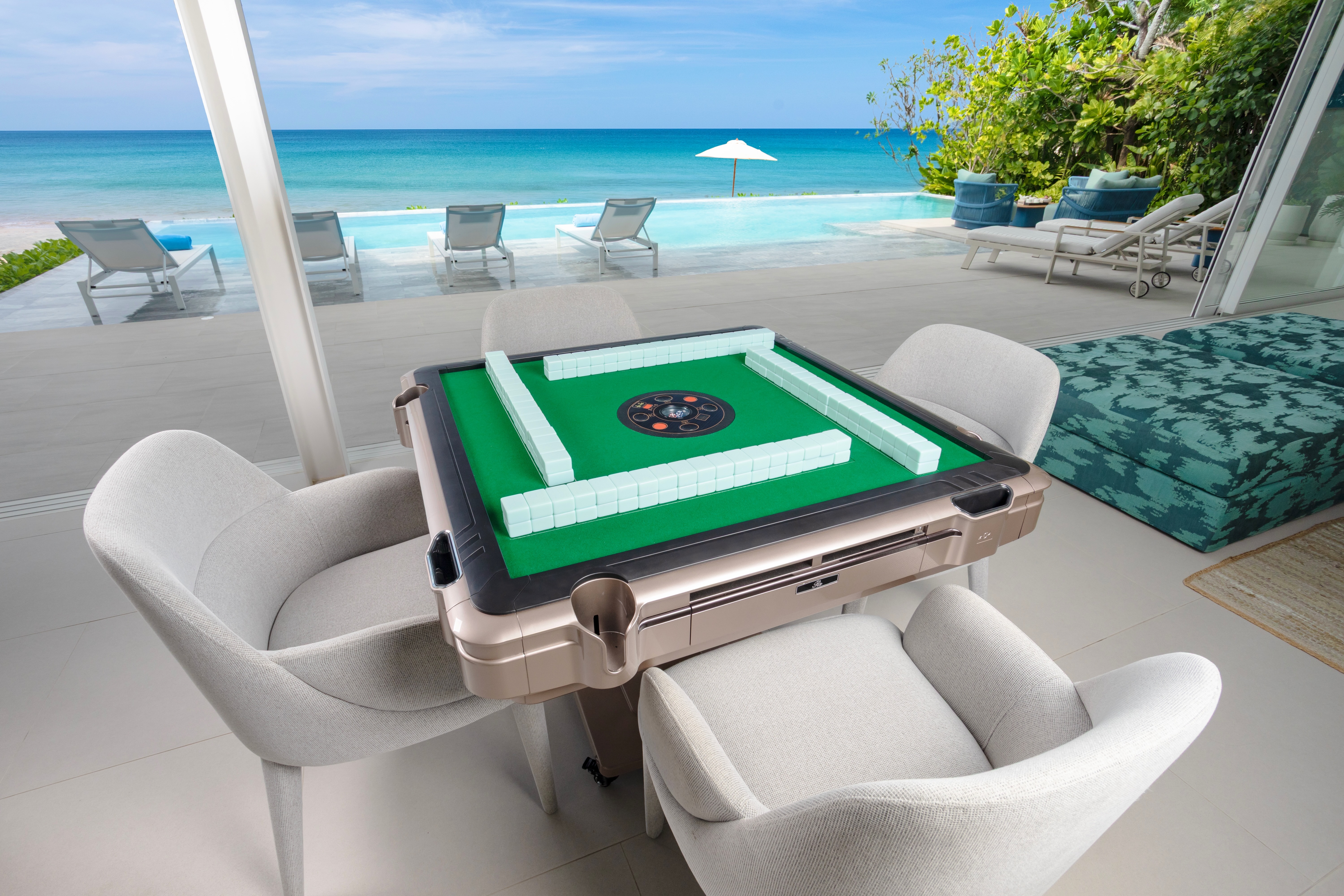 Guests can enjoy a wide range of entertainment and recreational amenities, including 55” Smart TVs with live channels and streaming, a pool table, mahjong table, and a selection of board games. For water and beach activities, the villa provides a two-person kayak, paddleboard, snorkeling equipment, water activity shoes, and sand toys for kids, ensuring fun for all ages both indoors and by the sea.
