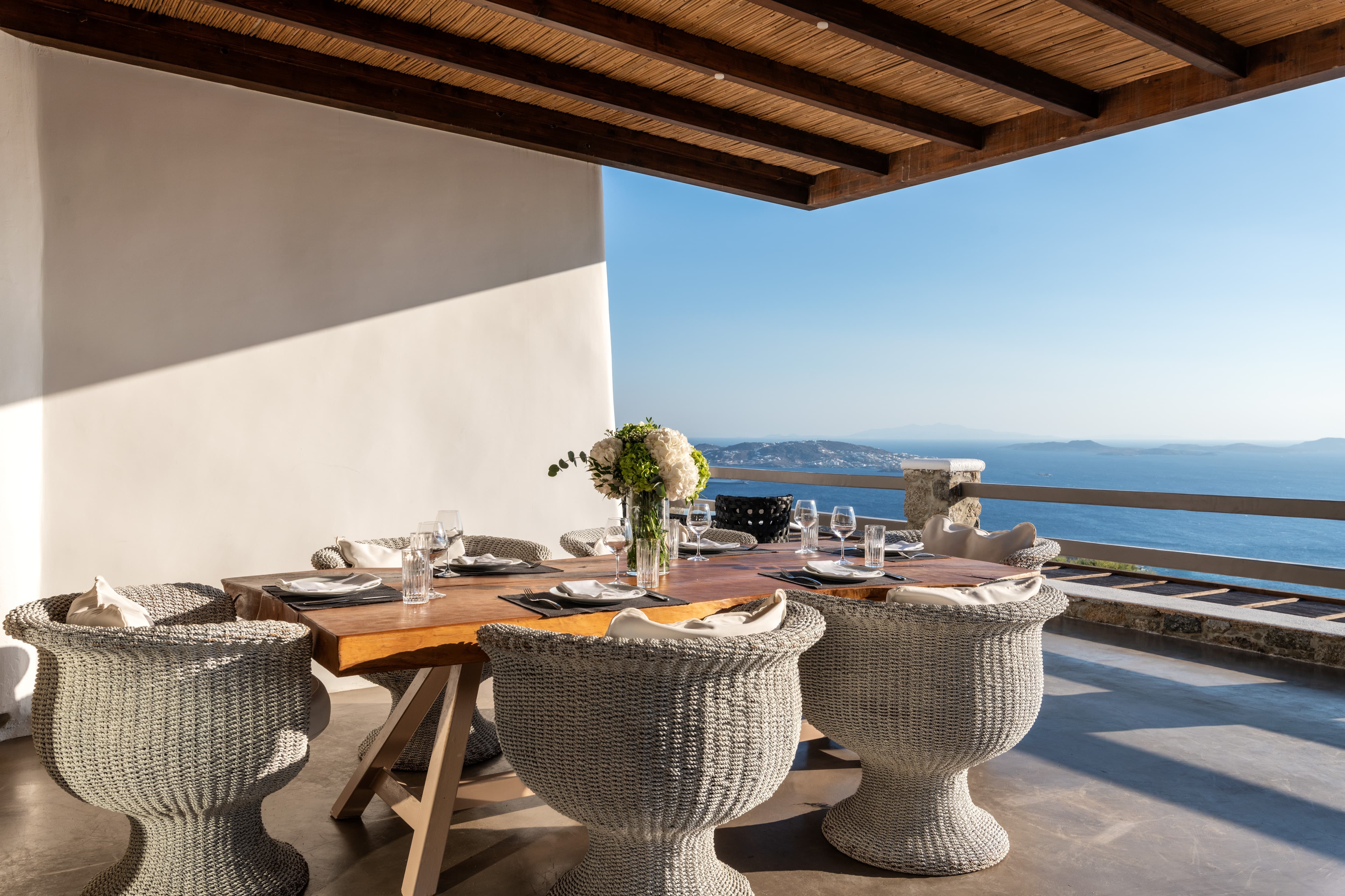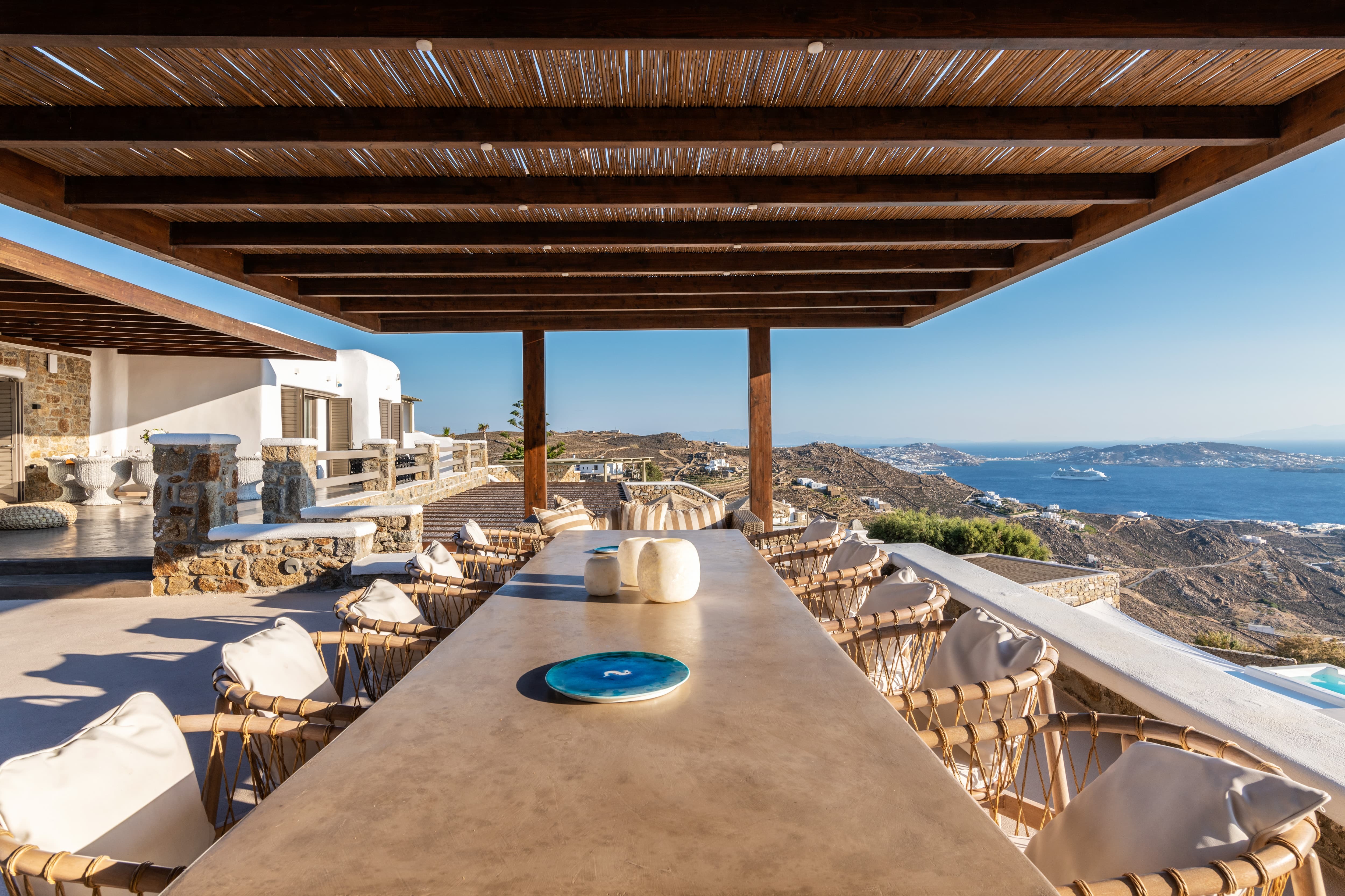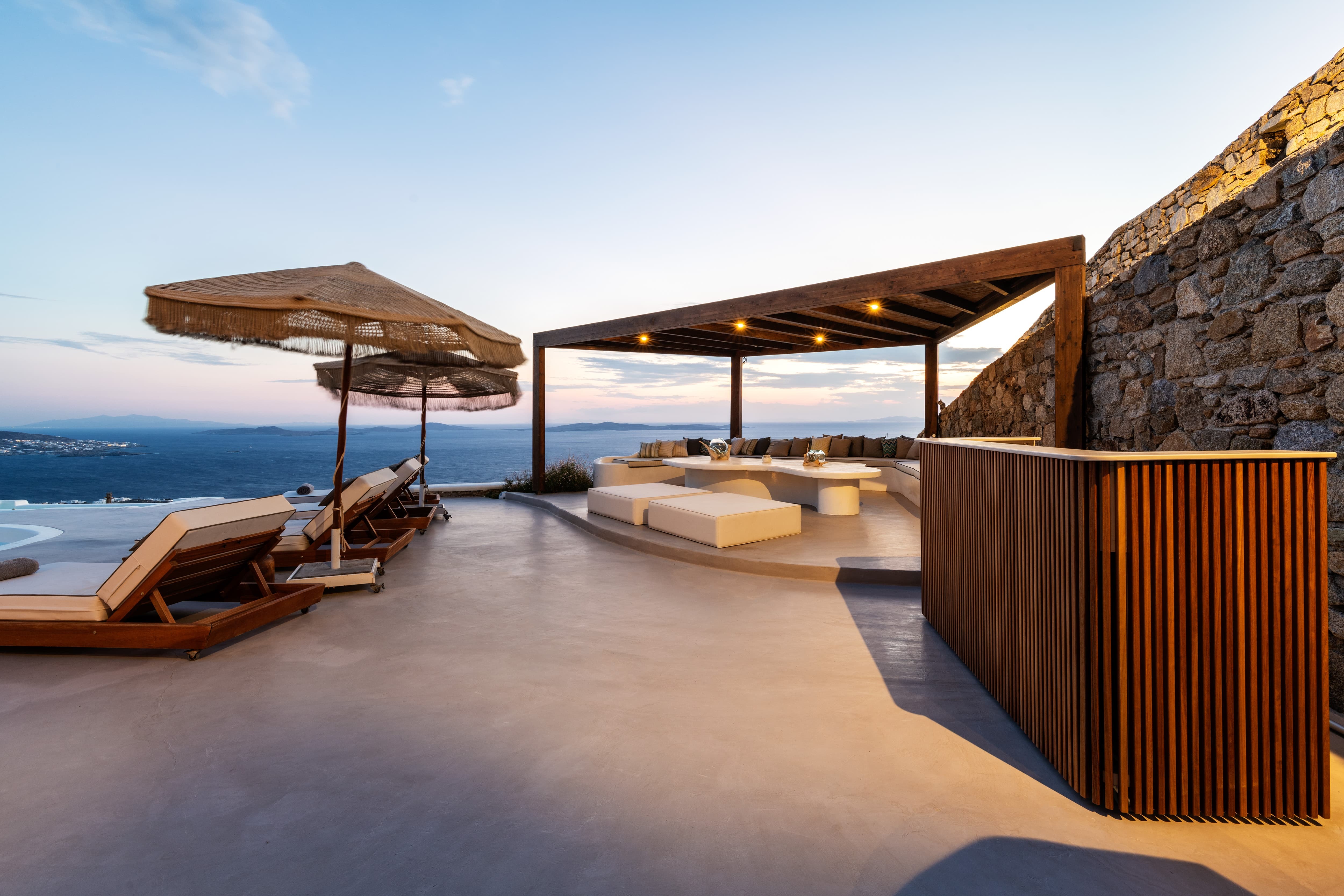 The villa is located in Fanari, one of the most elevated and private areas of Mykonos.
