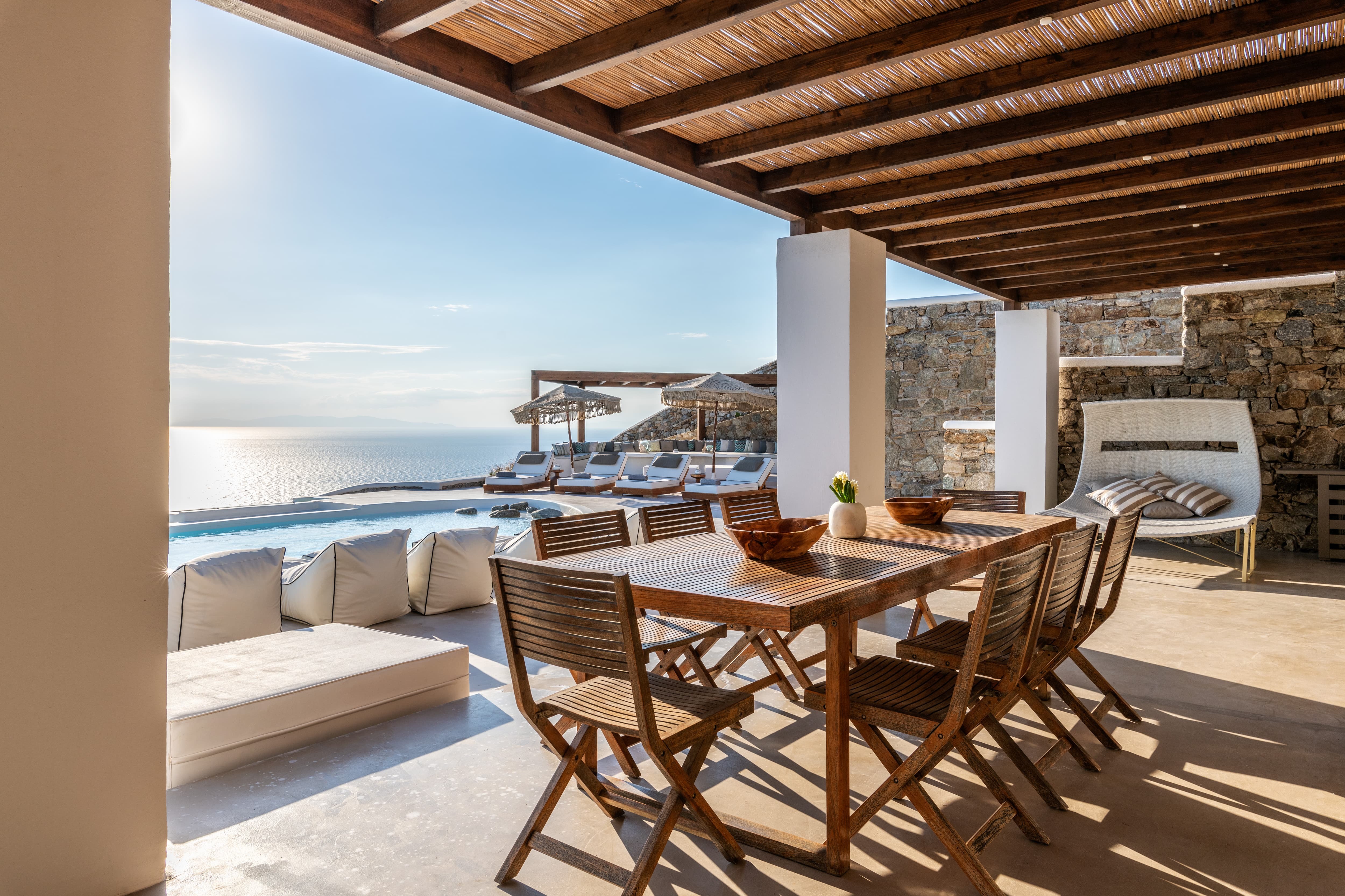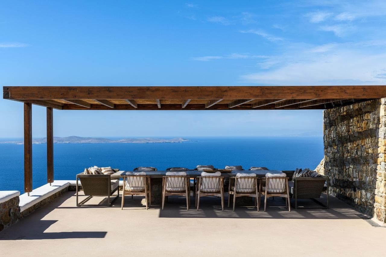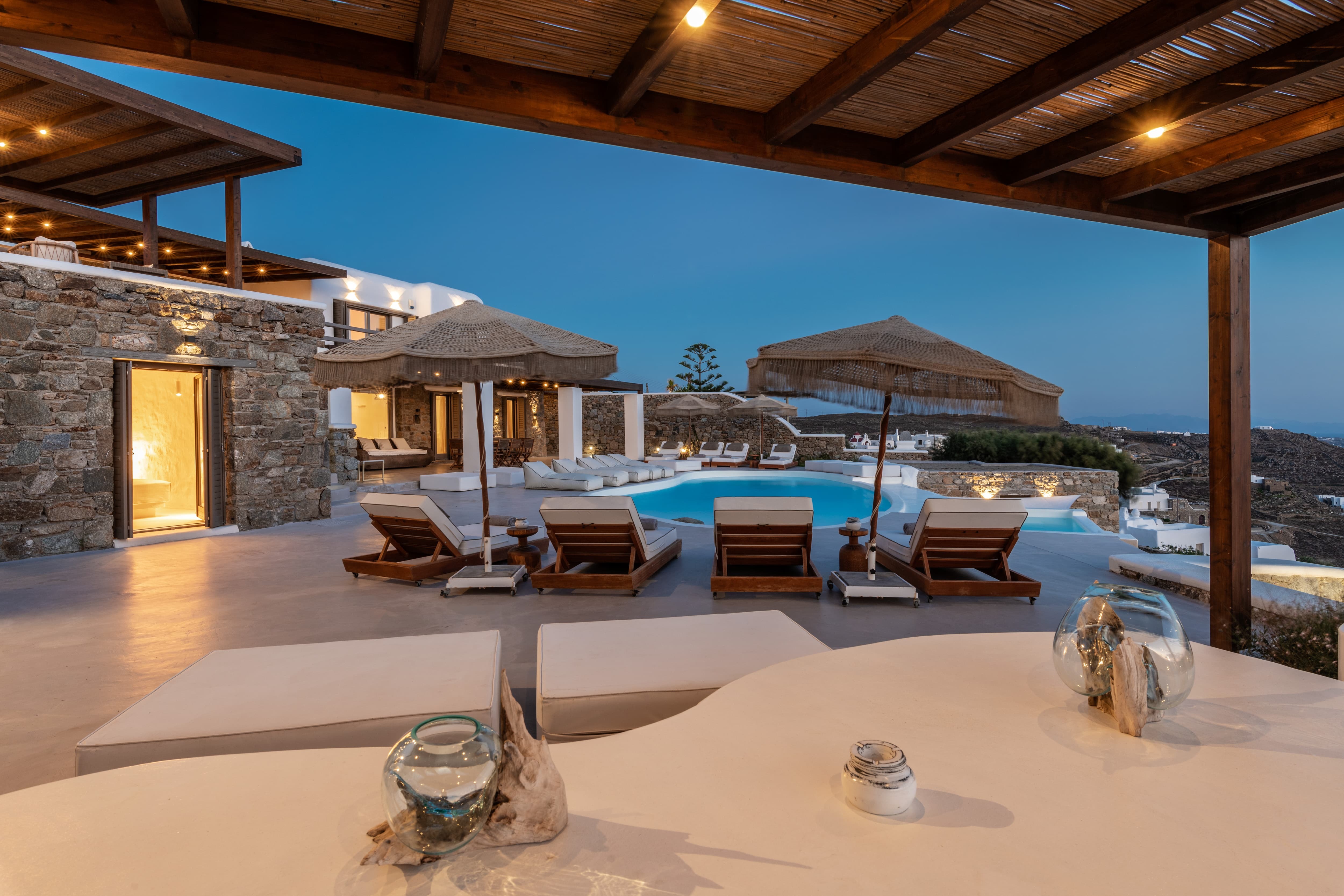 The villa is located in Fanari, one of the most elevated and private areas of Mykonos.