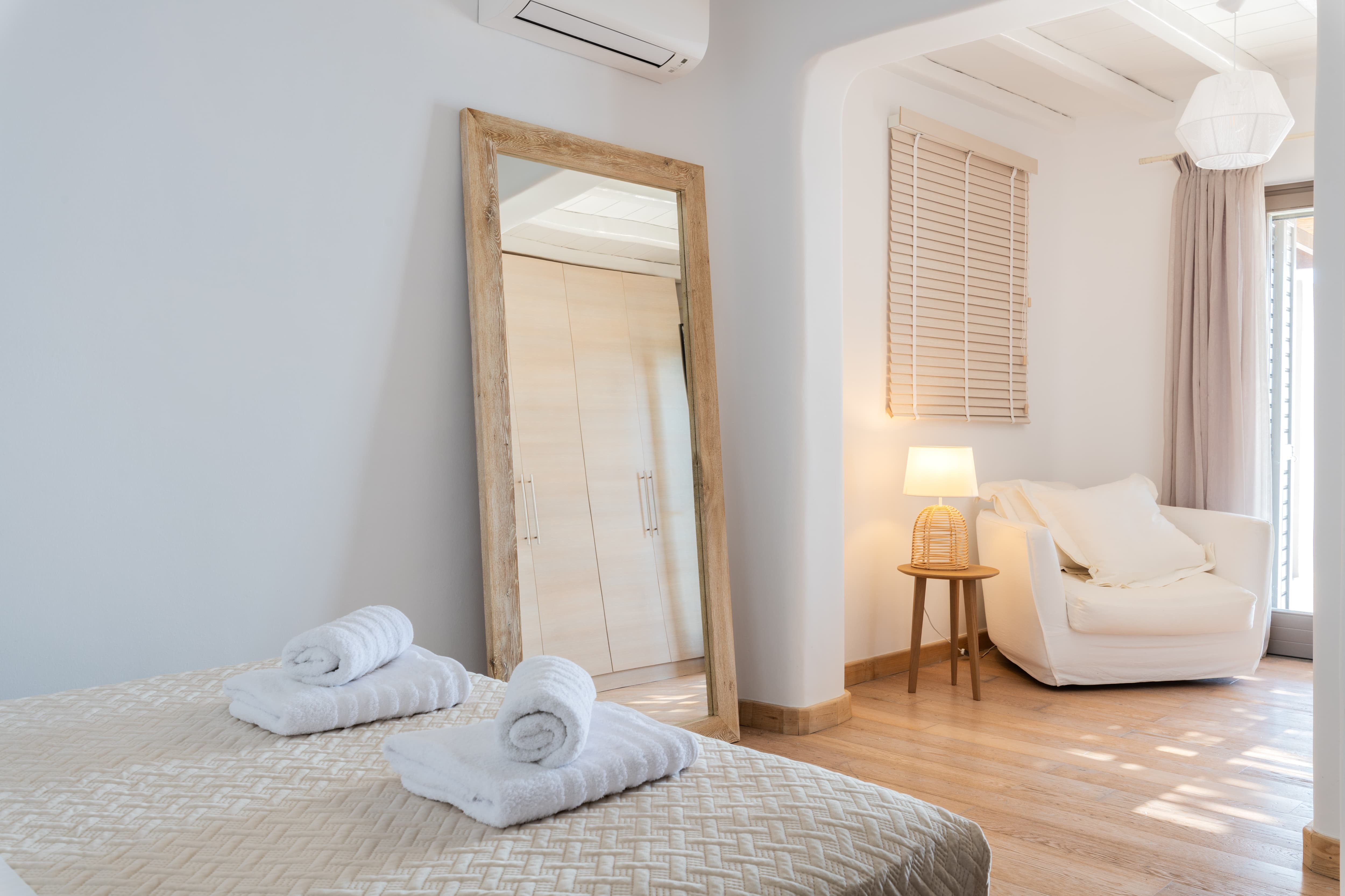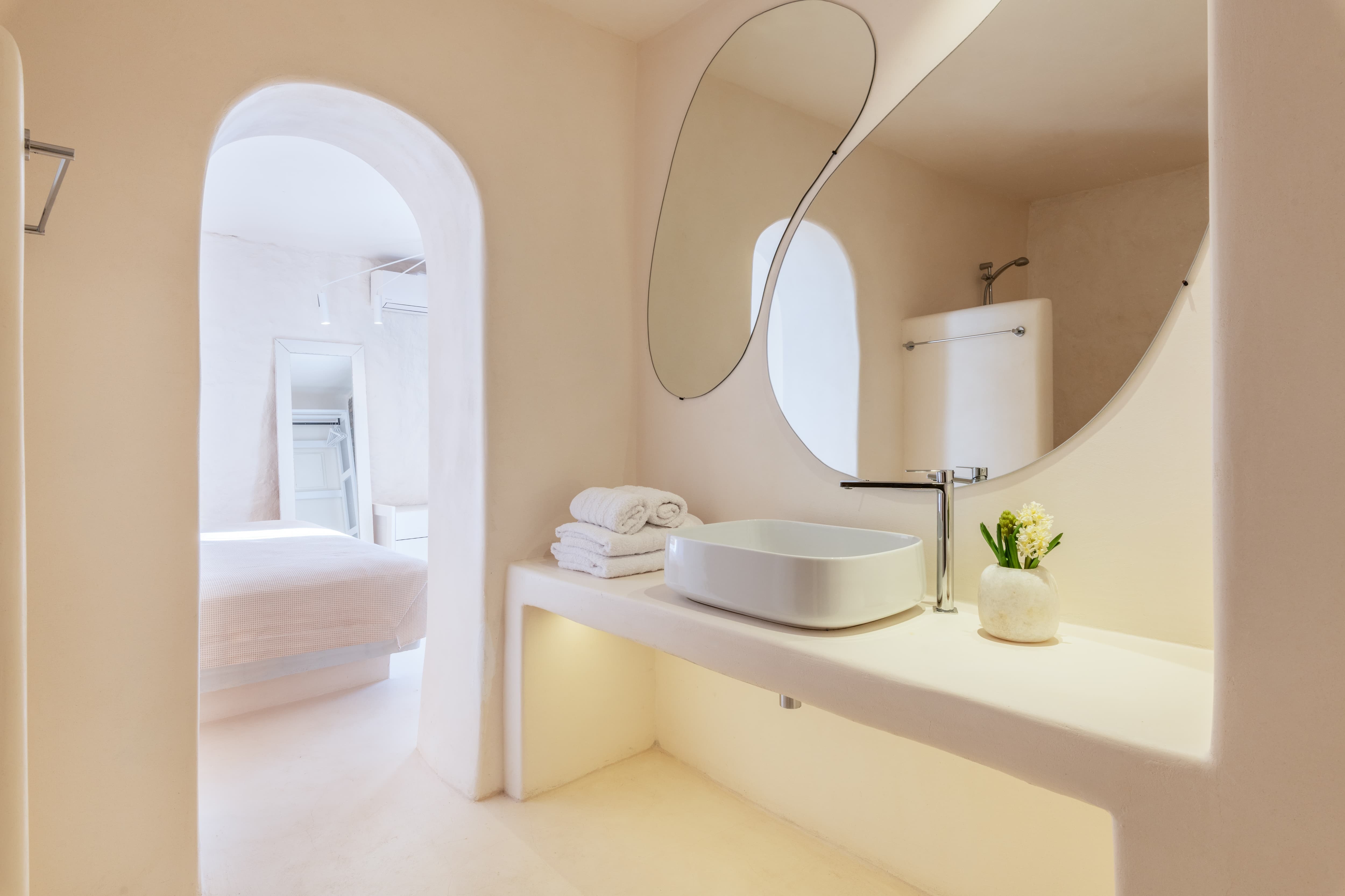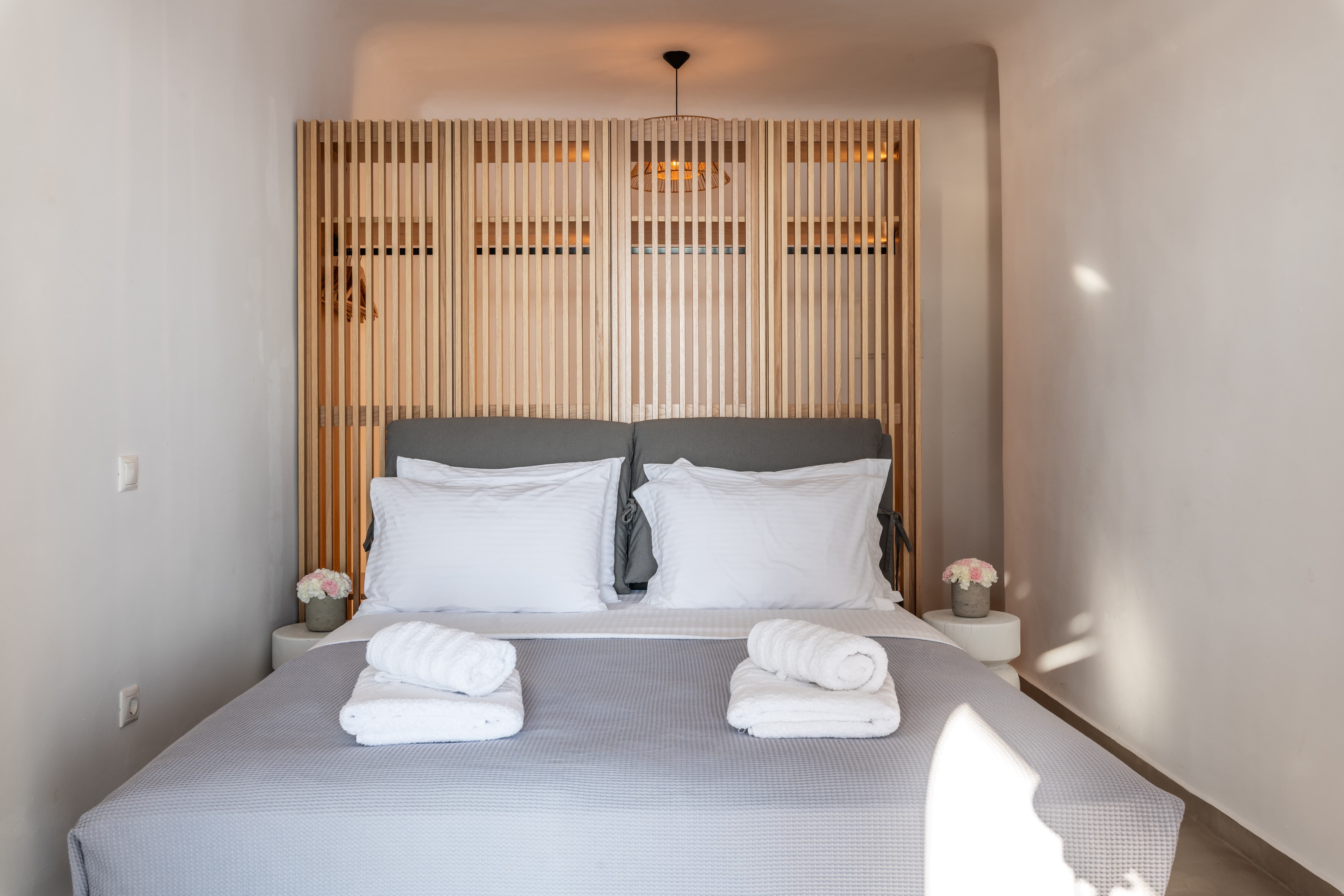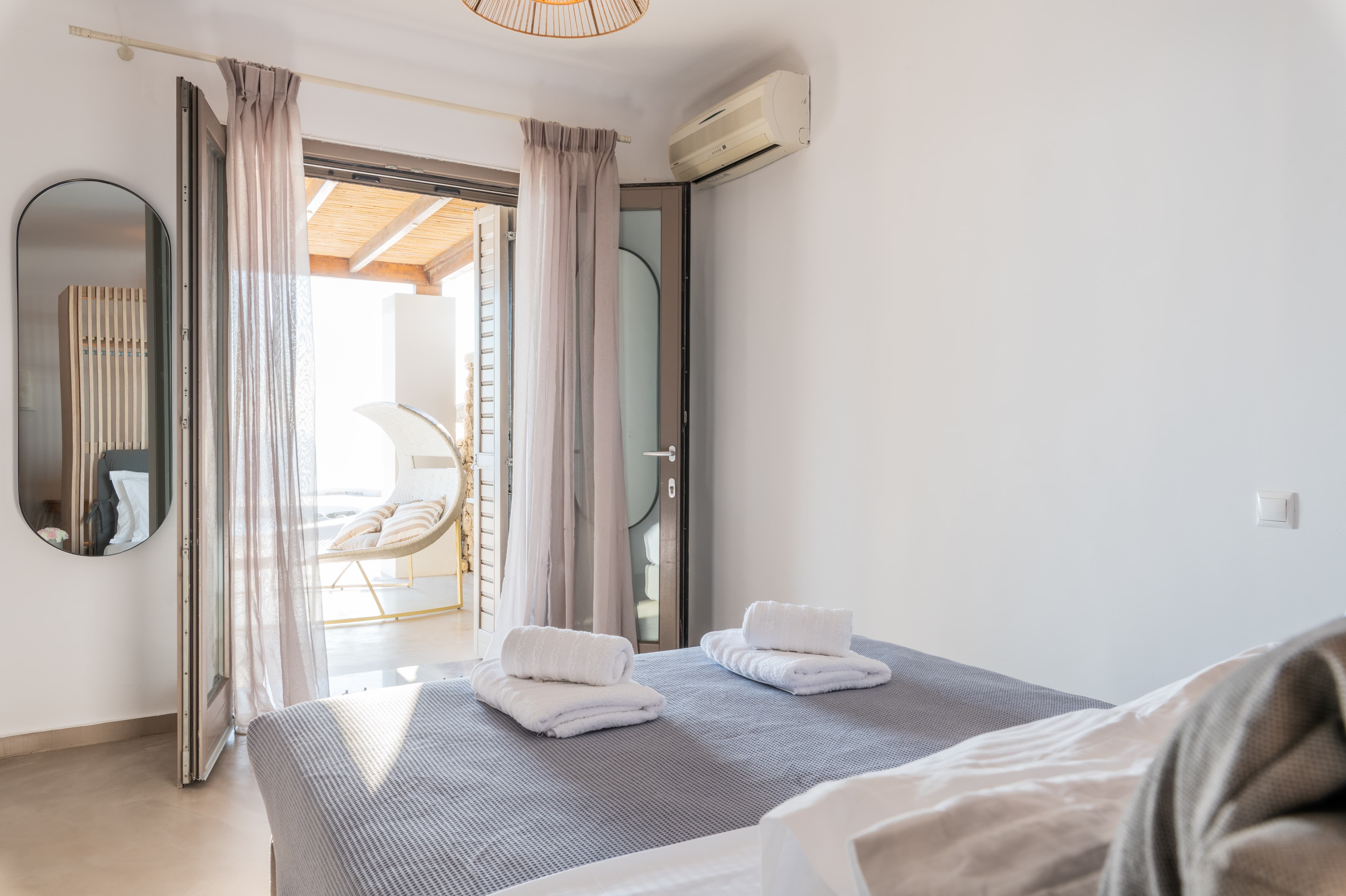 There is a natural calm to the villa. Its architecture blends traditional Cycladic elements with a modern, minimal aesthetic, soft tones, clean lines, and open spaces that allow light and landscape to lead. It is a setting that feels considered yet unforced, designed to be lived in rather than simply observed.
