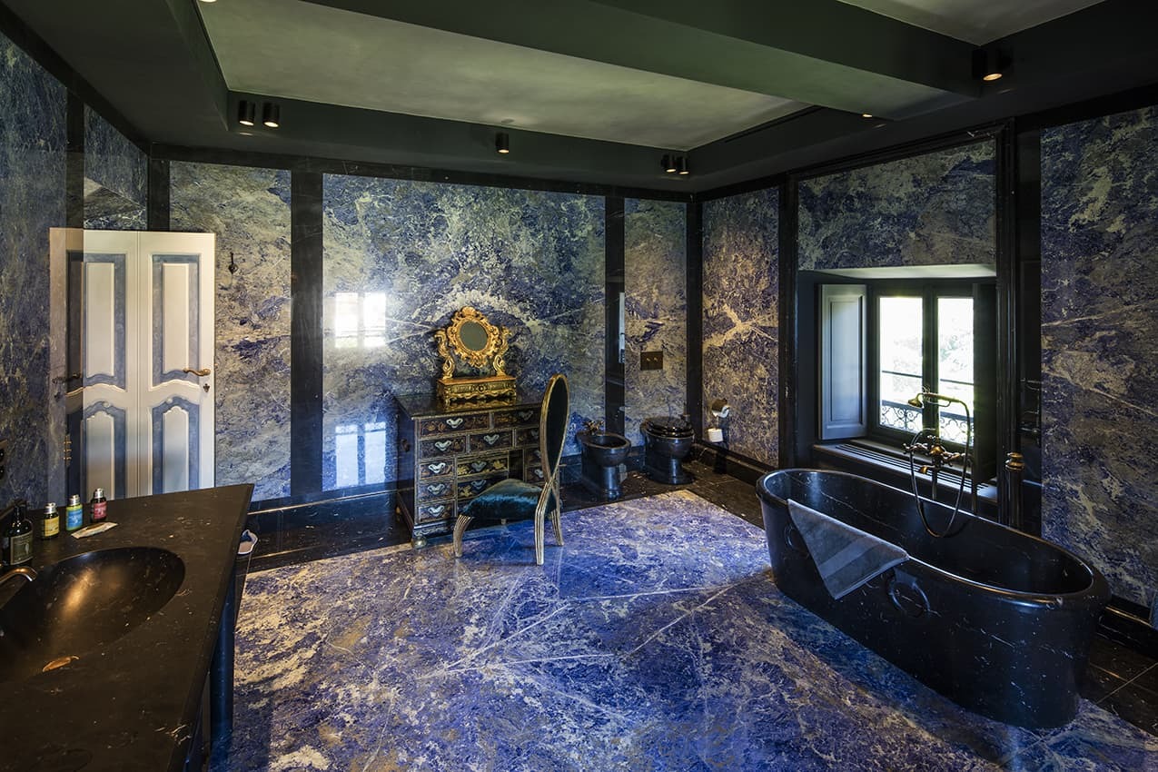 Each bedroom features a private en suite bathroom finished in marble and high-quality stone, combining classical detailing with modern fittings. Spacious walk-in showers, freestanding bathtubs, and premium amenities create a spa-like environment aligned with the villa’s refined character. Additional guest powder rooms are located within the main reception areas.