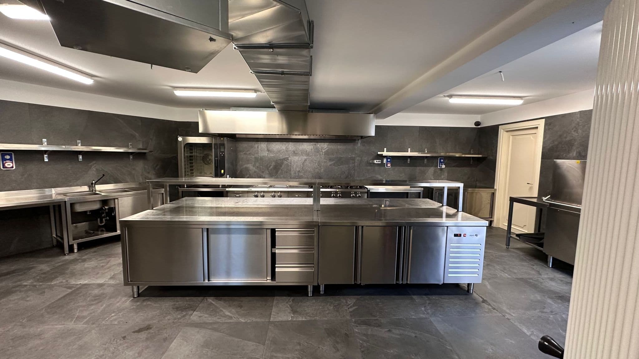 A fully equipped professional kitchen supports private chef service, delivering elevated Italian cuisine tailored to guest preferences. The opulent formal dining room provides a spectacular setting for candlelit dinners, while terraces and garden dining areas allow for refined al fresco meals overlooking the lake. A wine cellar houses a curated collection suitable for private tastings and formal events.