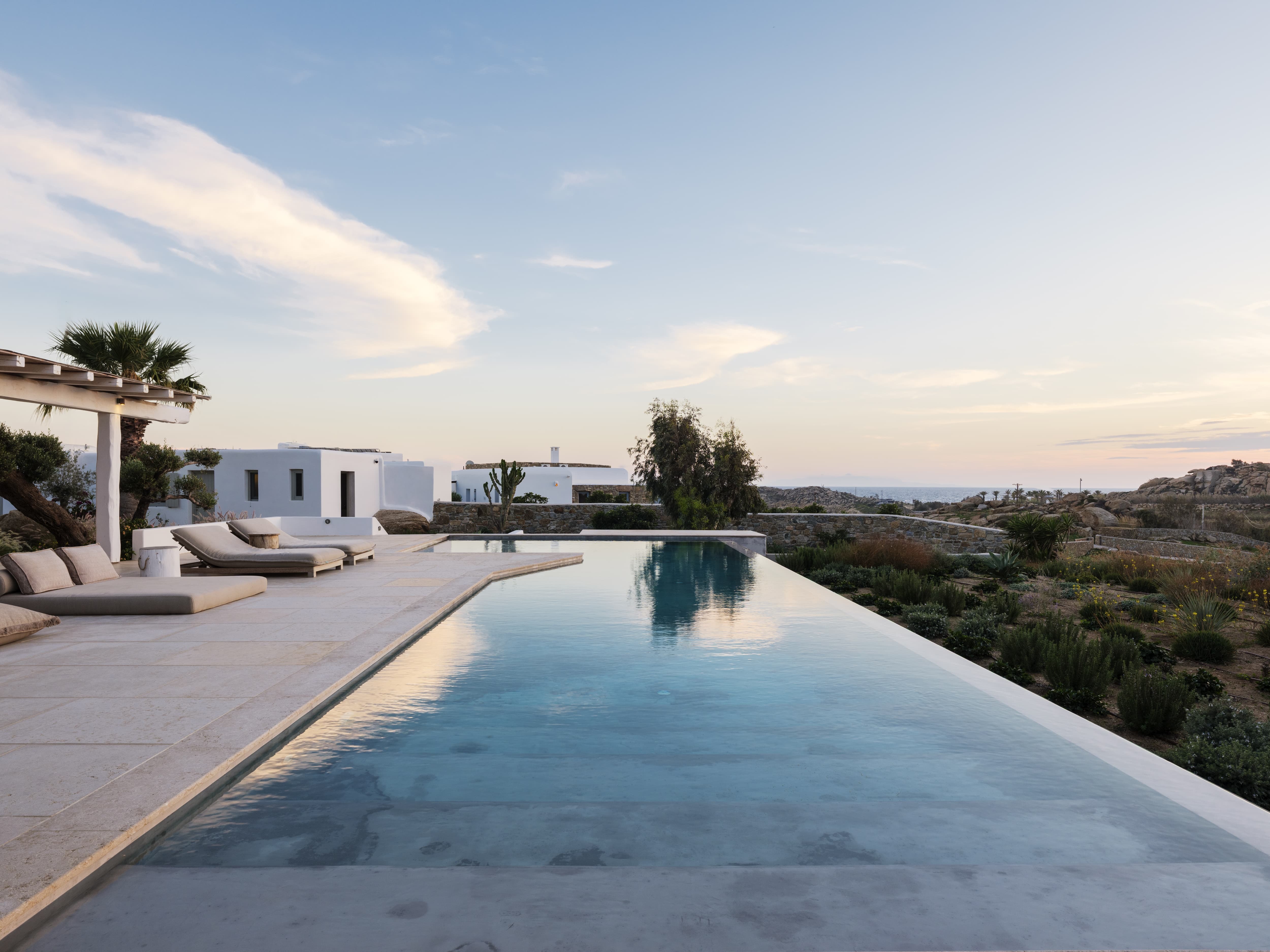 Set just above the golden curve of Paraga Beach, Villa Calista Cove captures a softer, more relaxed side of Mykonos. From this elevated position, the island feels both close and distant, the energy of Scorpios and the shoreline below within reach, yet gently removed, allowing the villa to remain its own private escape.