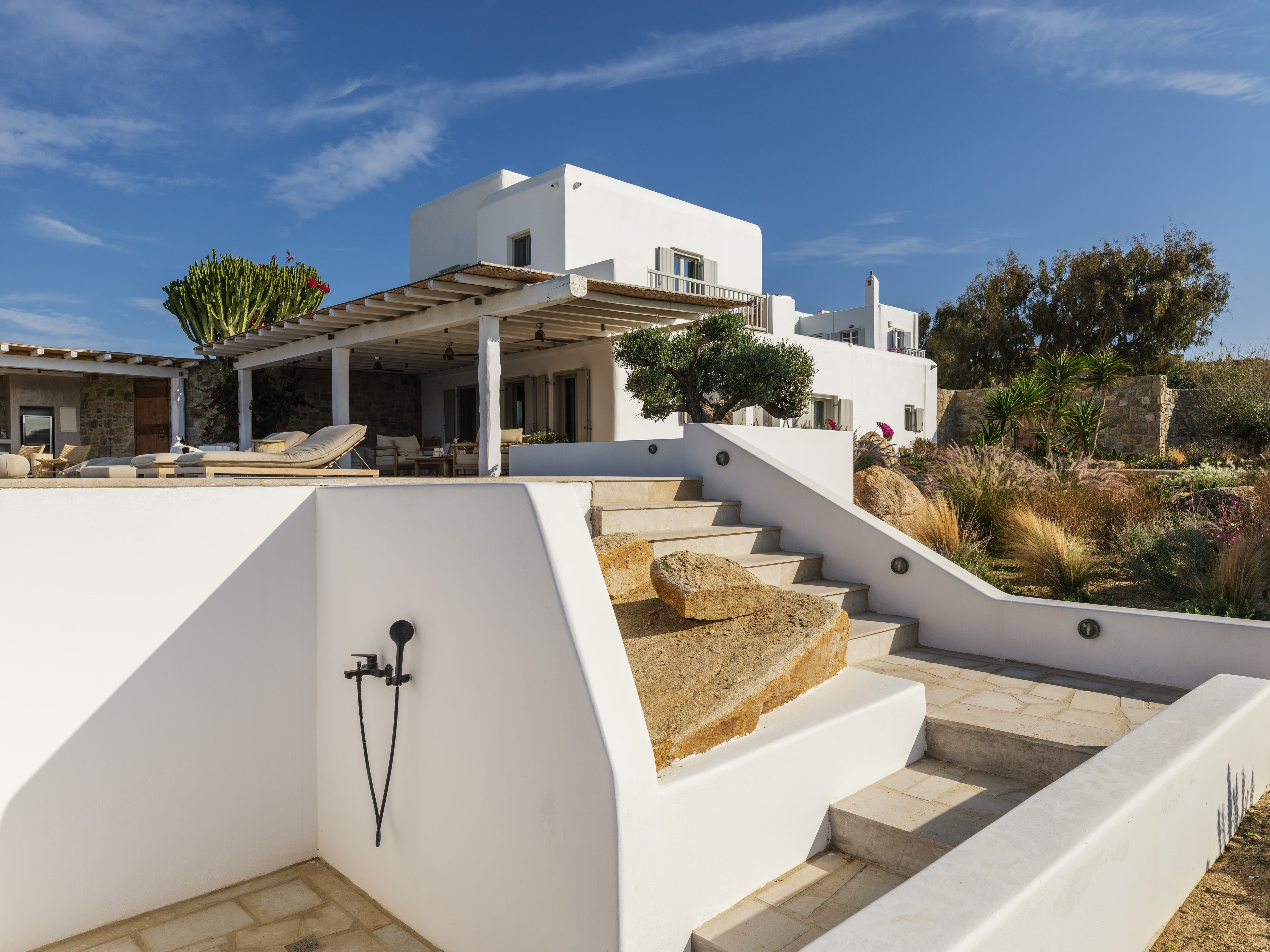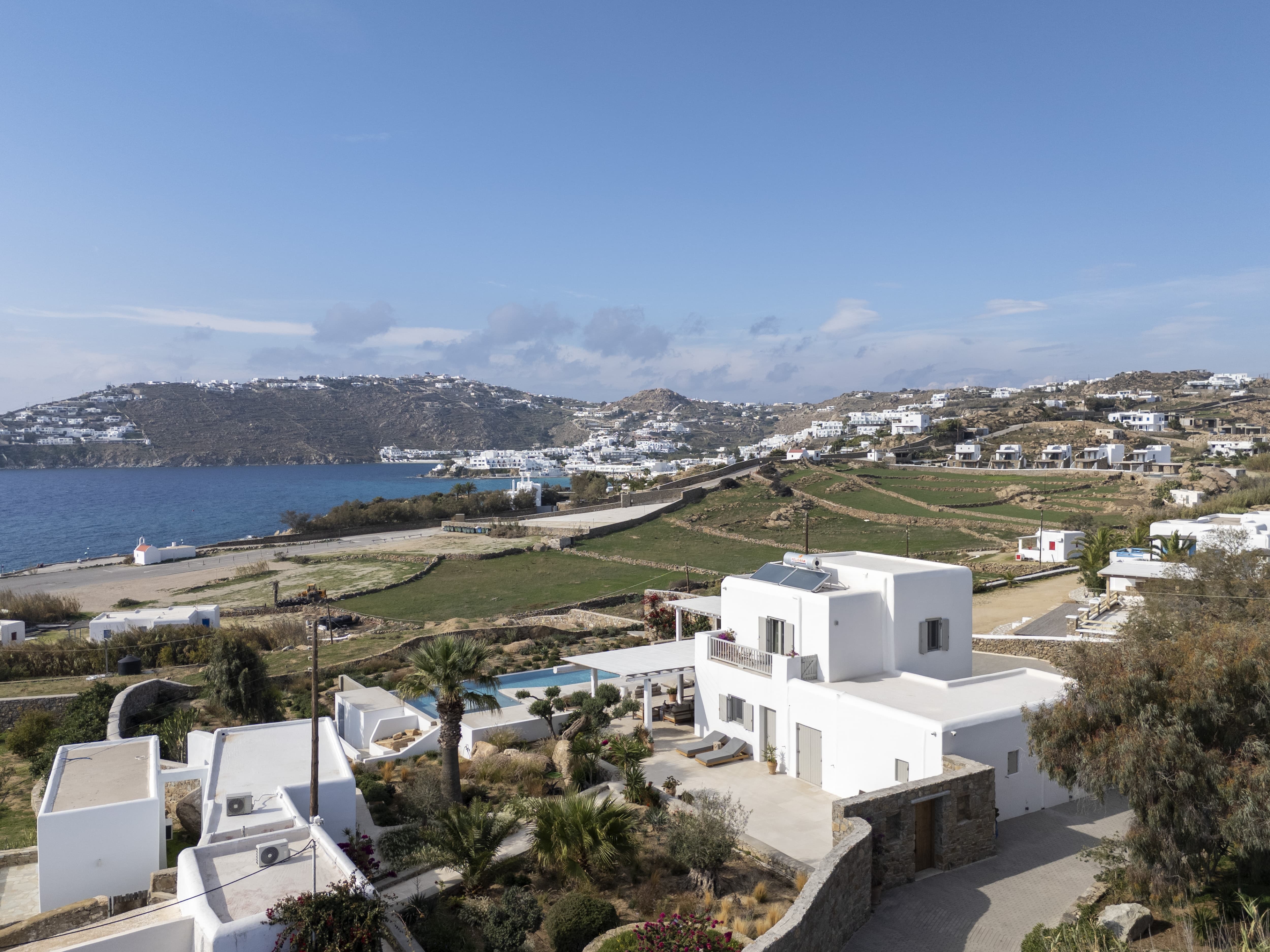 Mykonos Town is a short drive away, offering access to boutiques, restaurants, and nightlife, while other key beaches and destinations across the island remain easily reachable.