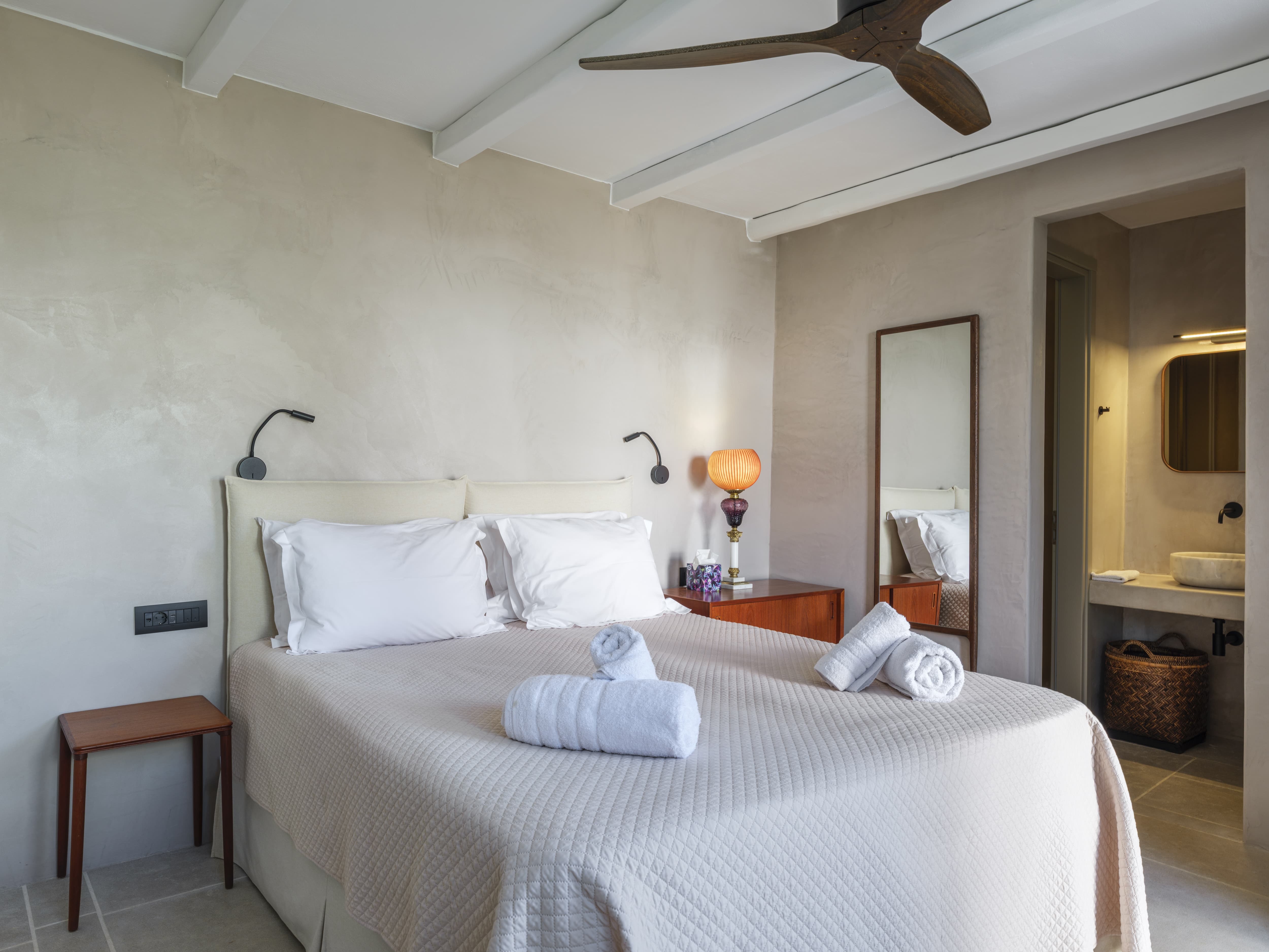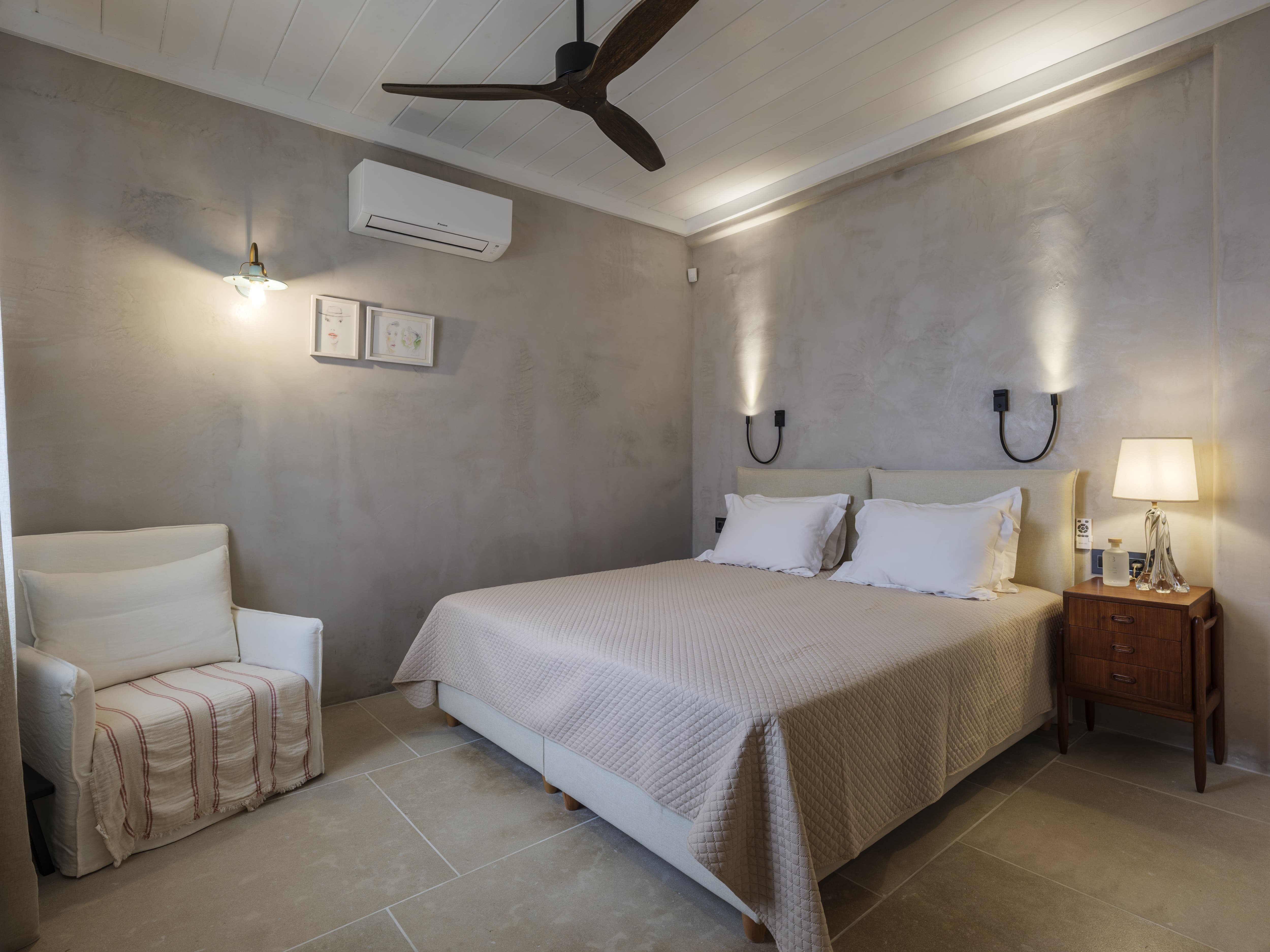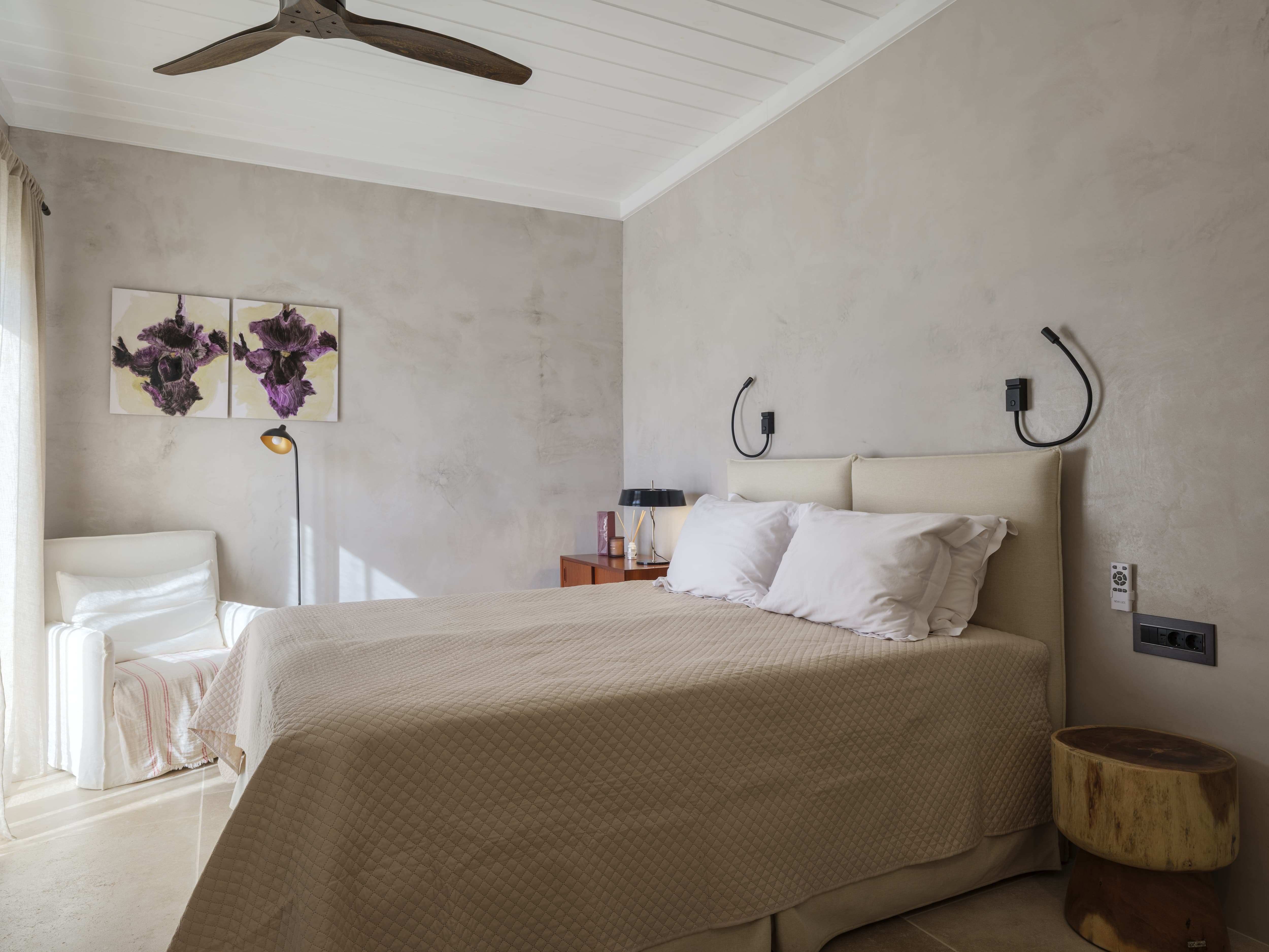 There is an immediate sense of ease here. The design leans into a refined bohemian aesthetic, natural textures, soft tones, and open, unforced spaces that feel lived in rather than staged. It is a villa that invites you to settle quickly, to slow down, and to move through the day without structure.