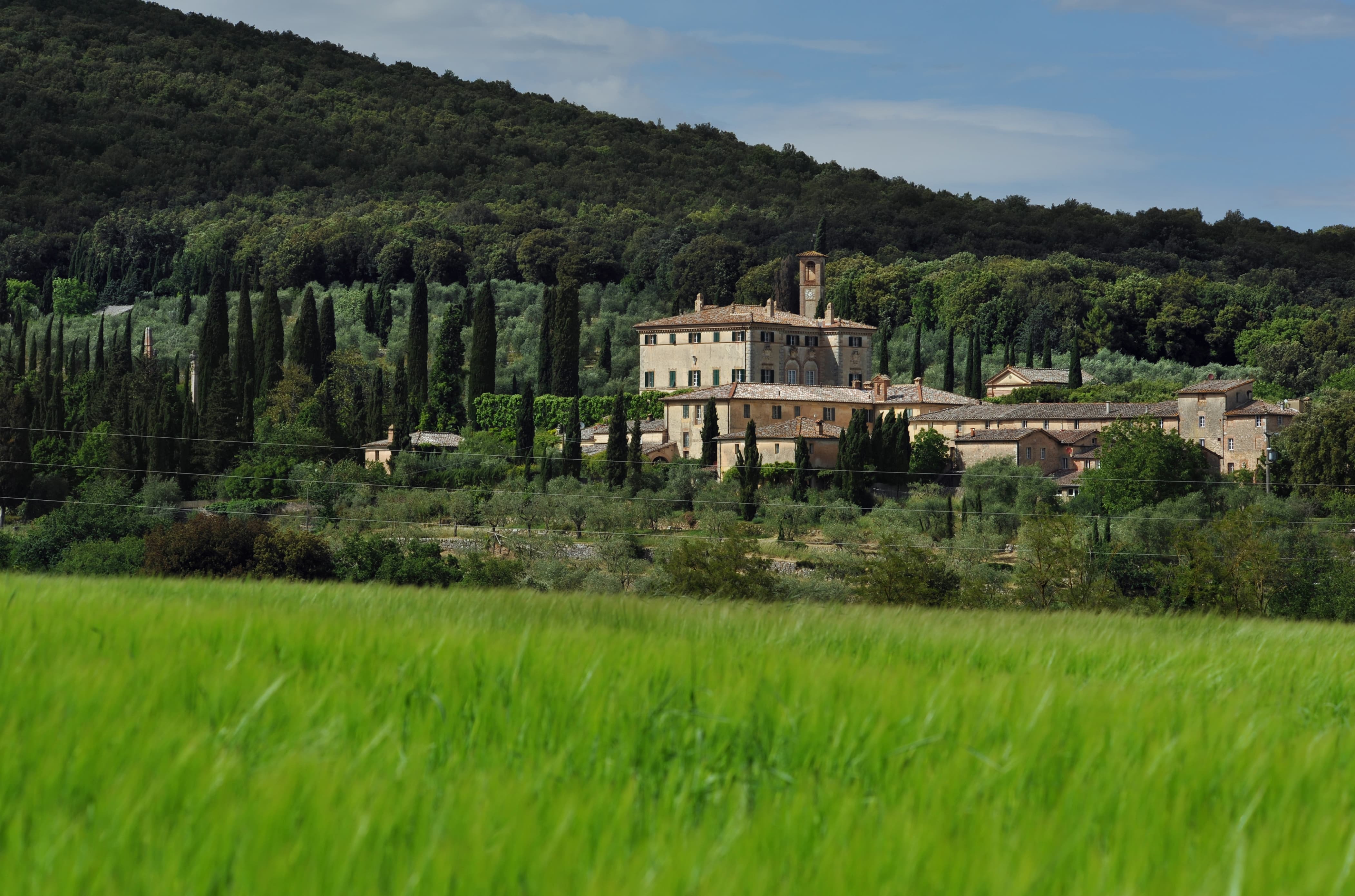 Located near Siena in Italy, the estate sits within 165 acres of private Tuscan countryside. Florence Airport is approximately 1 hour and 15 minutes away by car, while Pisa International Airport can be reached in around 2 hours. A car is recommended for exploring the Chianti region, medieval villages, and surrounding vineyards. Private transfers, chauffeurs, and guided tours can be arranged upon request.