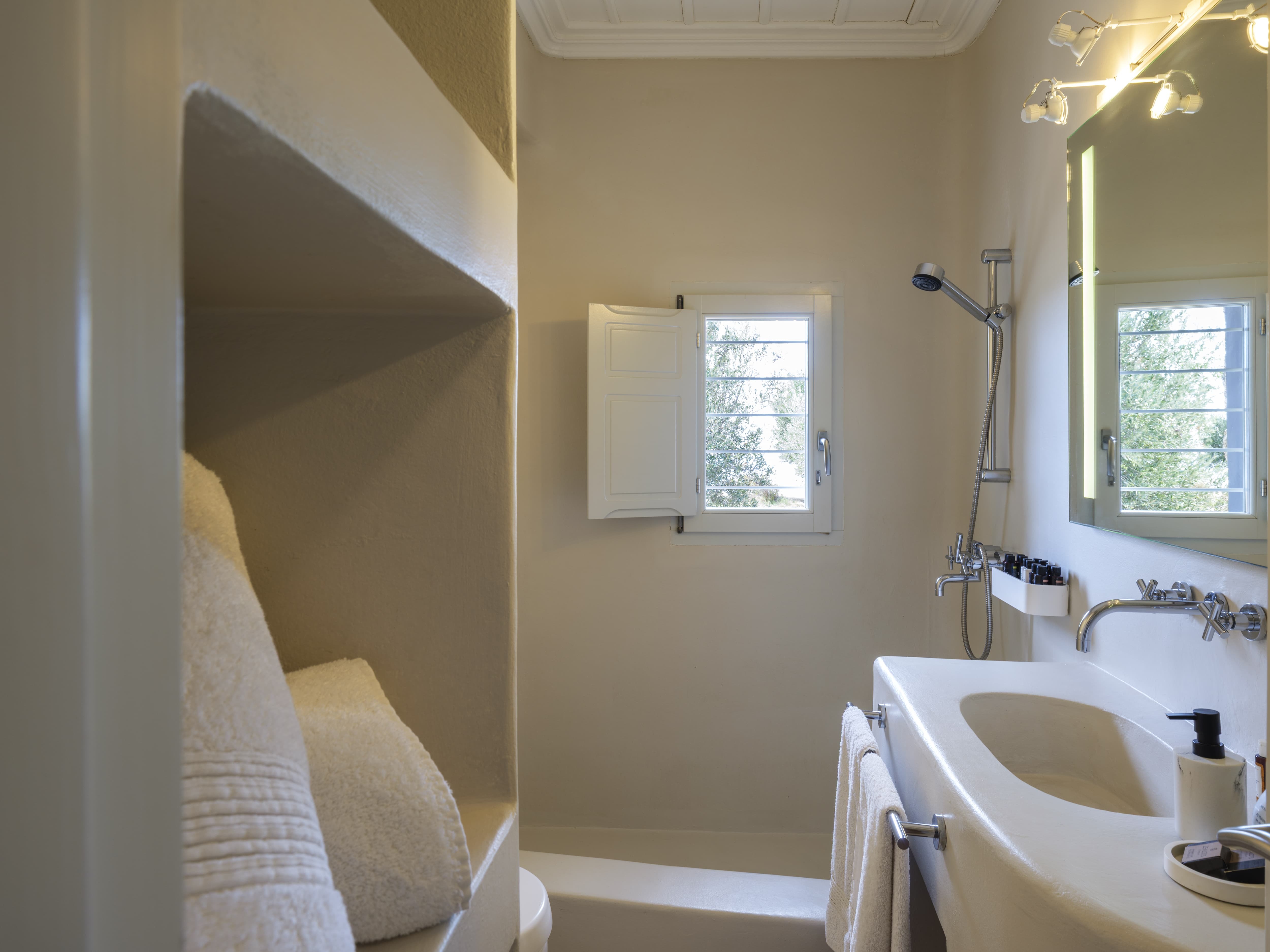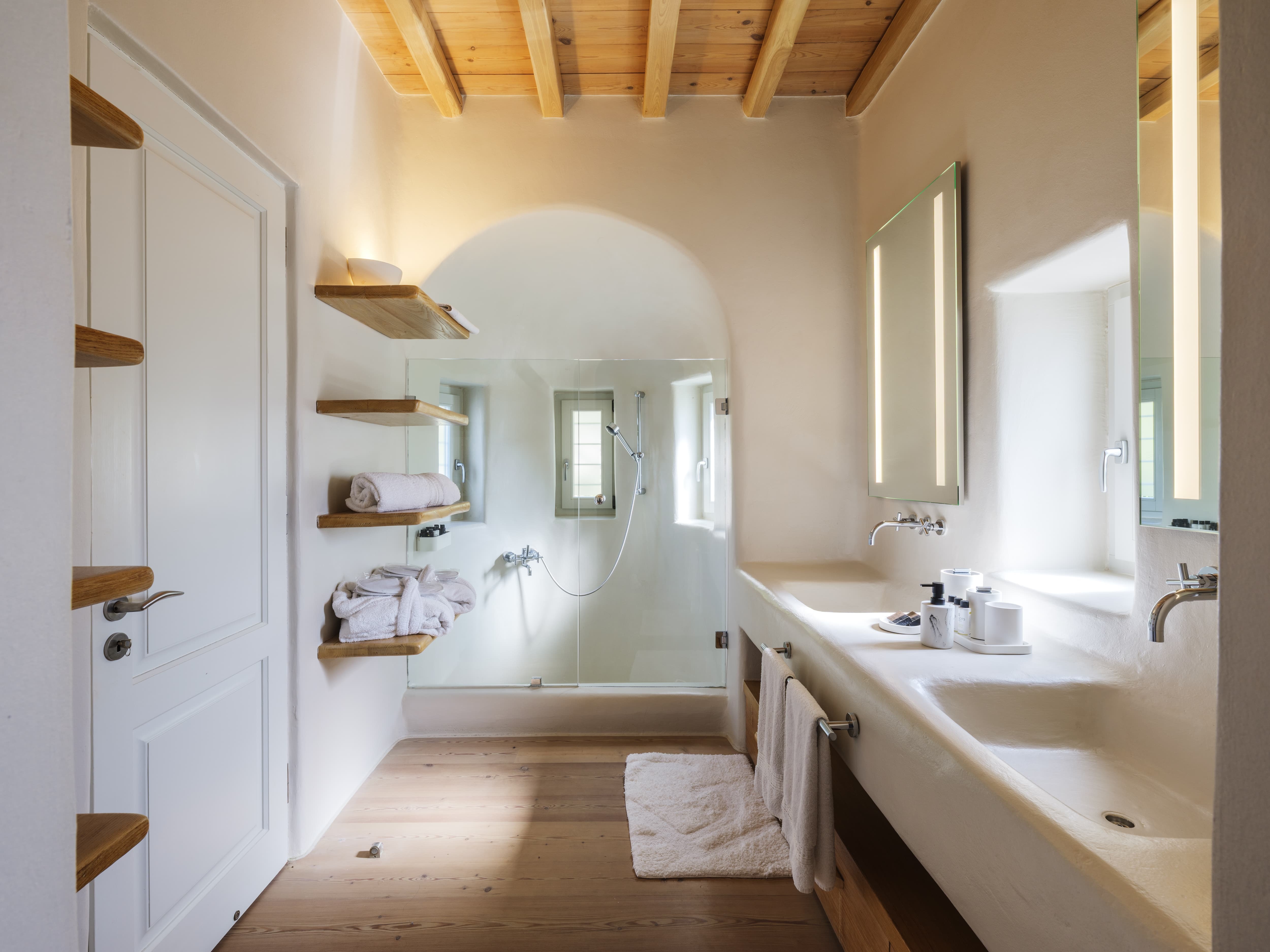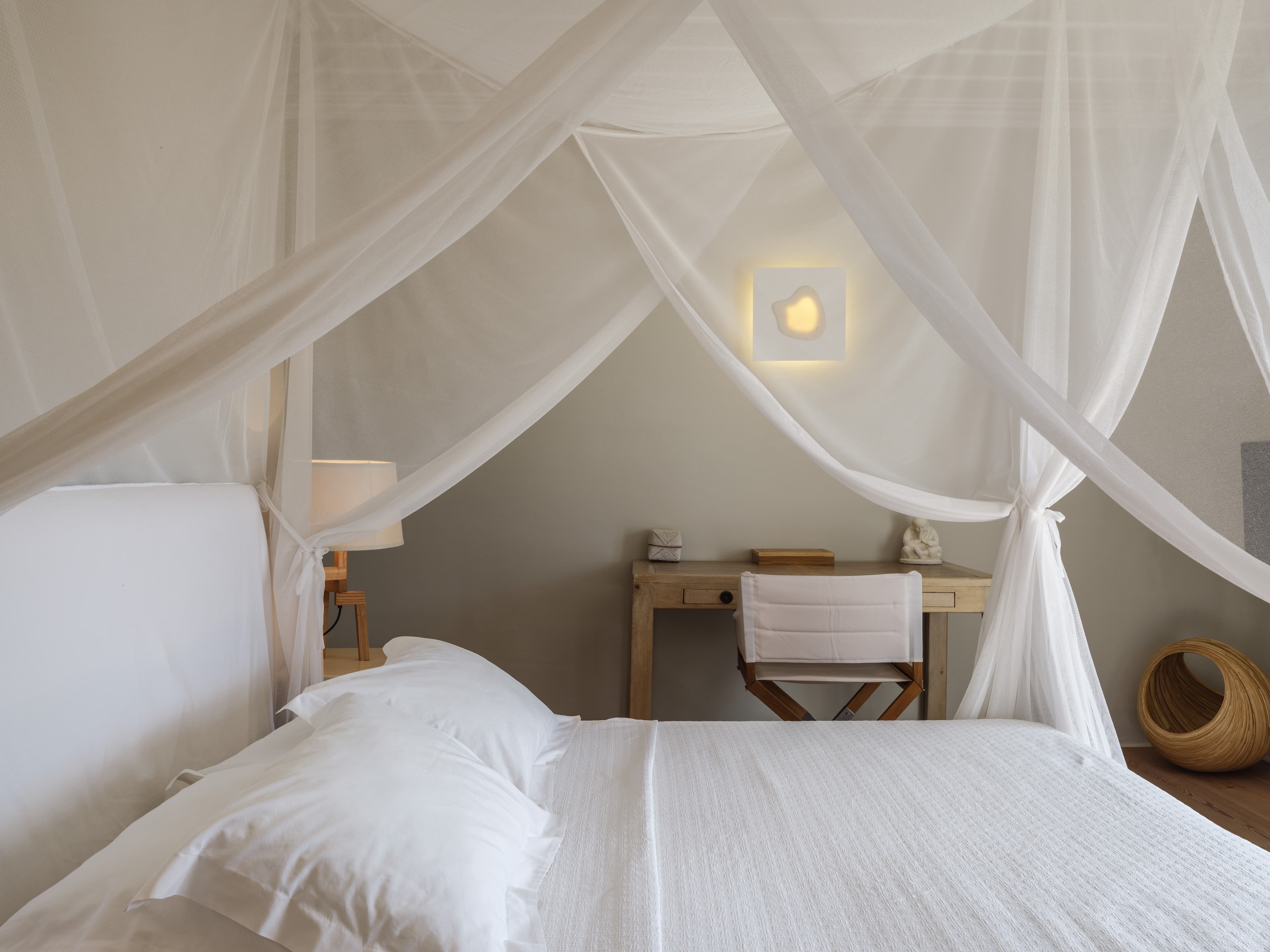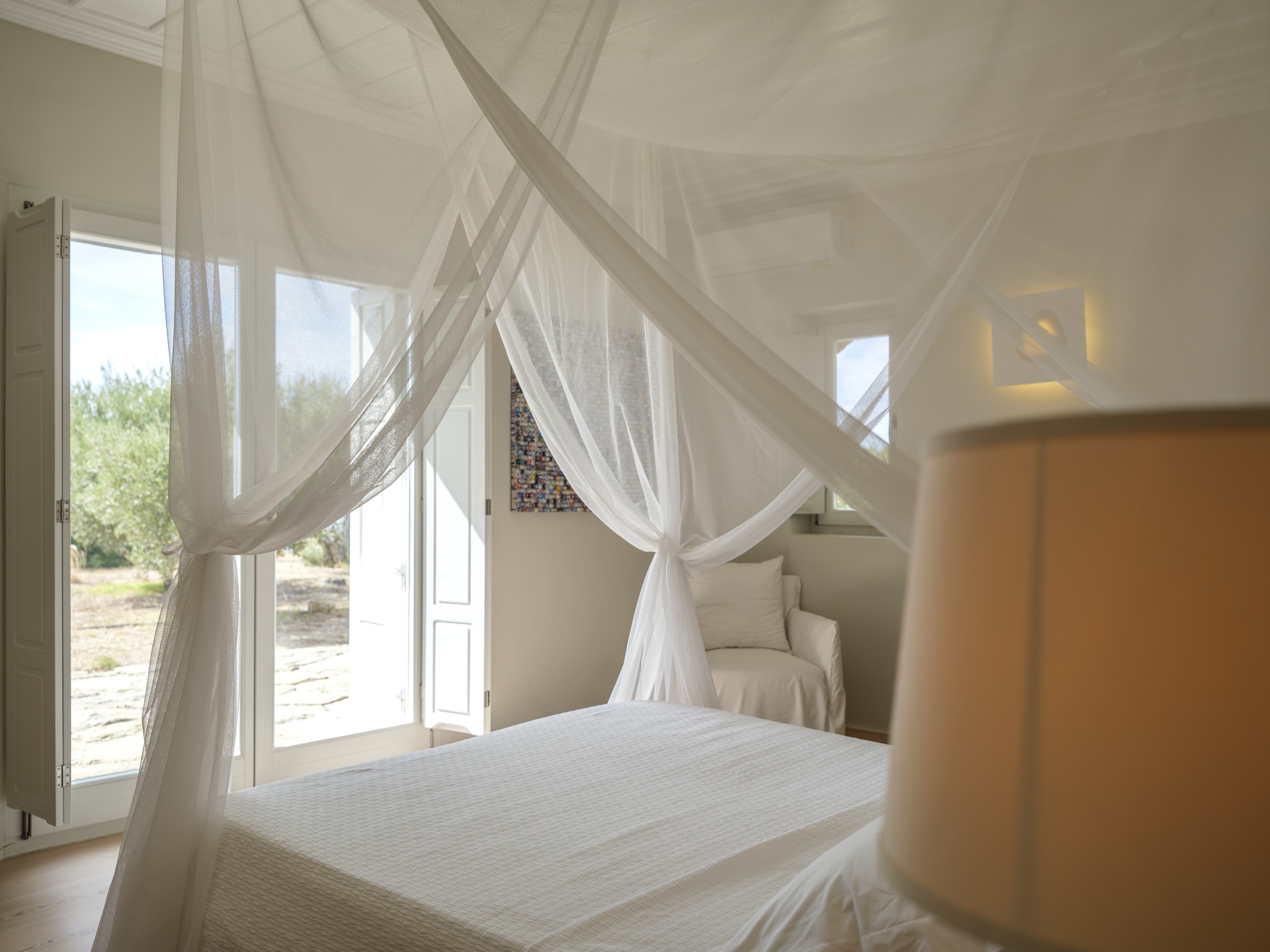 Ten well-appointed bedrooms arranged across the main villa and an independent guest house, offering flexibility and privacy for larger groups. Each bedroom features an en-suite bathroom, sea views, and access to outdoor spaces or balconies. Laundry and housekeeping are managed by the in-house team, with daily cleaning and maintenance included throughout your stay.