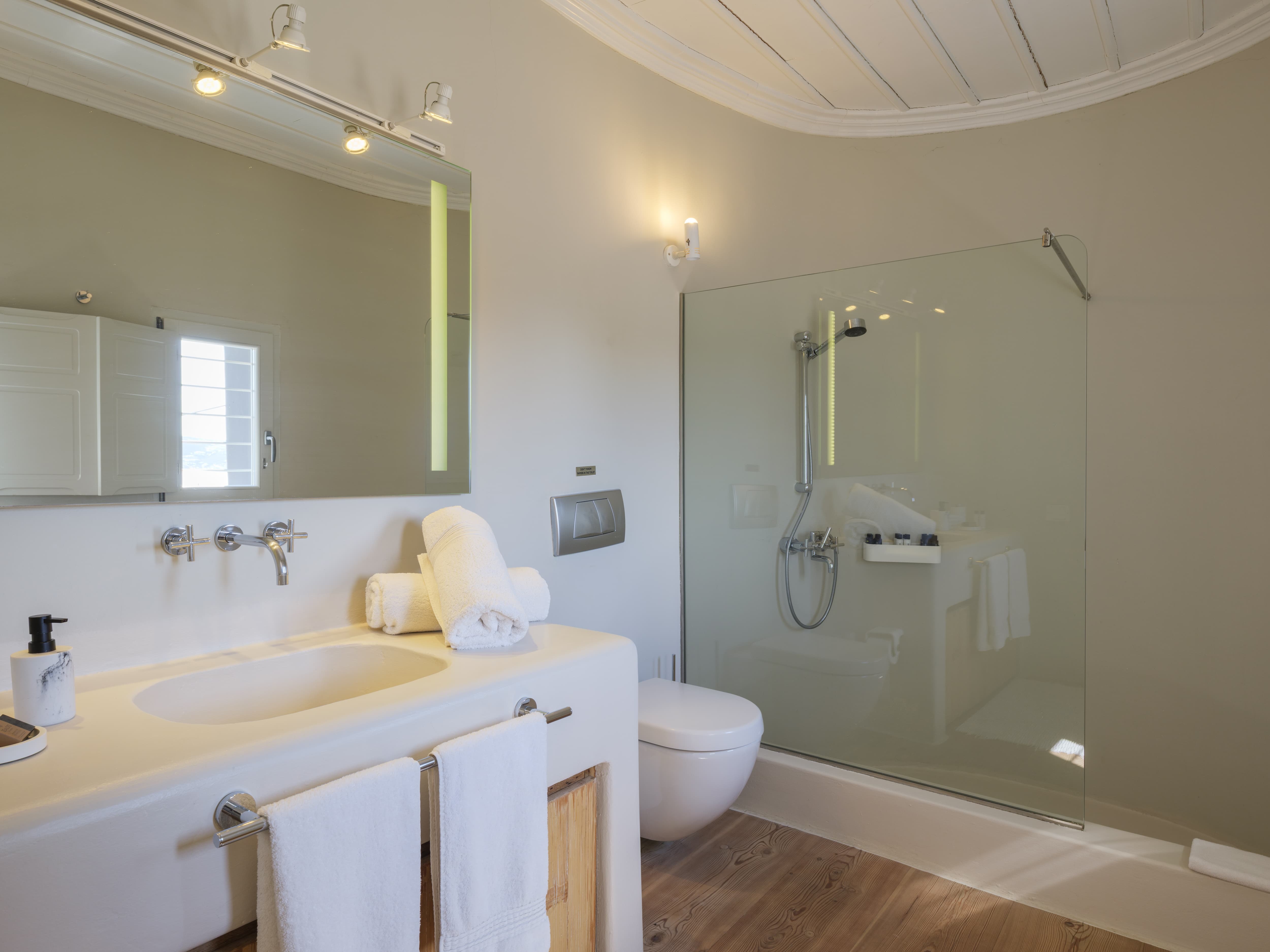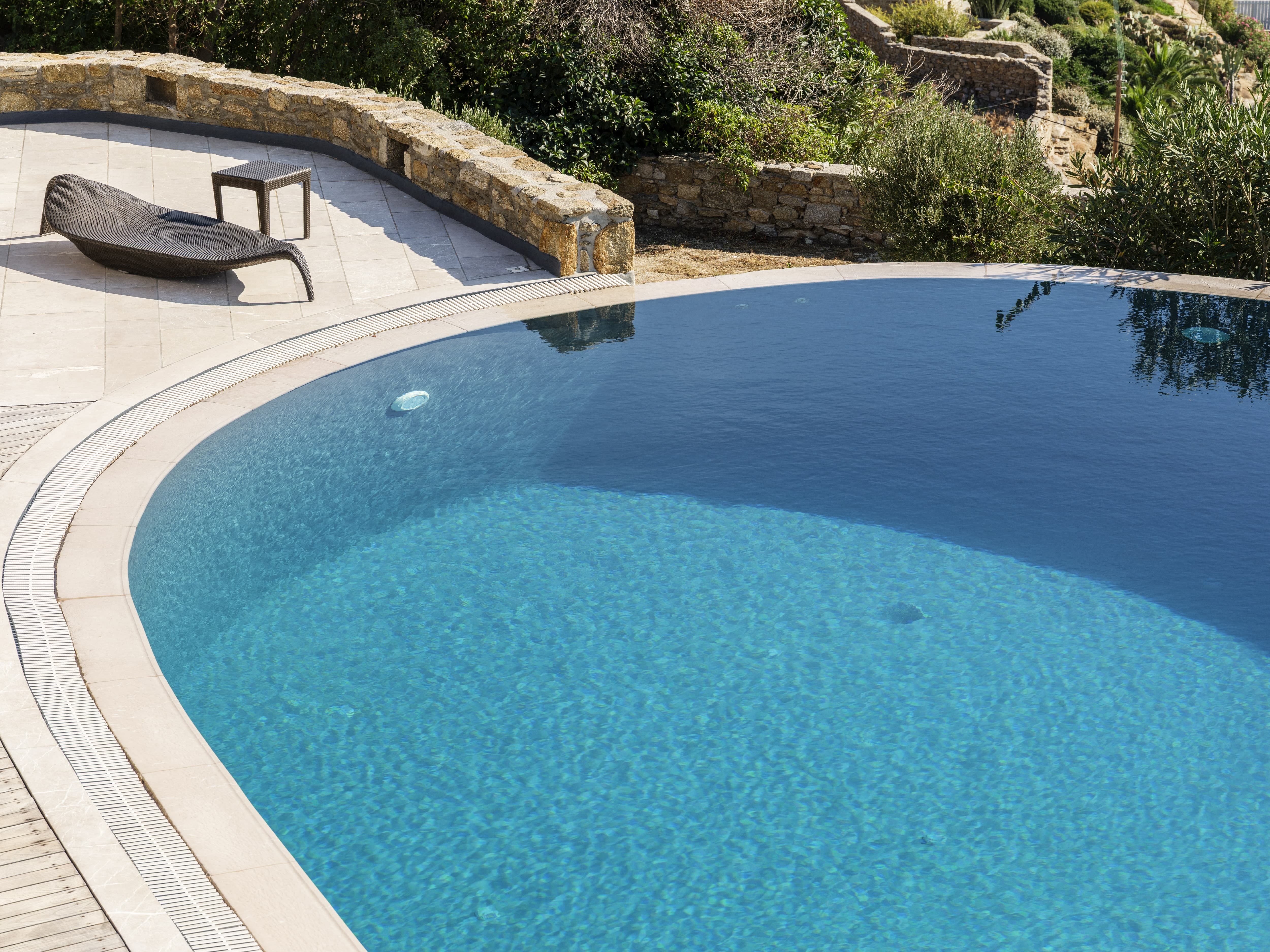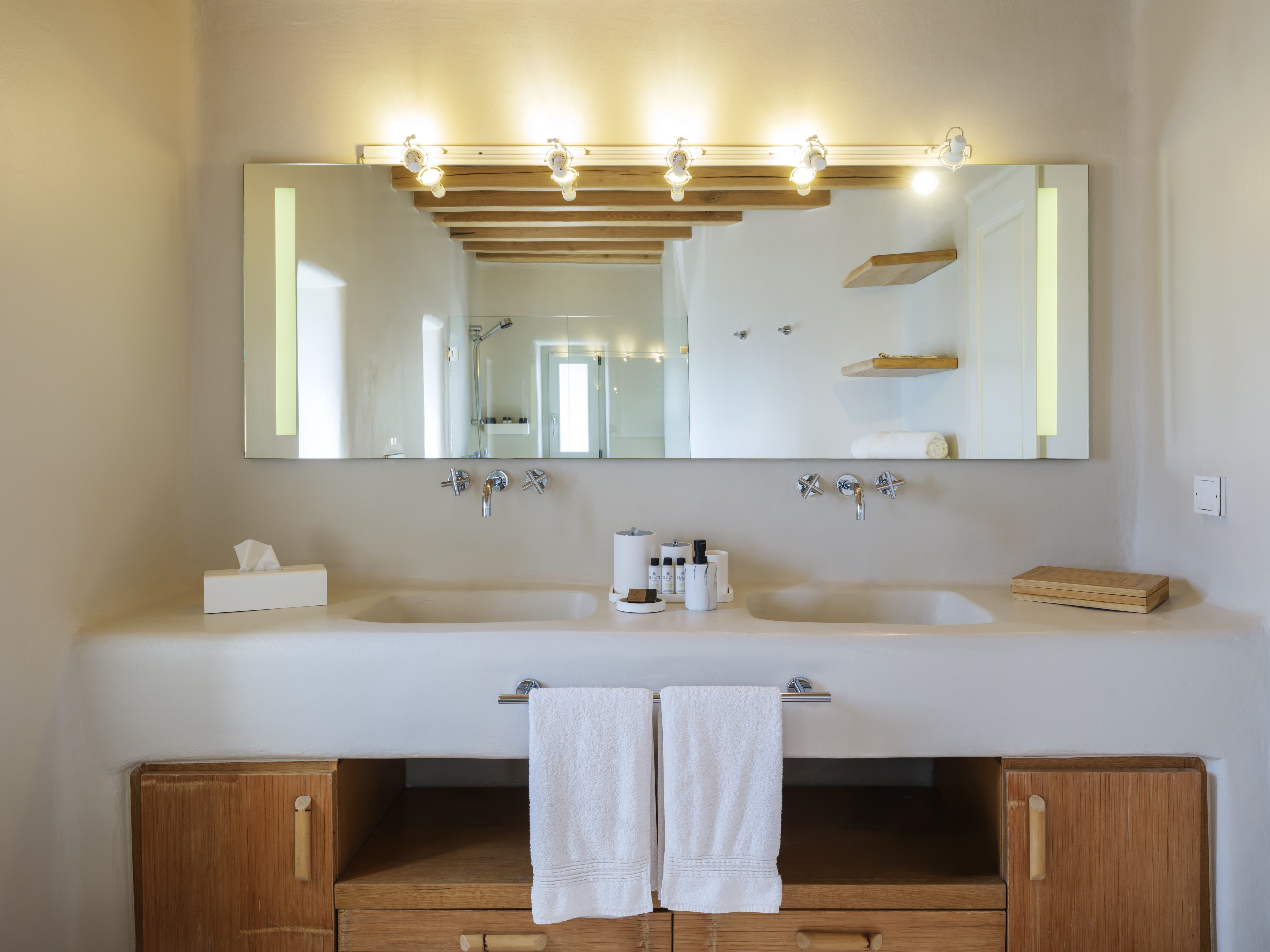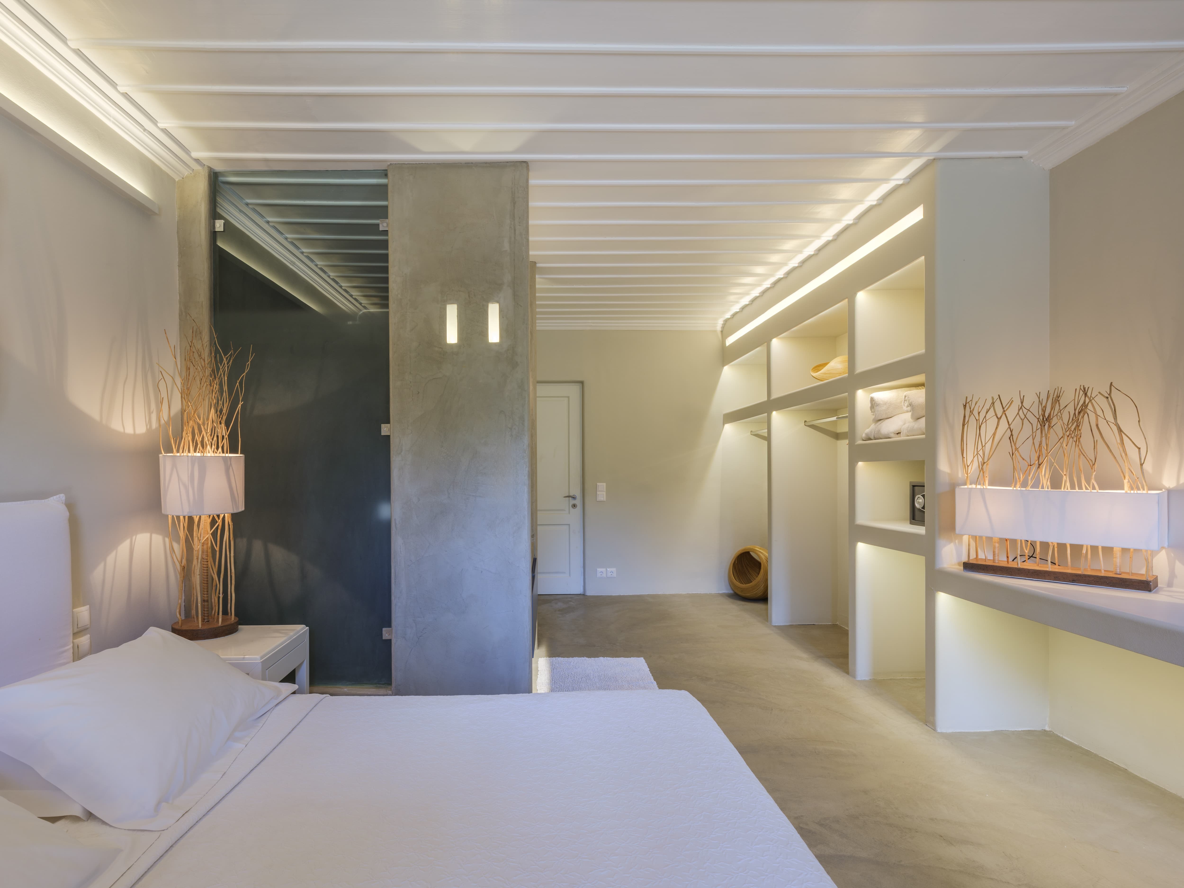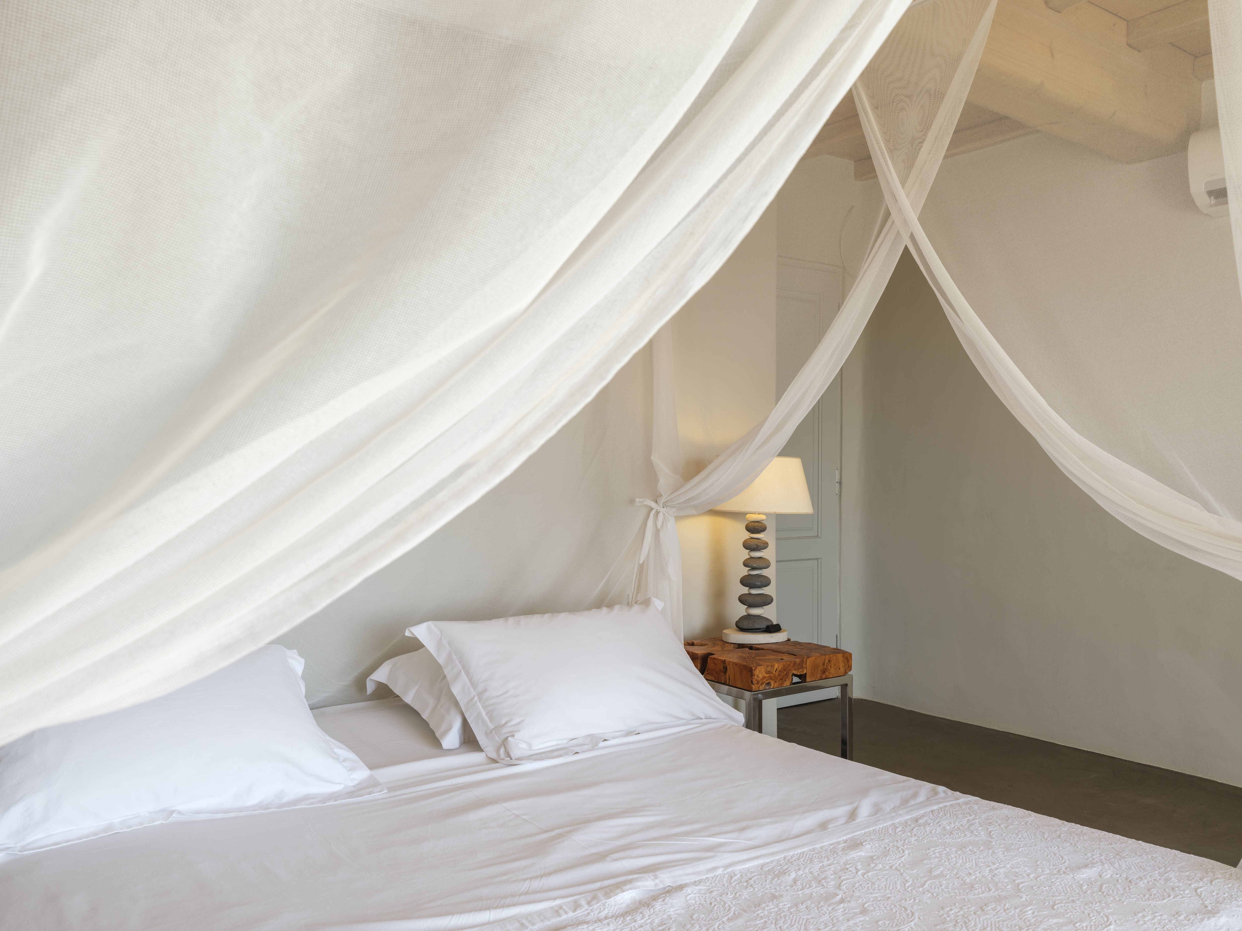 Ten well-appointed bedrooms arranged across the main villa and an independent guest house, offering flexibility and privacy for larger groups. Each bedroom features an en-suite bathroom, sea views, and access to outdoor spaces or balconies. Laundry and housekeeping are managed by the in-house team, with daily cleaning and maintenance included throughout your stay.