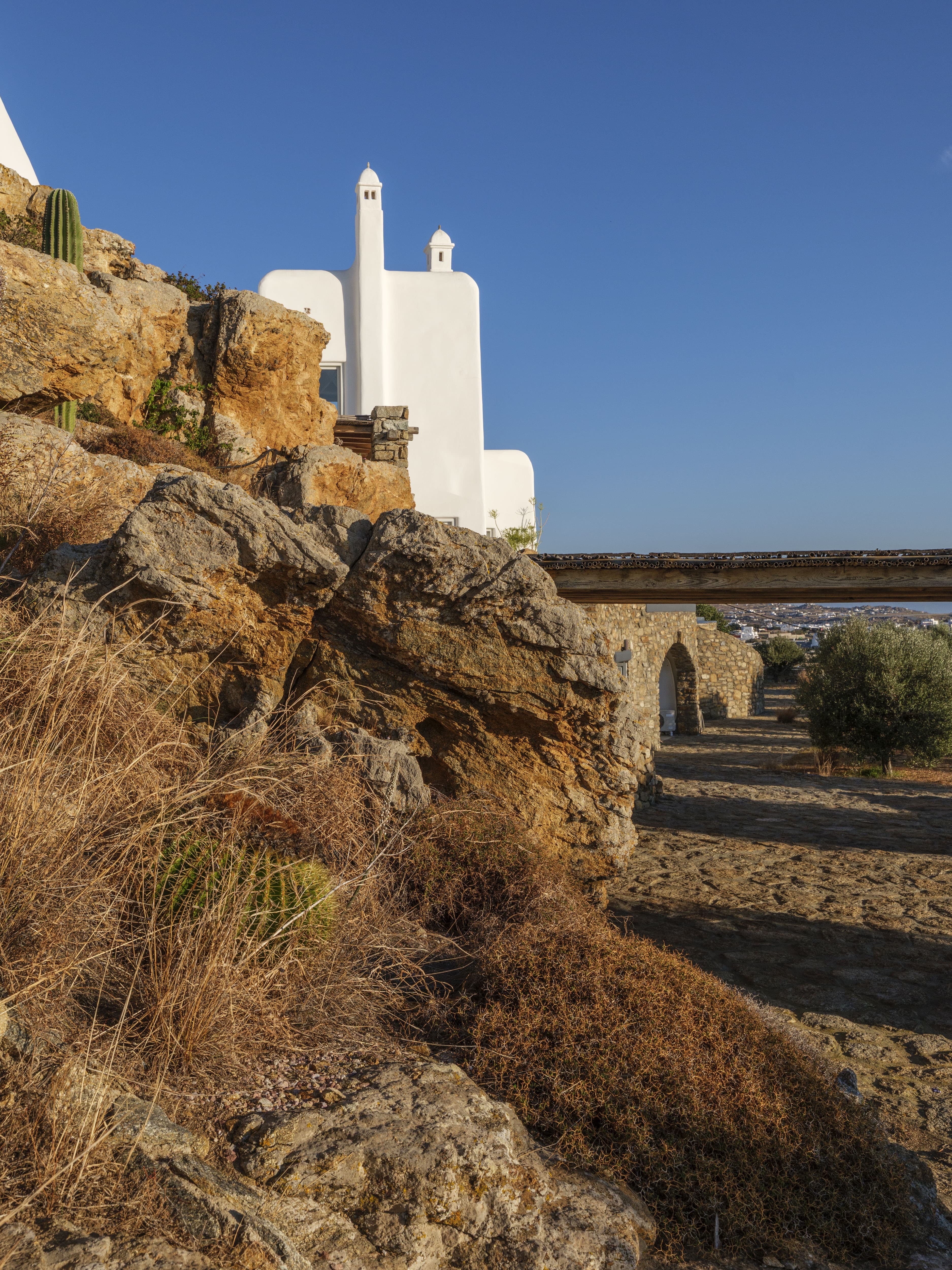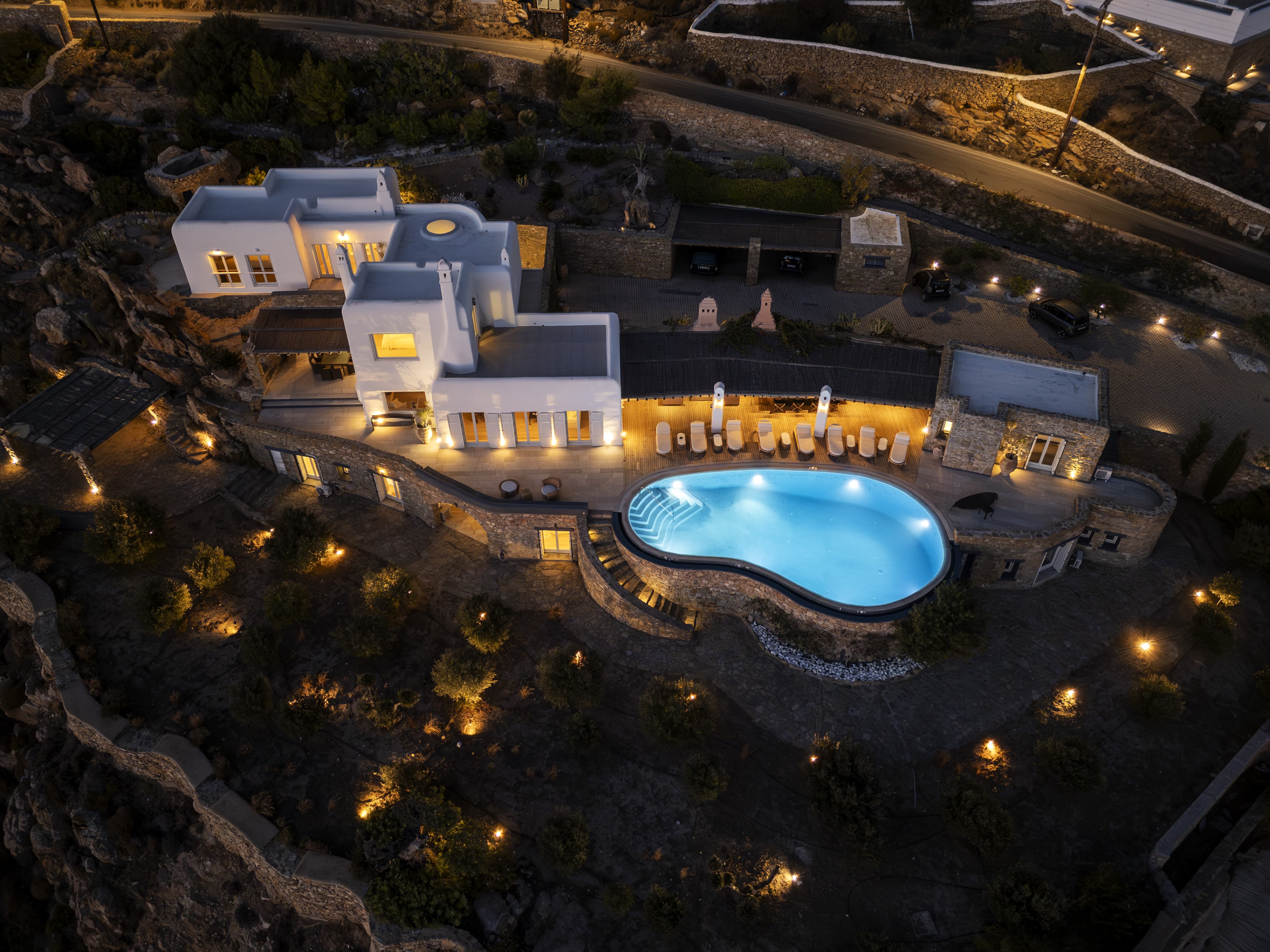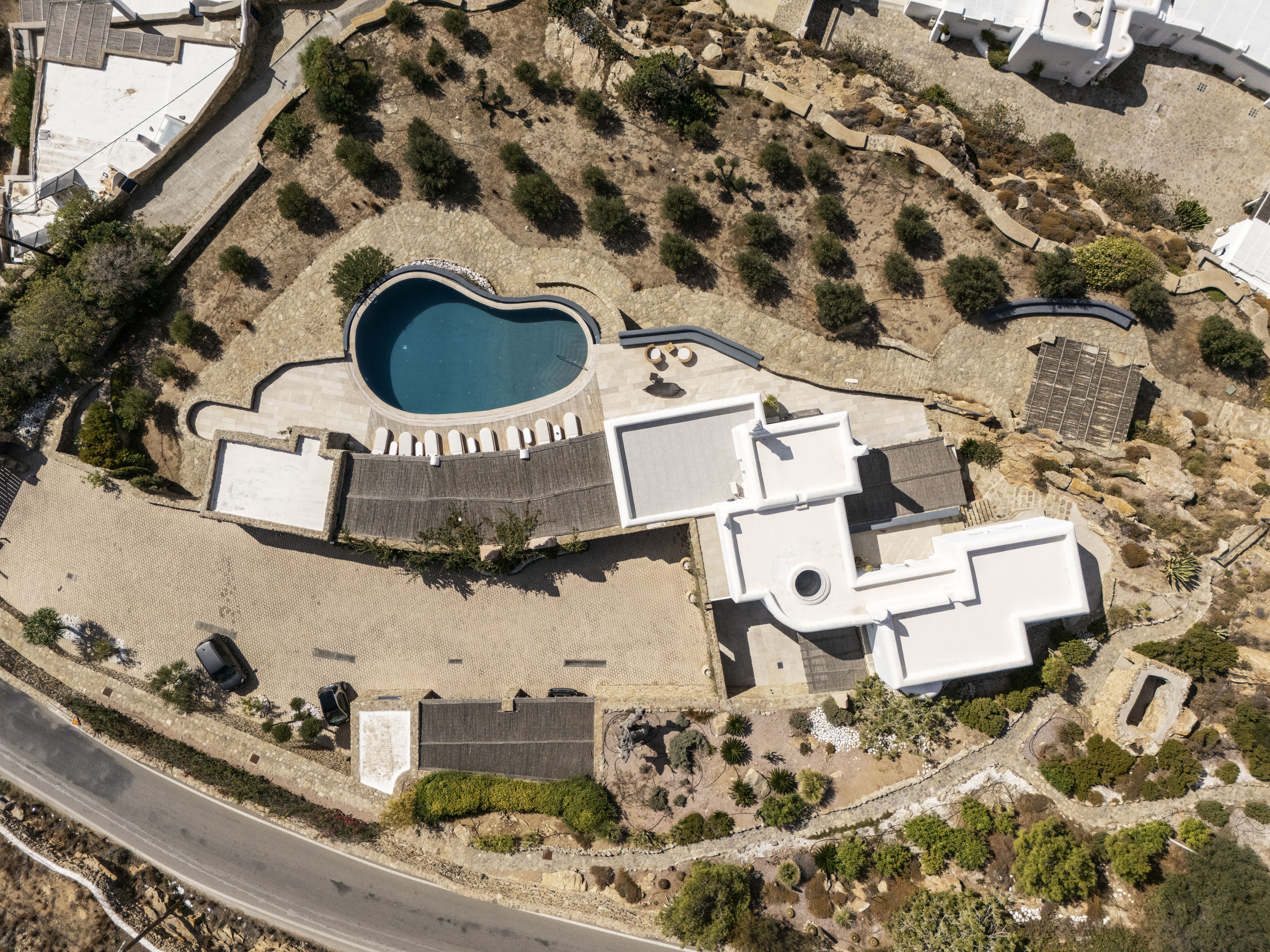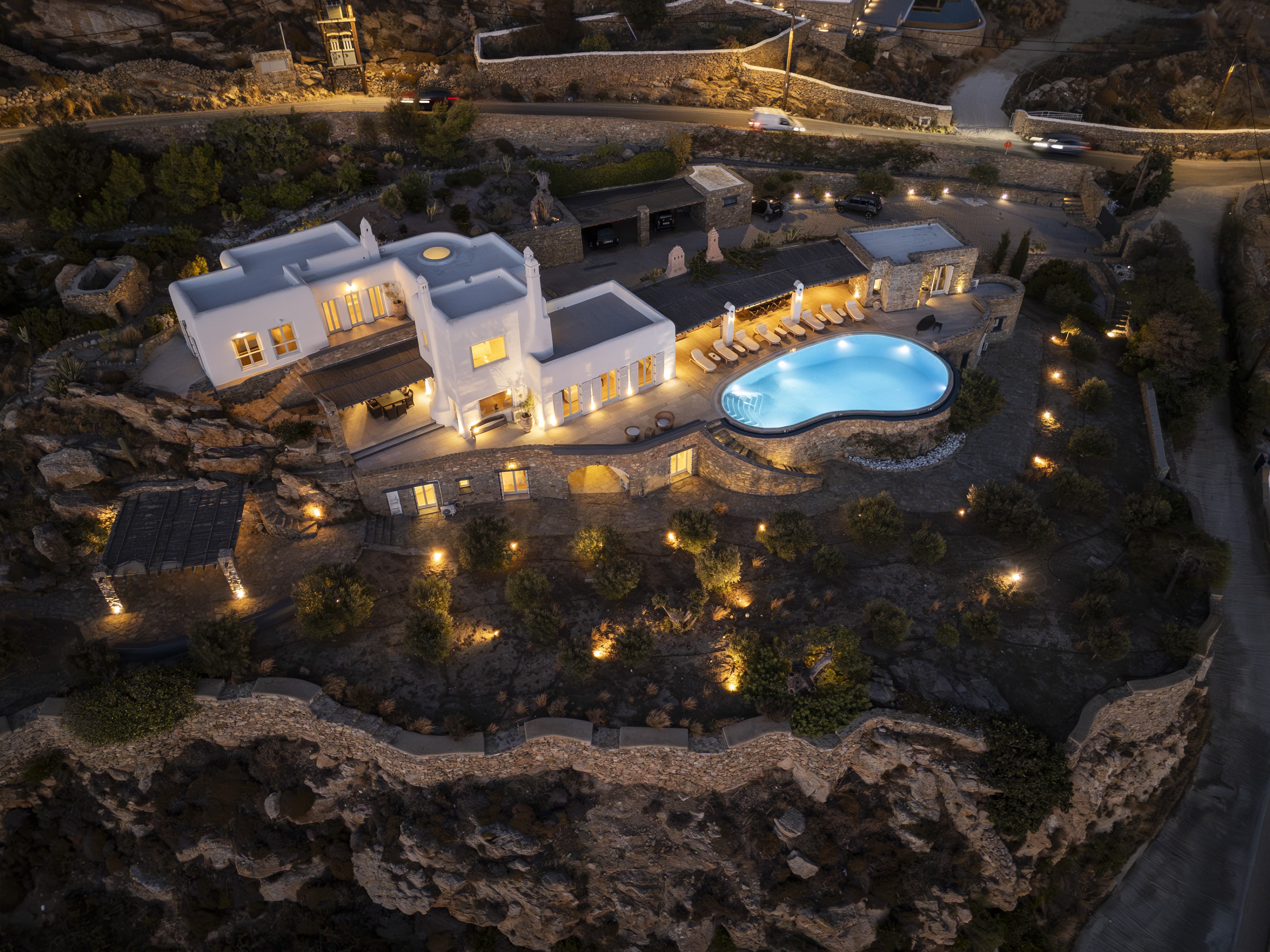 Positioned in Agia Sofia, the villa offers a rare combination of privacy and proximity to Mykonos Town. • Elevated hillside setting with panoramic sea, sunset, and port views • Minutes from Mykonos Town • Easy access to beaches, restaurants, and nightlife • Quiet, private environment above the island’s main activity
