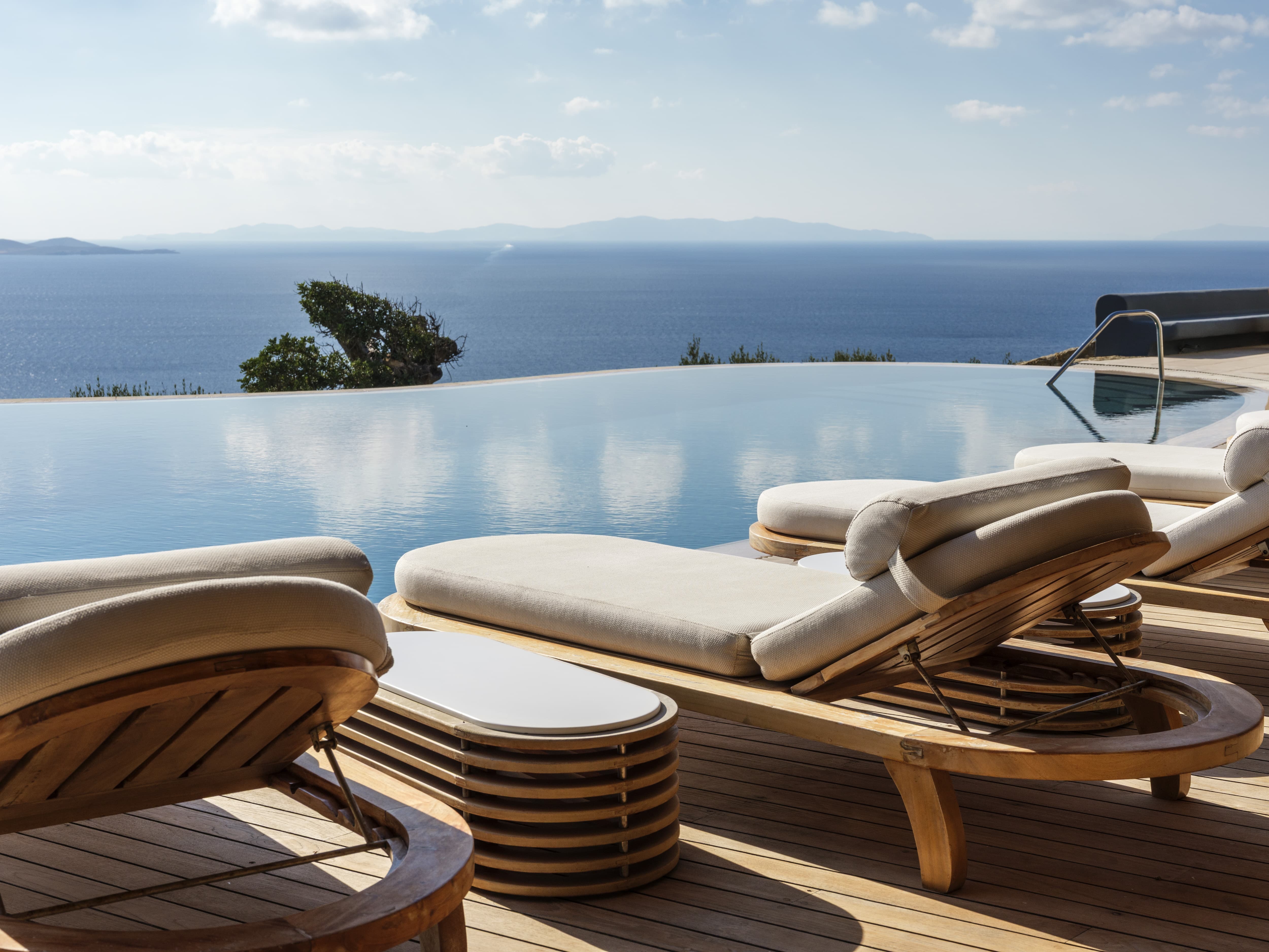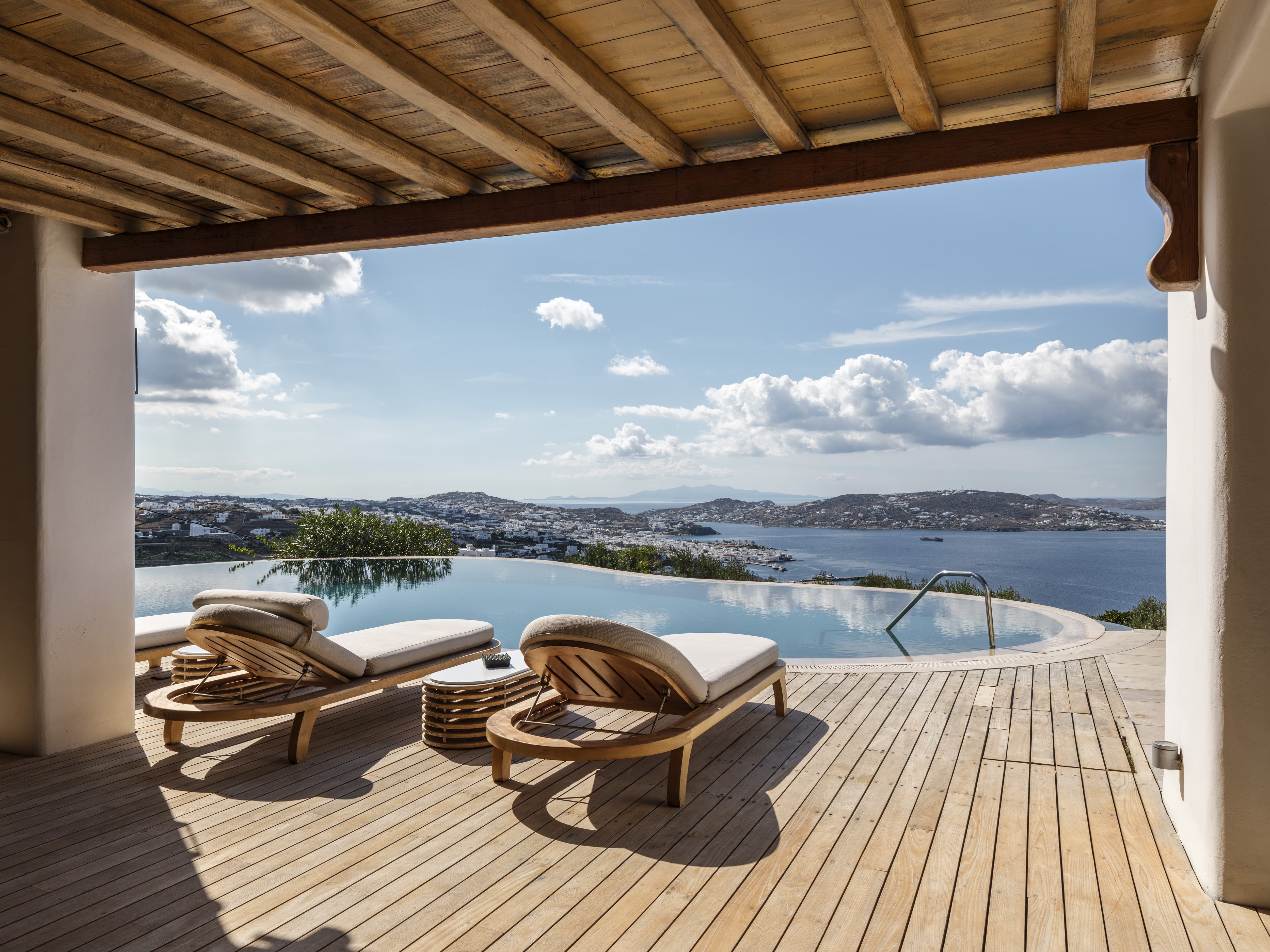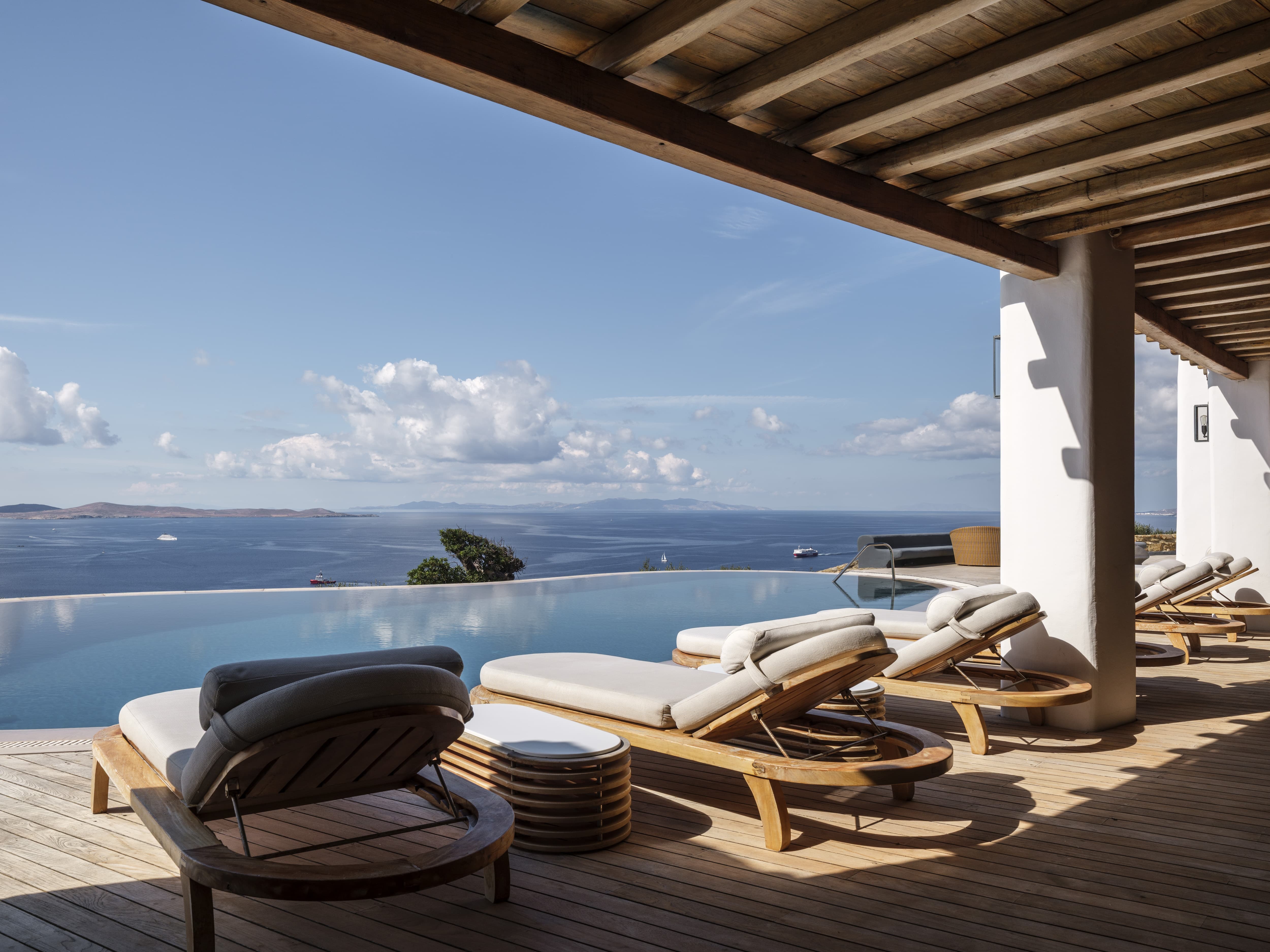 Set high above the coastline in Agia Sofia, Villa Elysian Cove offers a rare perspective over Mykonos. From this elevated position, the island unfolds beneath you, with uninterrupted views stretching across the Aegean, the port, and the shifting colours of the sunset that define each evening.