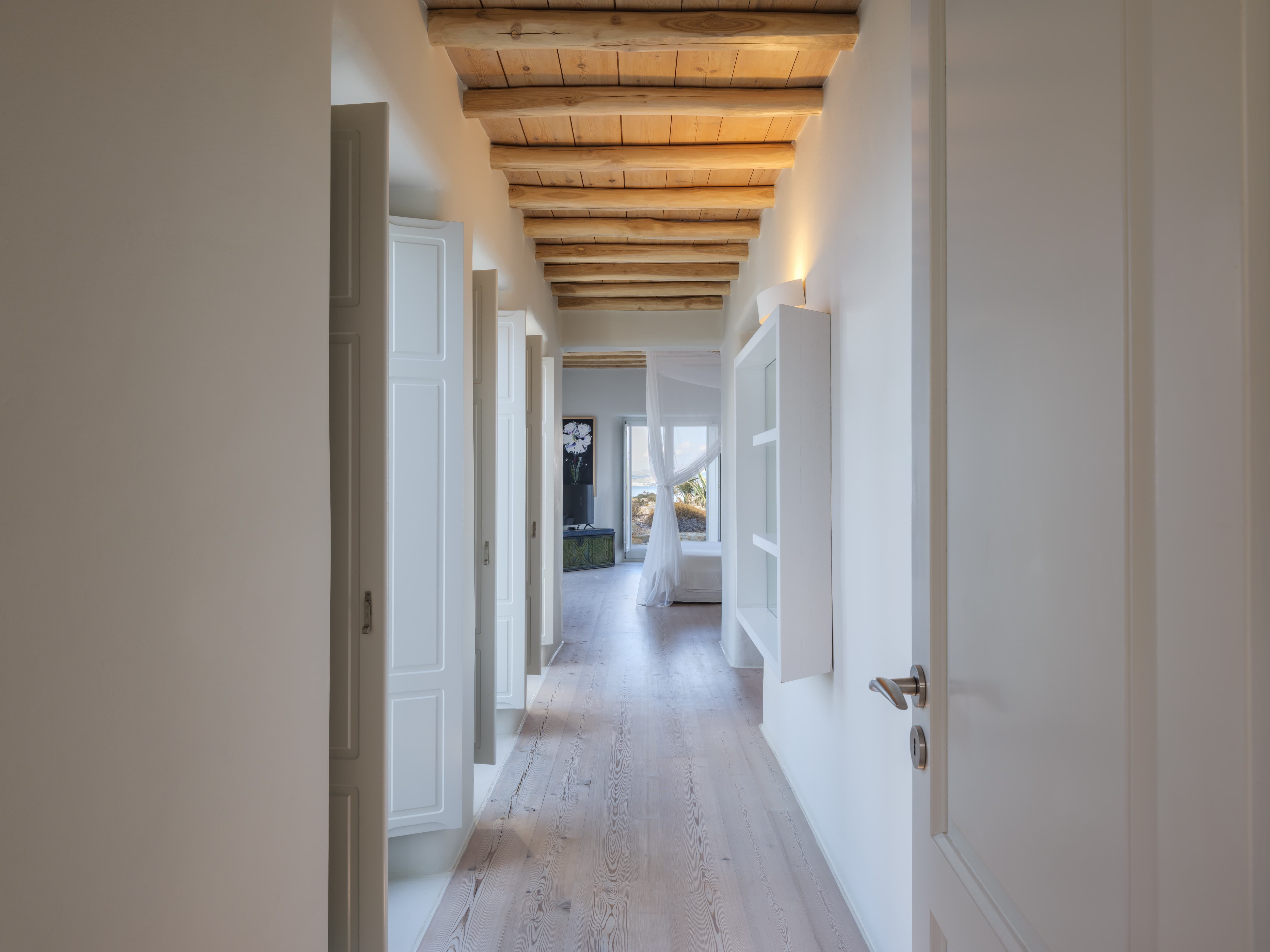 There is a quiet confidence to the villa. Designed for privacy and scale, it feels both expansive and composed, offering the sense of a private estate rather than a single residence. Despite its proximity to the energy of Mykonos Town, just minutes away, the villa remains entirely self-contained, a retreat where the outside world feels distant.