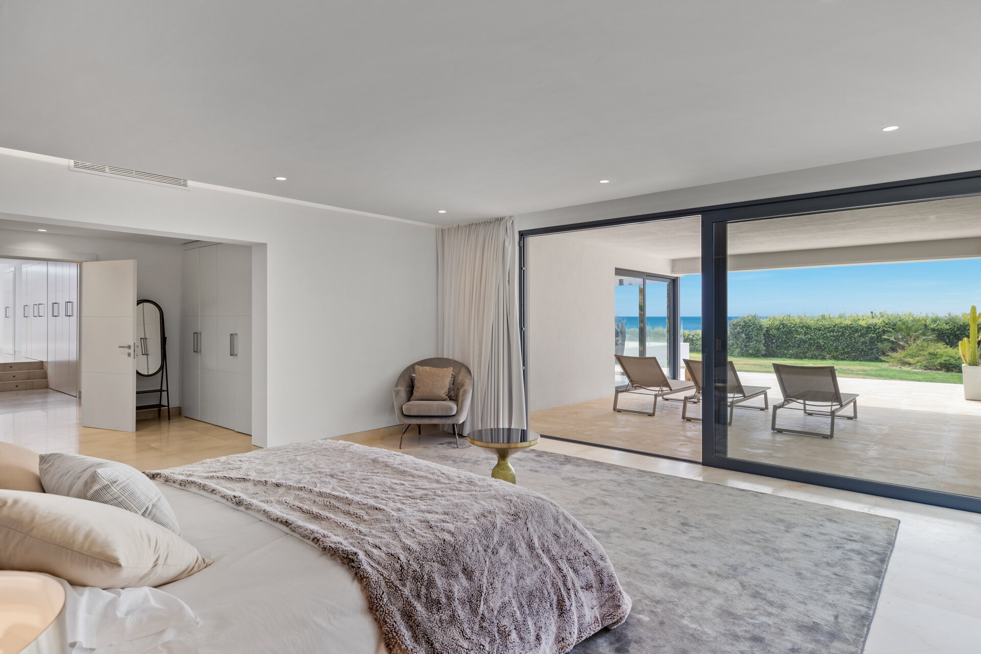 The villa accommodates up to twenty two guests across eleven ensuite bedrooms, each designed as a private coastal retreat. Suites are spacious and light filled, with many opening onto sea facing terraces or garden areas. Daily housekeeping is included, with laundry and linen services available on request for longer stays.