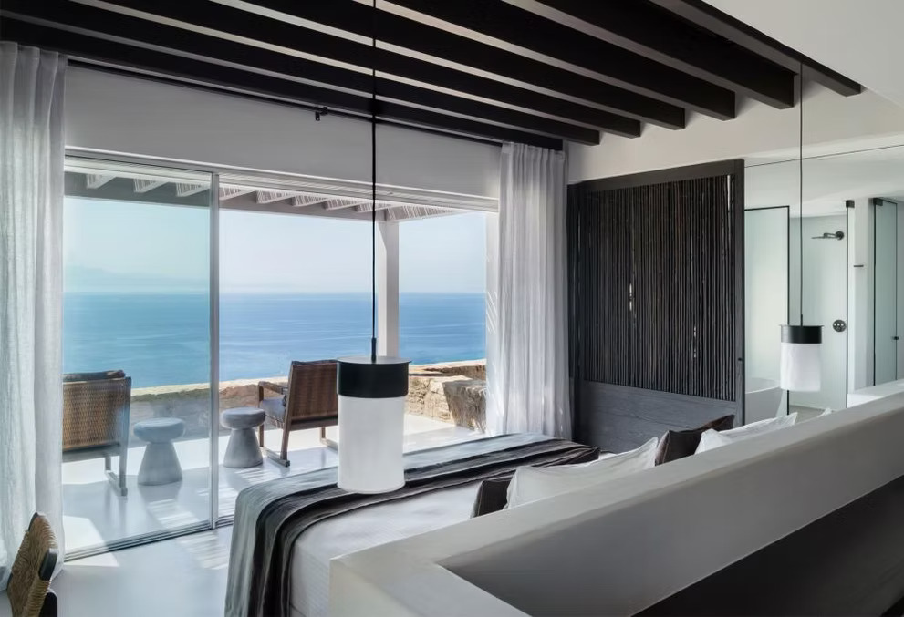 Nearby experiences include swimming and dining at Elia Beach, private yacht charters, water sports, wellness sessions, and easy access to Mykonos’ beach clubs, restaurants, and nightlife via short drives.