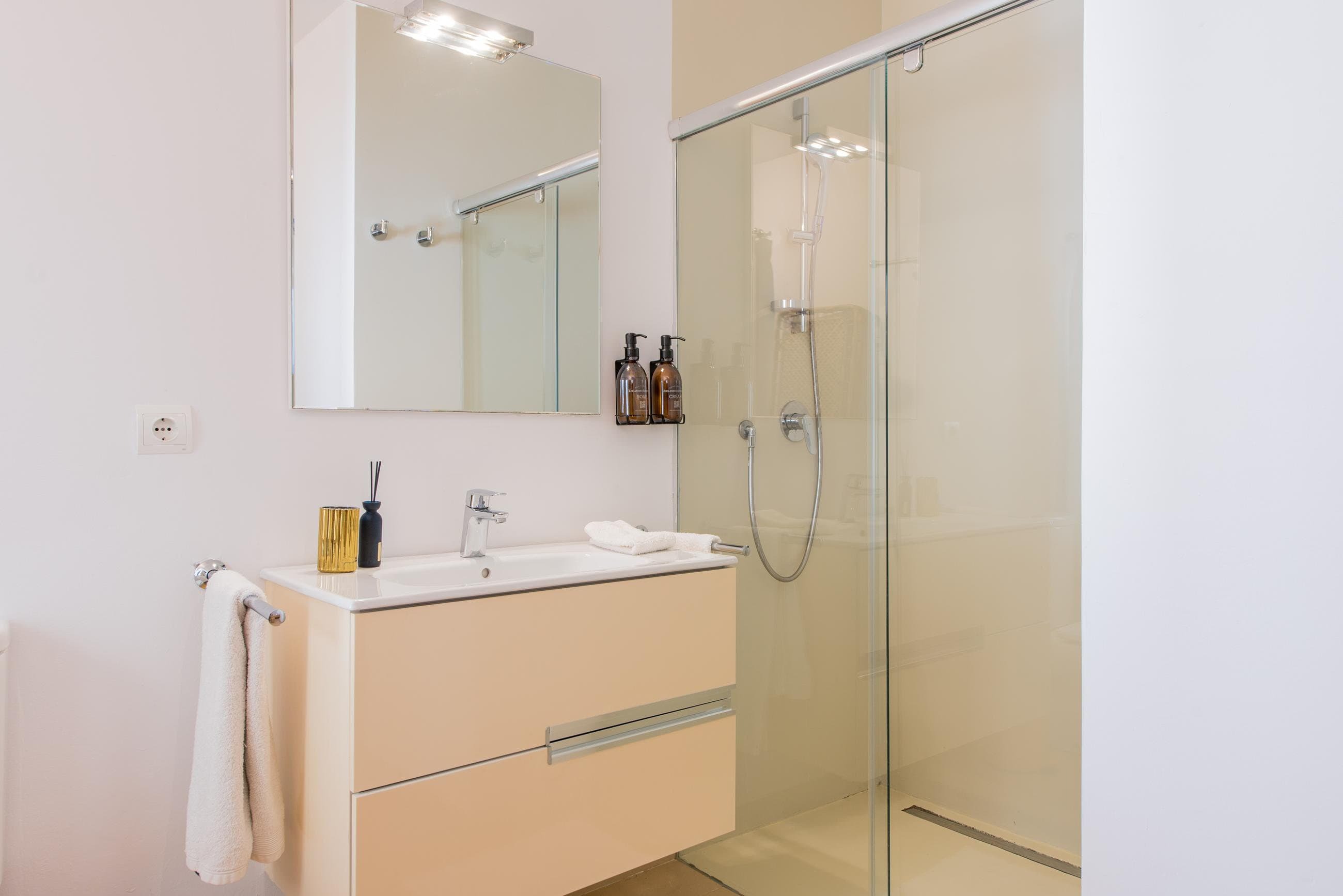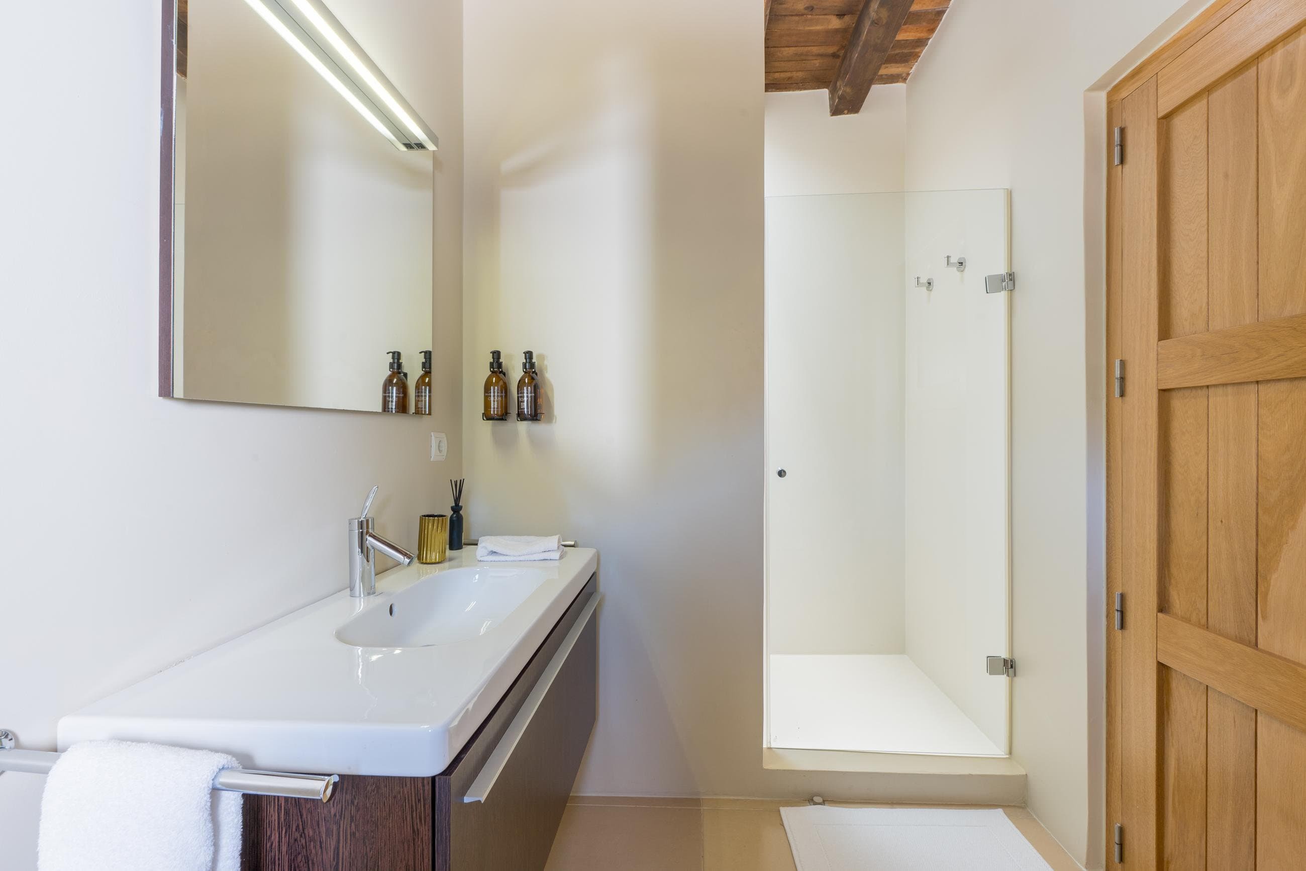 Each of the eight bedrooms is complemented by its own en-suite bathroom, offering privacy and comfort throughout the villa. Designed with clean lines and quality finishes, the bathrooms provide a calm and refreshing space to unwind.